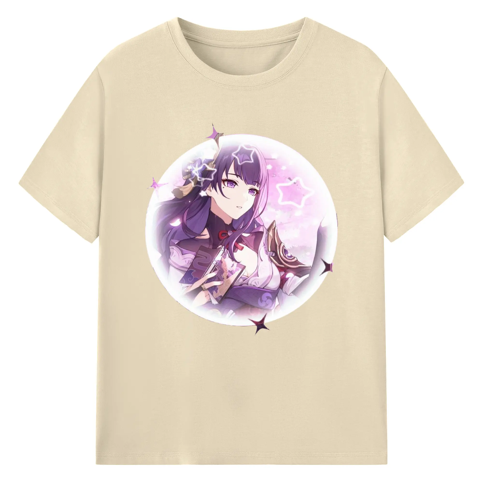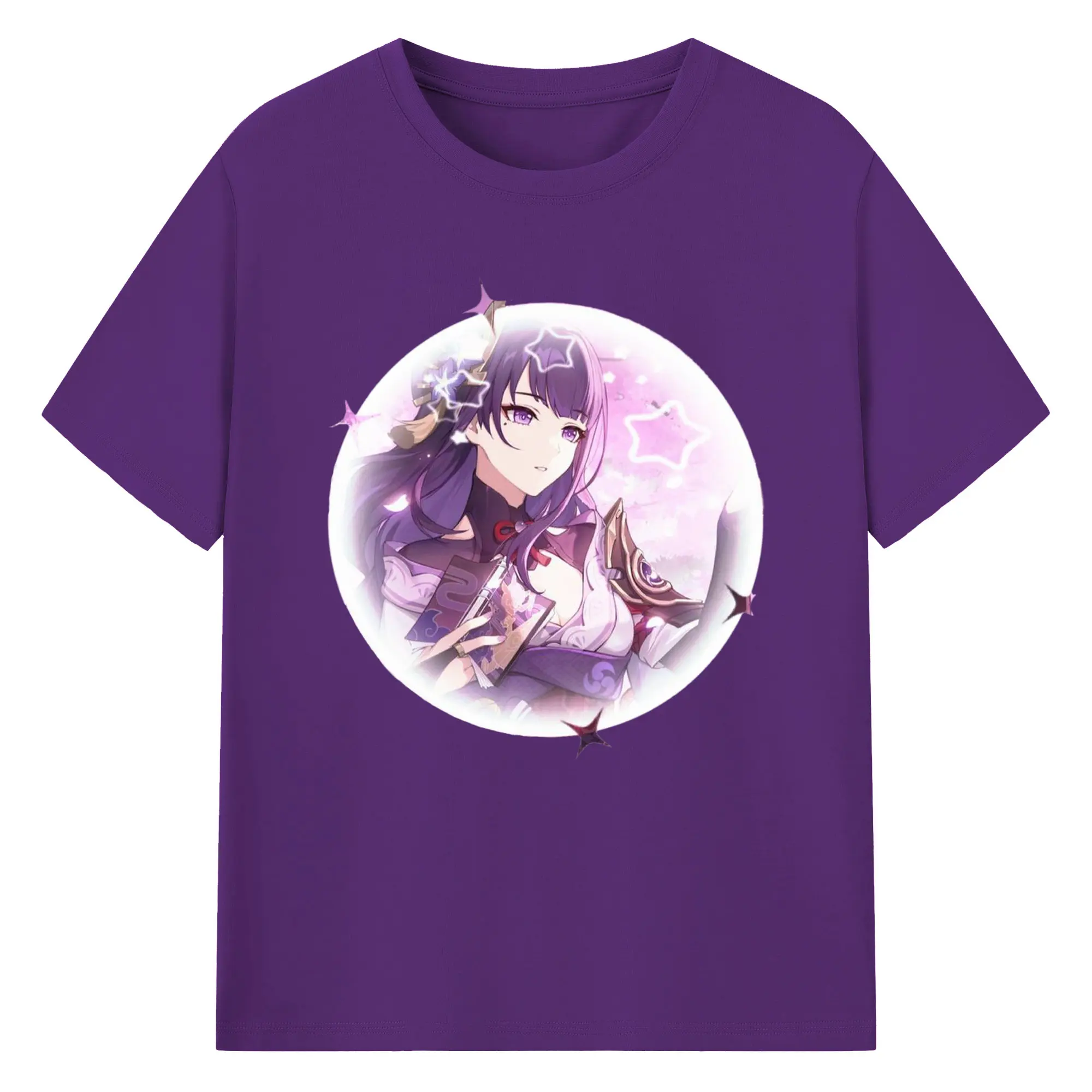Genshinイナズマ 雷電将軍 - 綿100% 半袖Tシャツ ・ フロントプリント ・ 快適 通気性 ・ 日常使い 散歩 スポーツ用