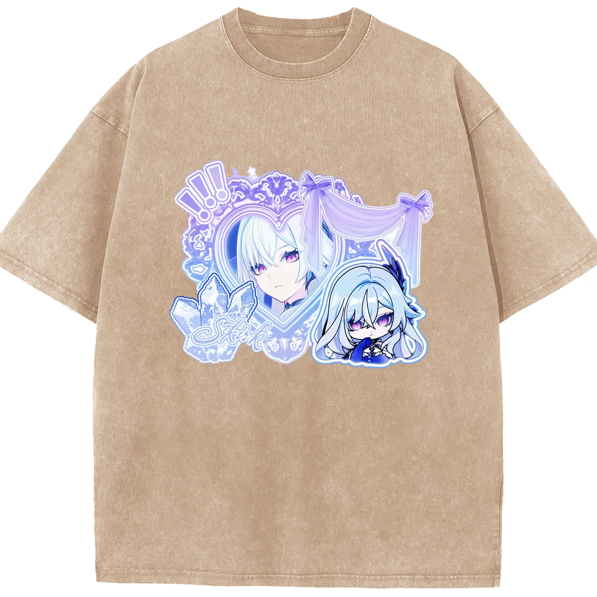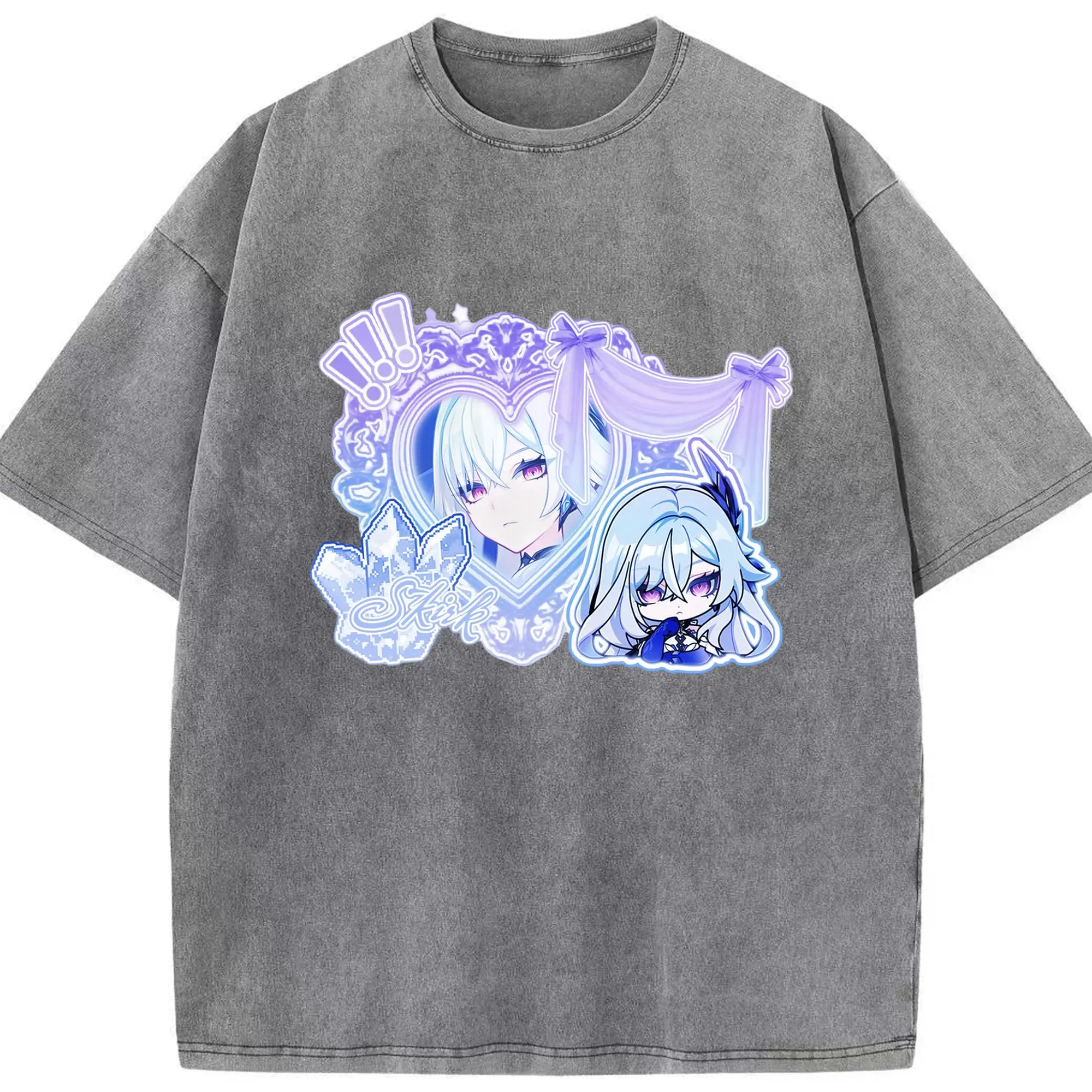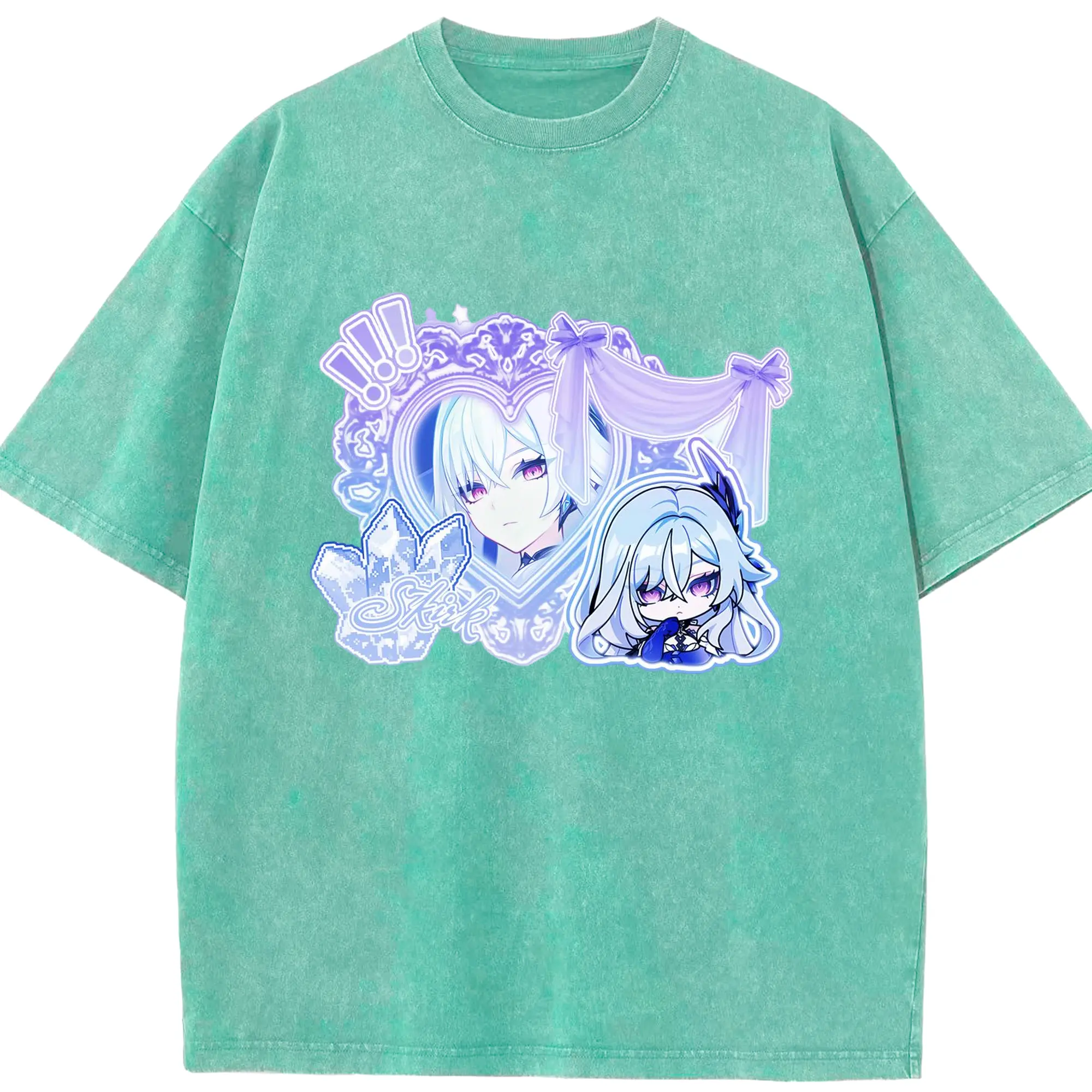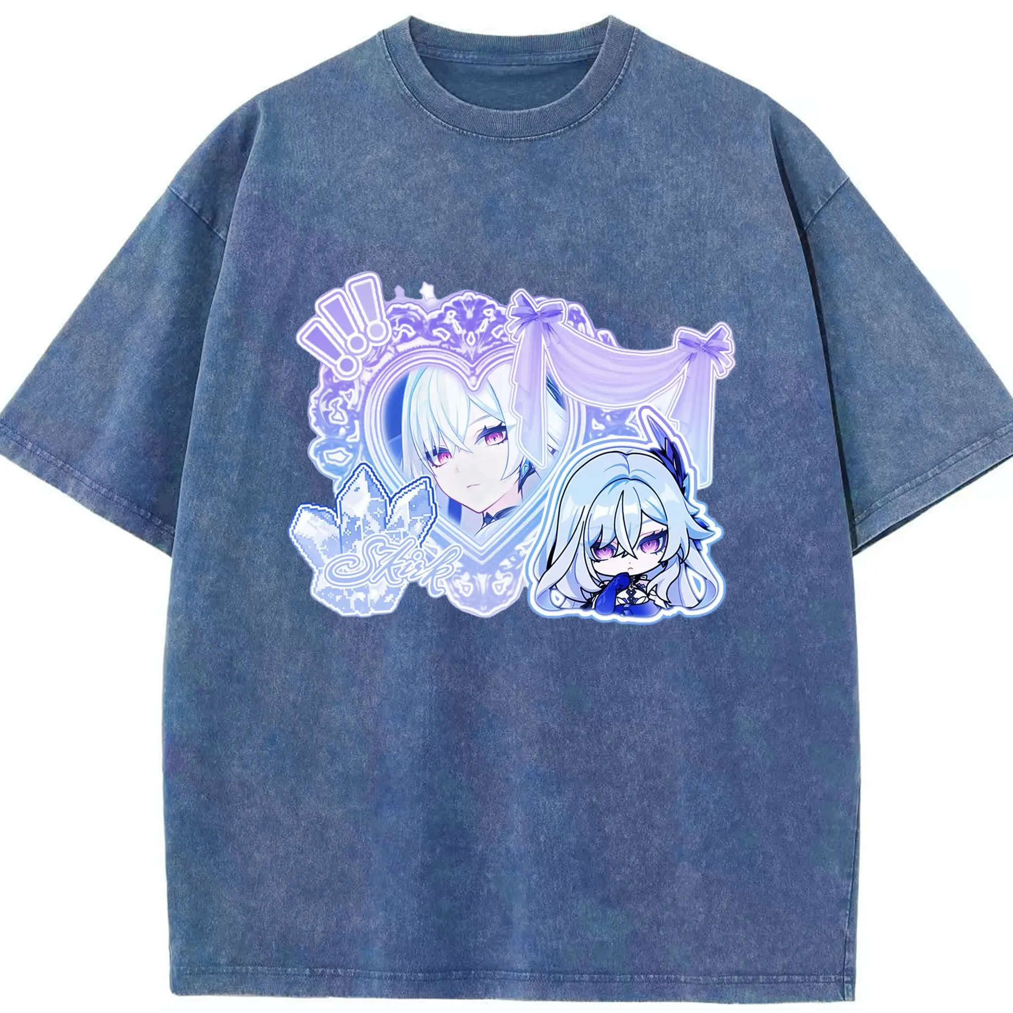 Genshinタルタリヤの師匠 スカーク - 綿100% ヴィンテージ風 半袖Tシャツ ・ フロントプリント ・ 柔らか肌触り ・ 通気性 快適 ・ スポーツ カジュアル 外出用