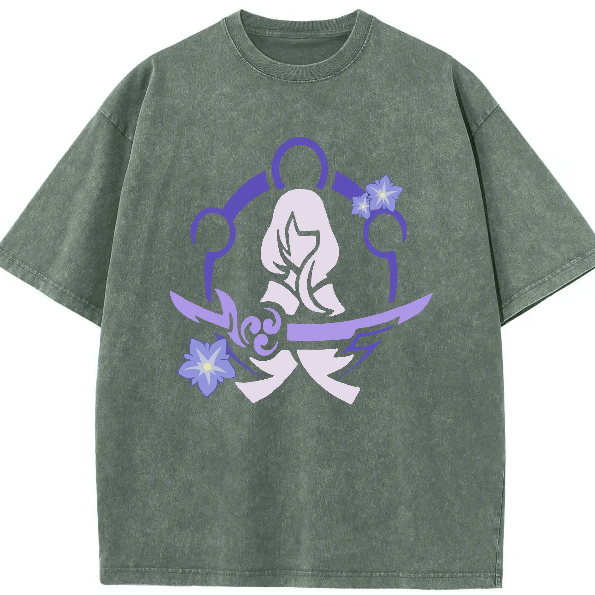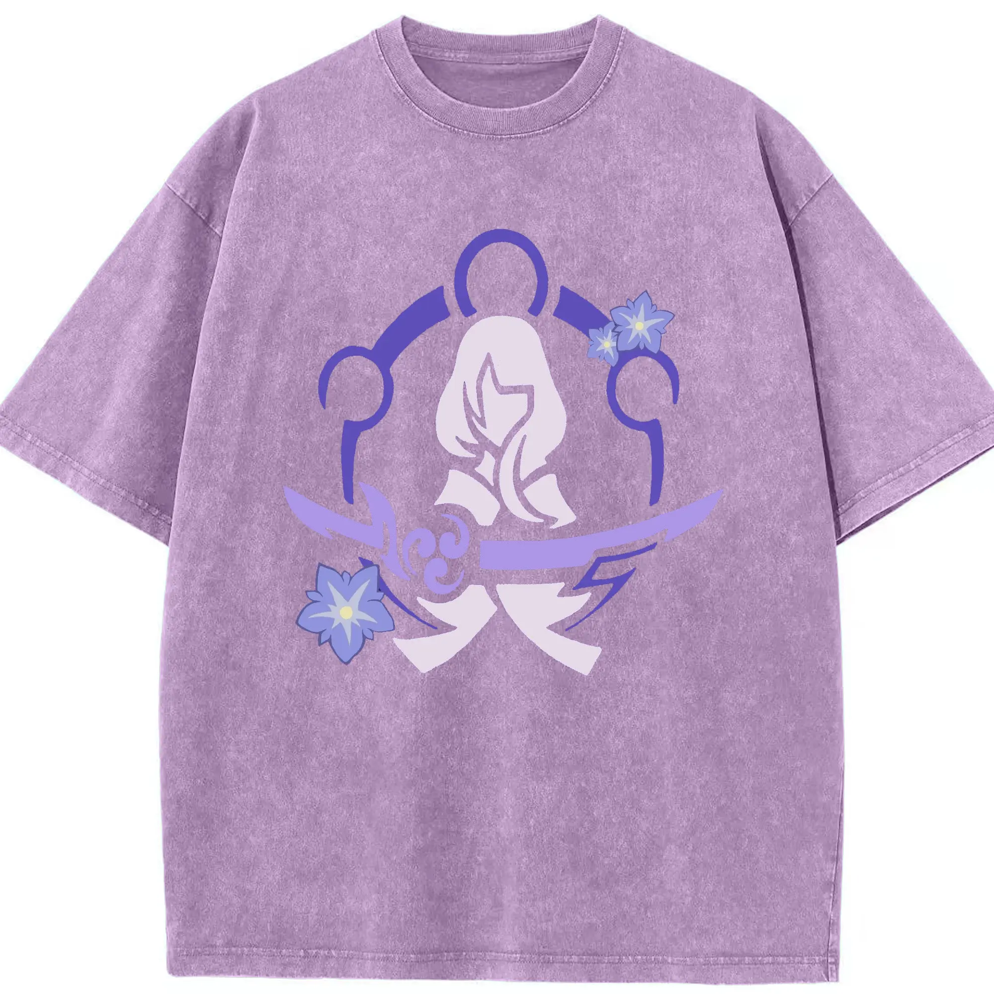 Genshin イナズマ 雷神らいじん ライデンショウグンロゴ - 綿100% ヴィンテージ風 半袖Tシャツ ・ フロントプリント ・ 柔らか肌触り ・ 通気性 快適 ・ スポーツ カジュアル 外出用