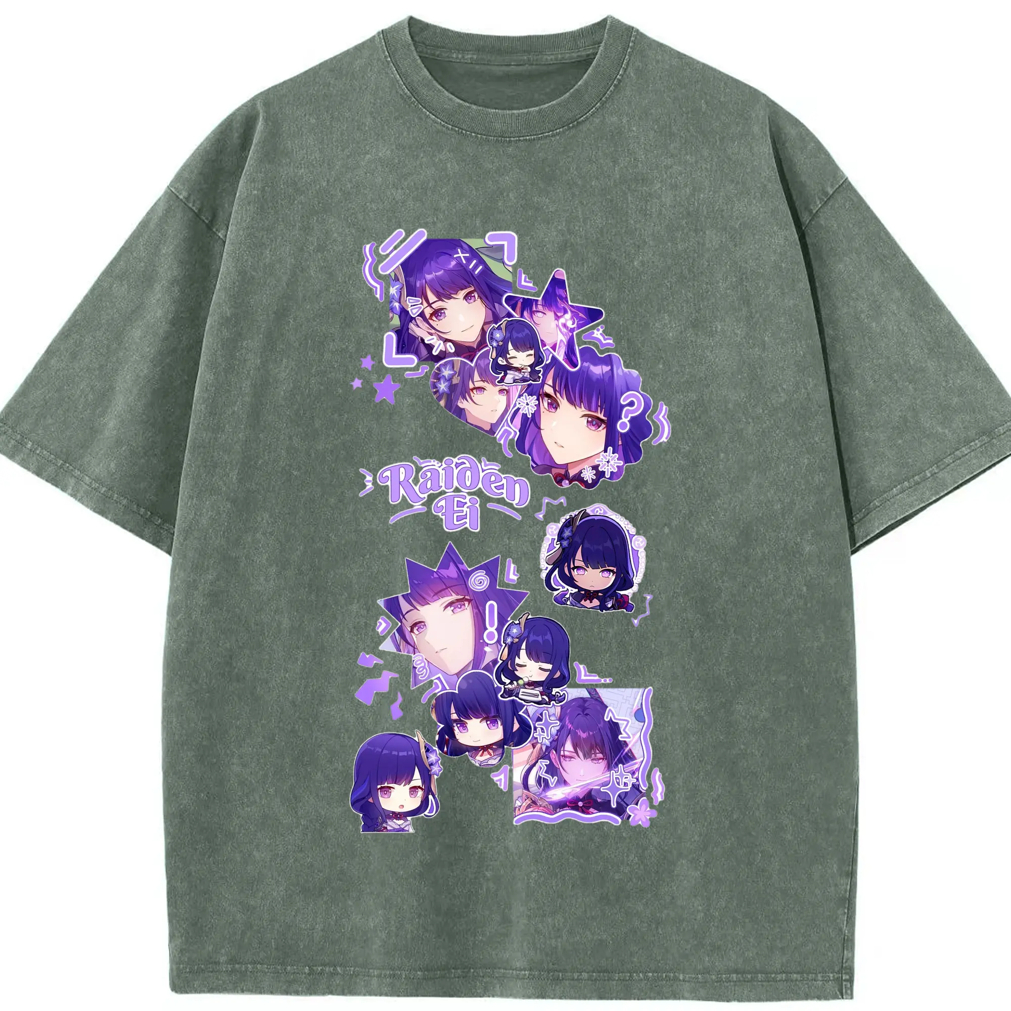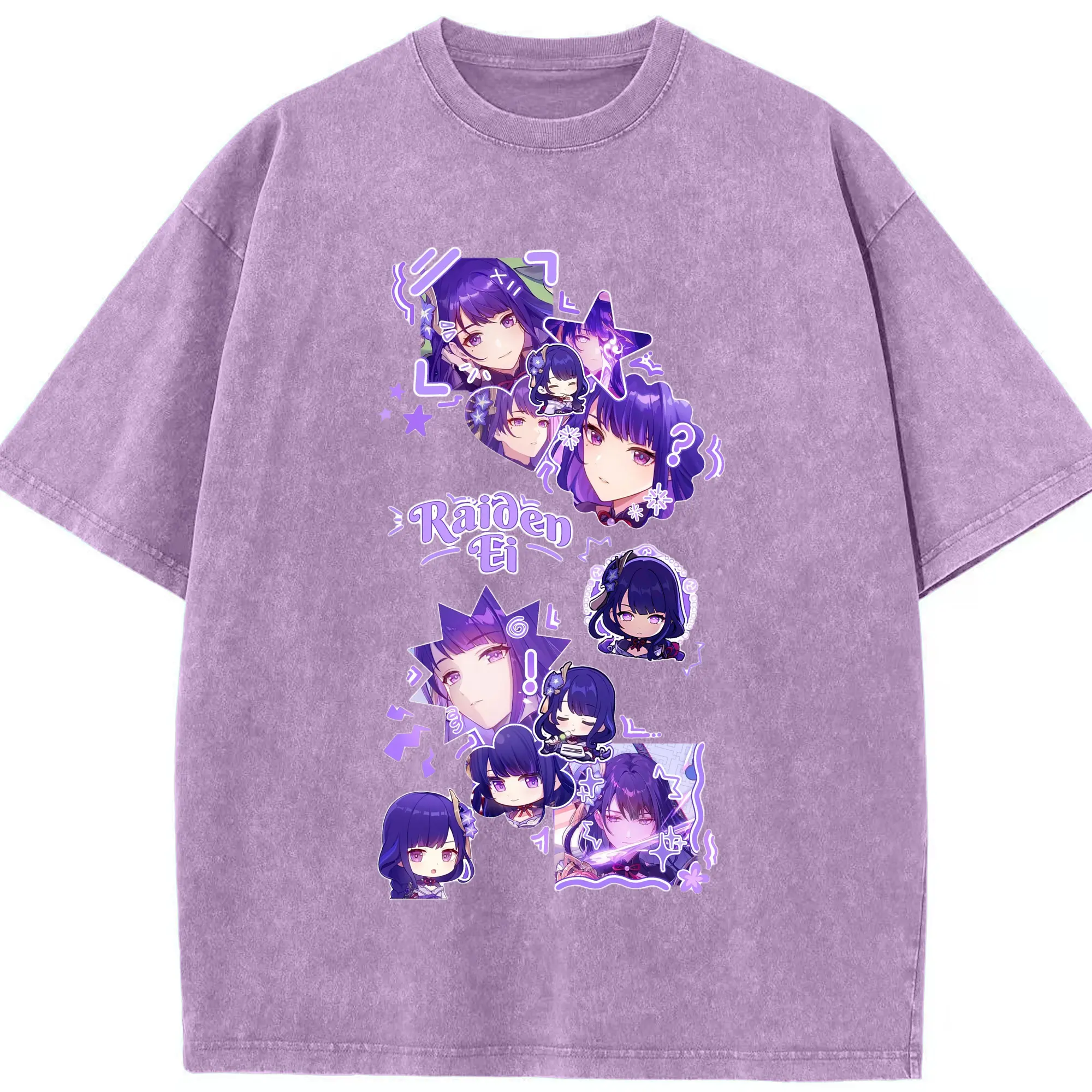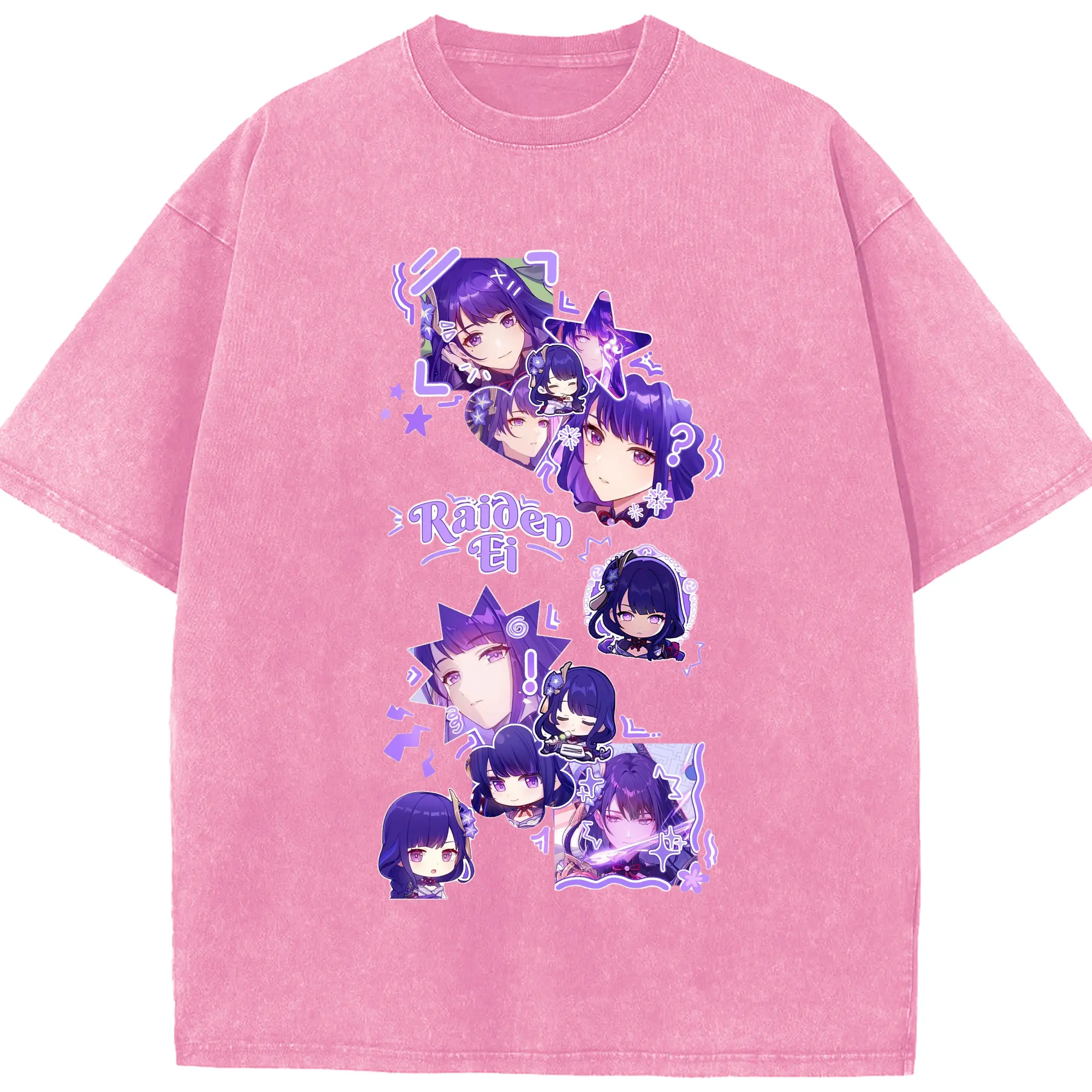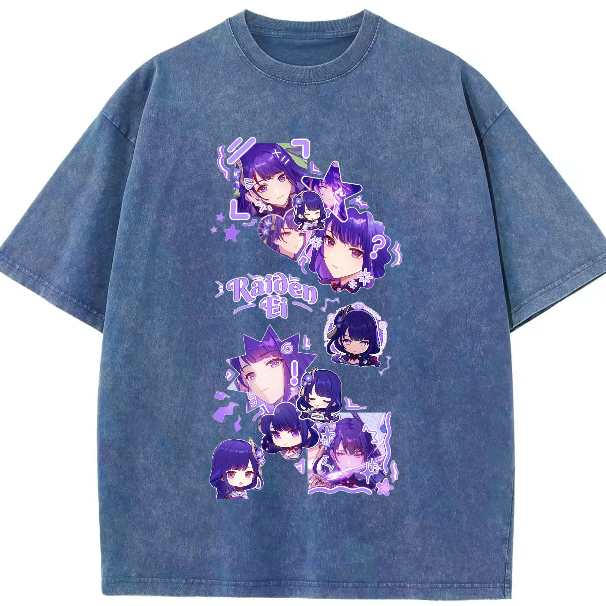 Genshin イナズマ 雷神らいじん ライデンショウグン - 綿100% ヴィンテージ風 半袖Tシャツ ・ フロントプリント ・ 柔らか肌触り ・ 通気性 快適 ・ スポーツ カジュアル 外出用