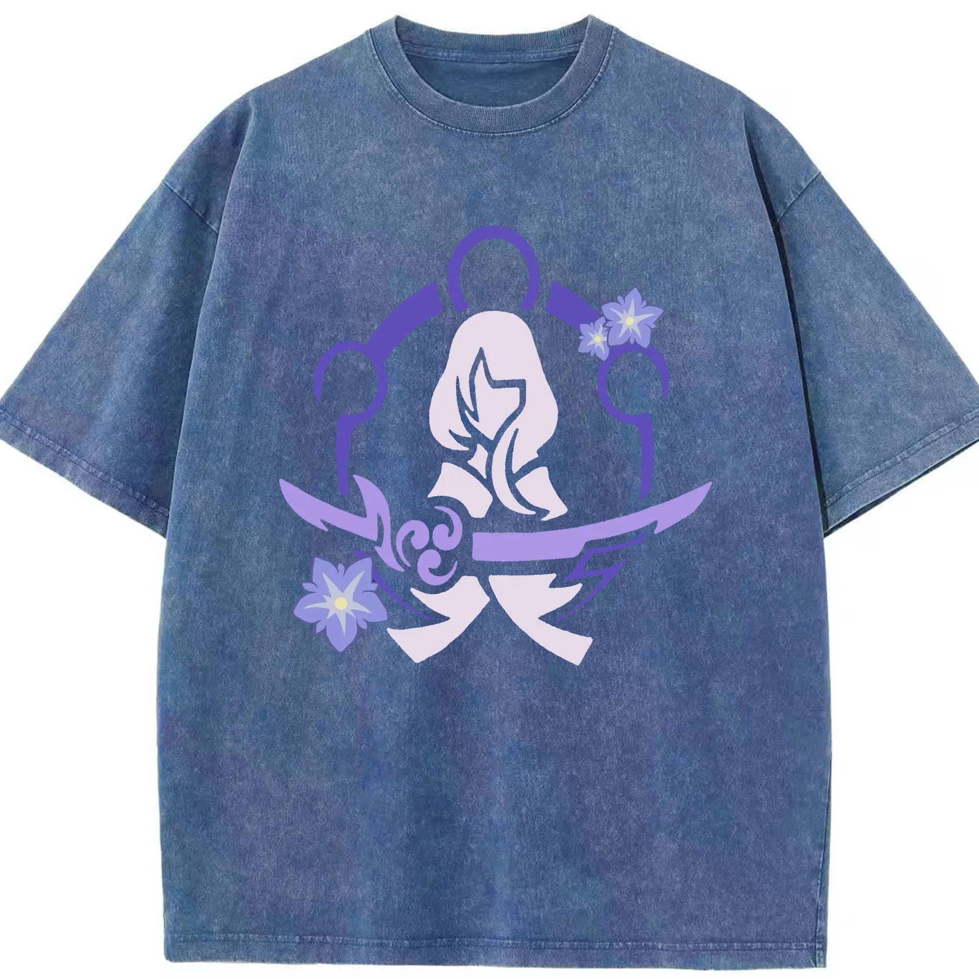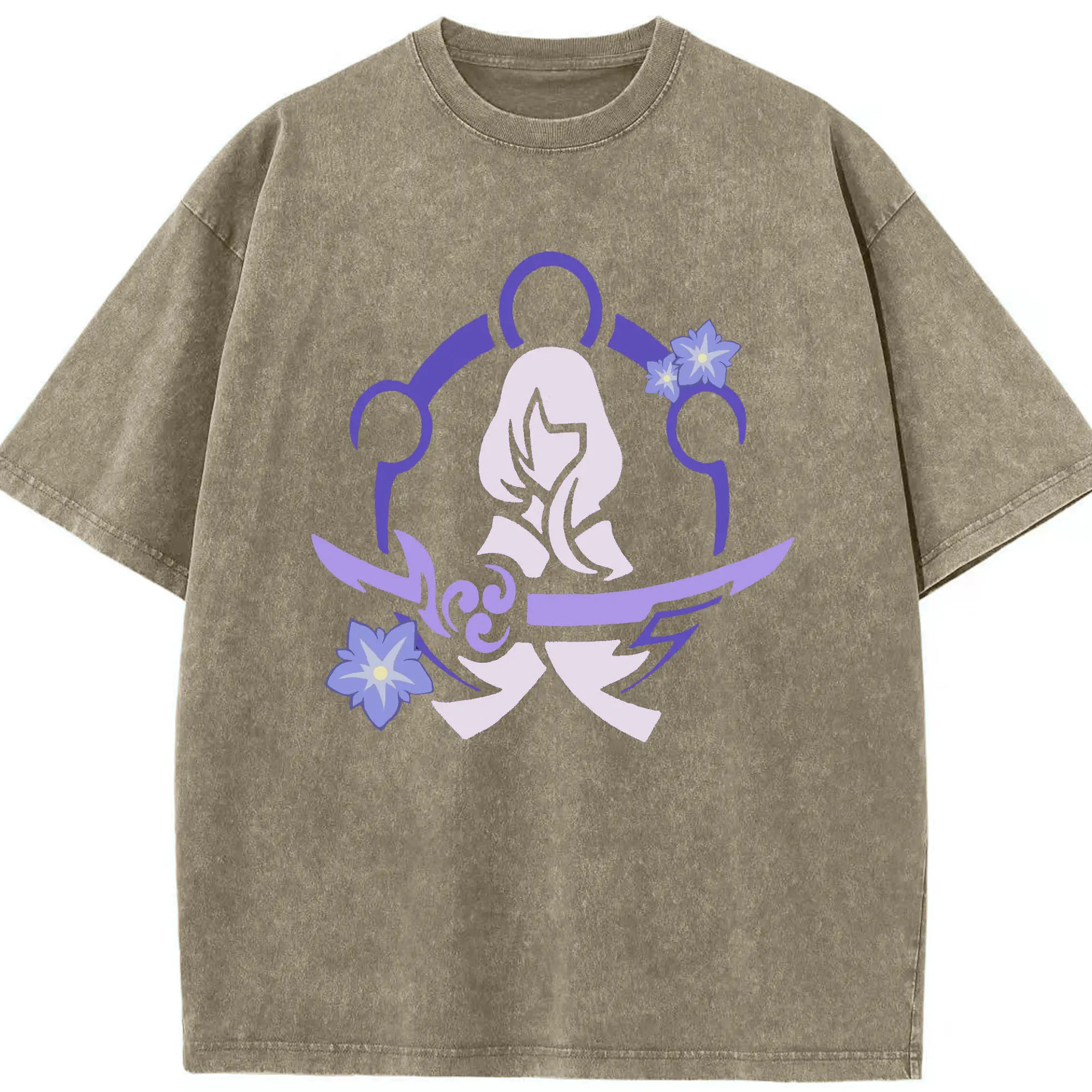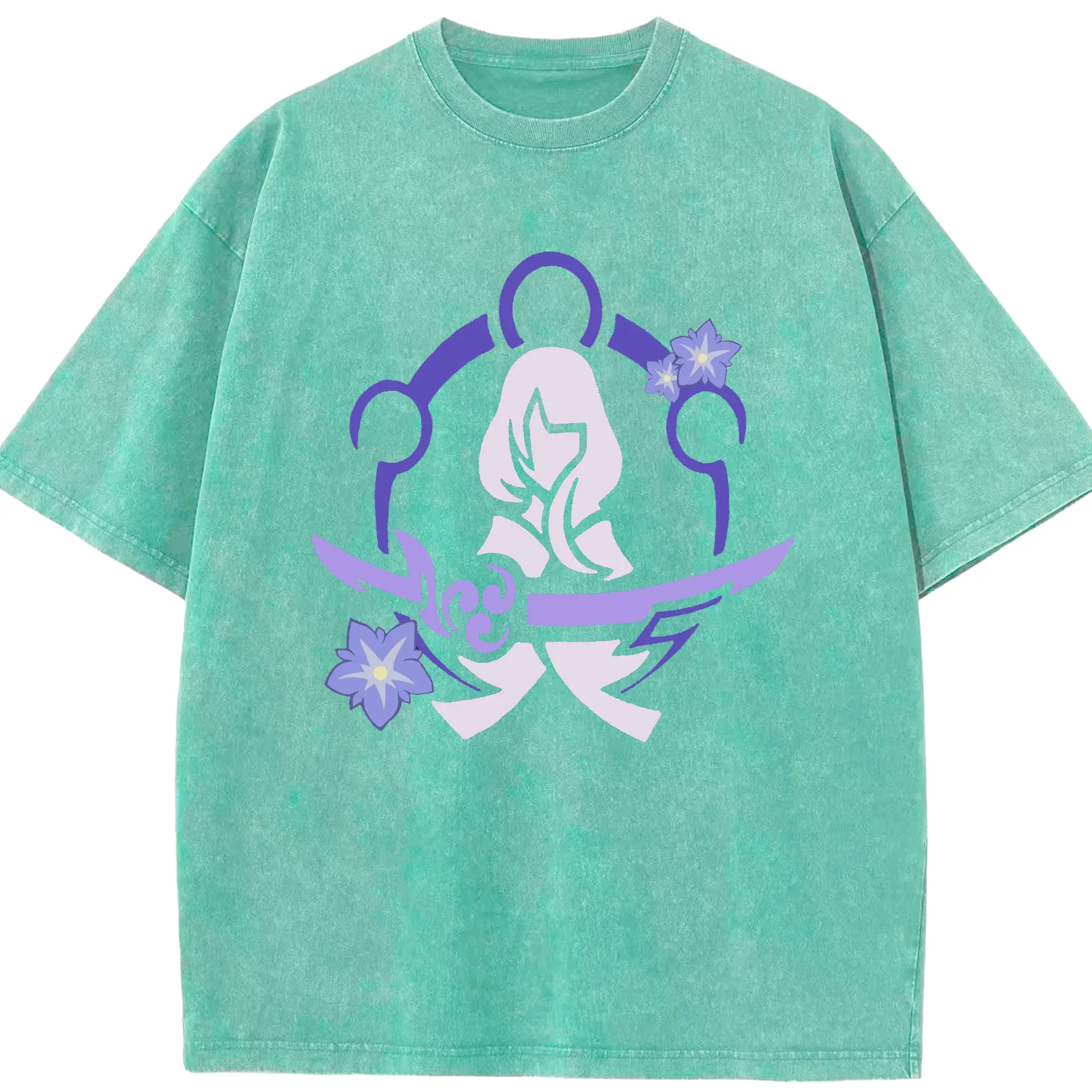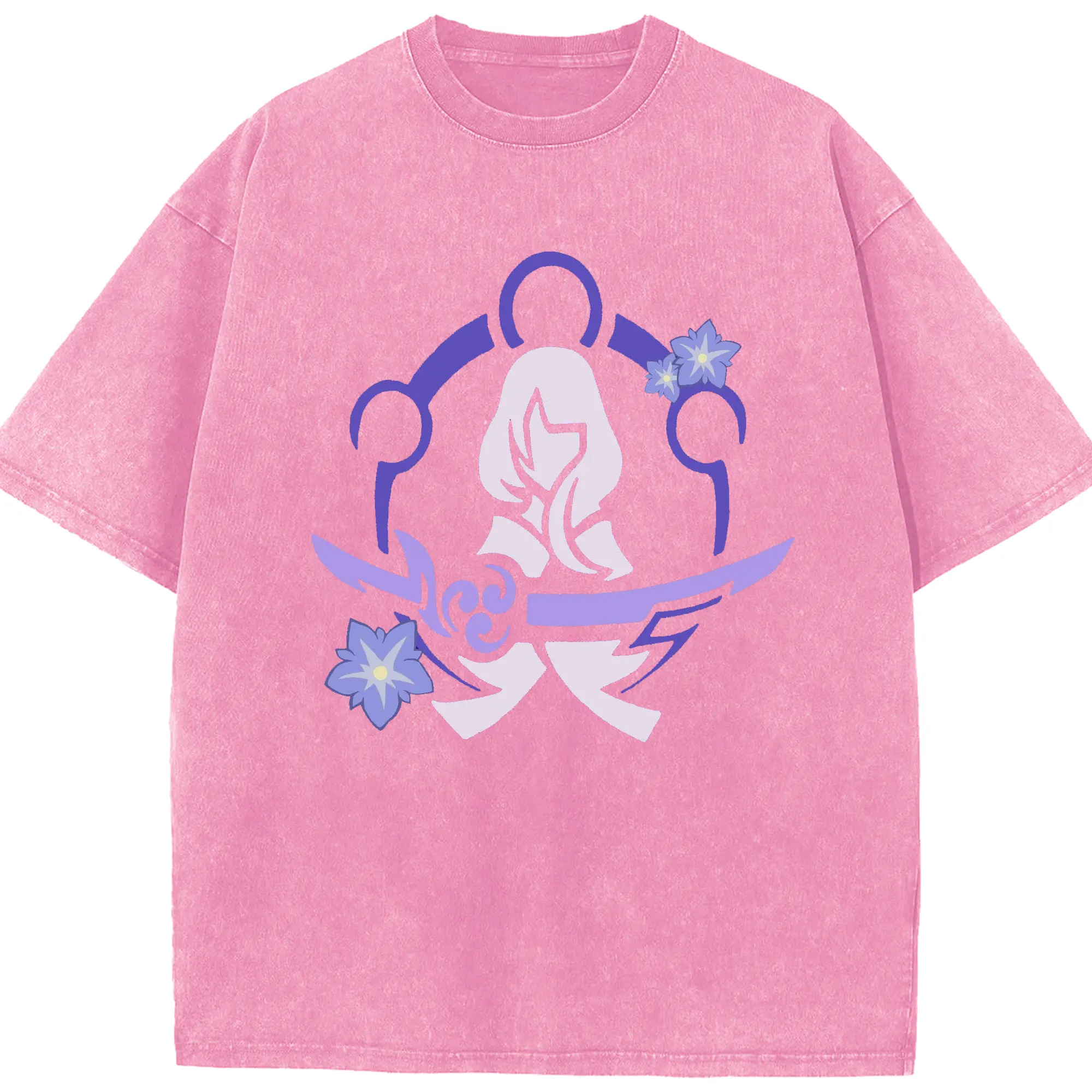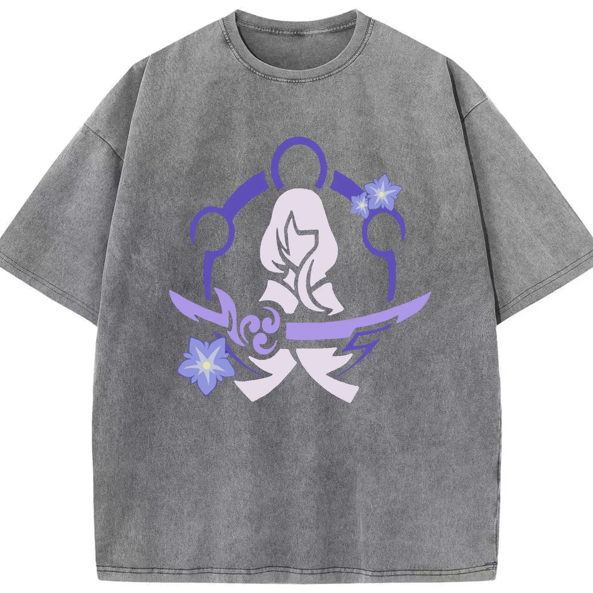 Genshin イナズマ 雷神らいじん ライデンショウグンロゴ - 綿100% ヴィンテージ風 半袖Tシャツ ・ フロントプリント ・ 柔らか肌触り ・ 通気性 快適 ・ スポーツ カジュアル 外出用