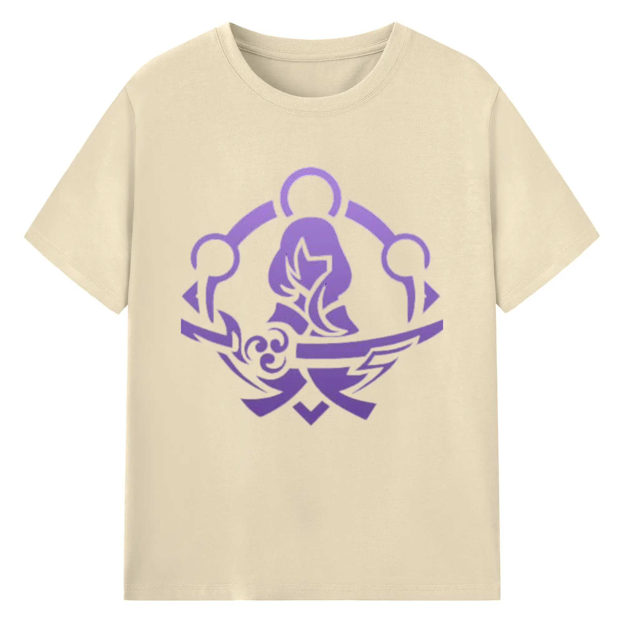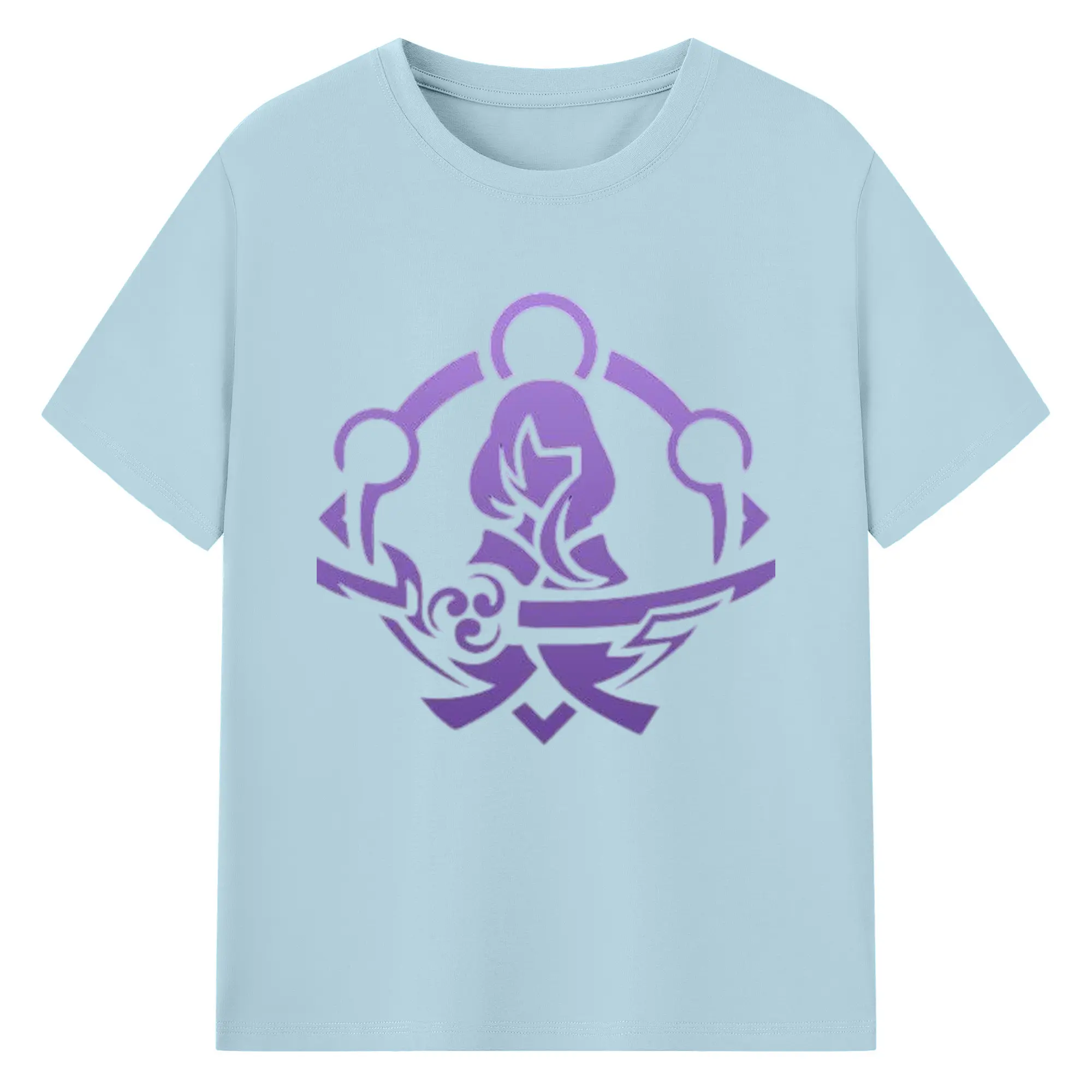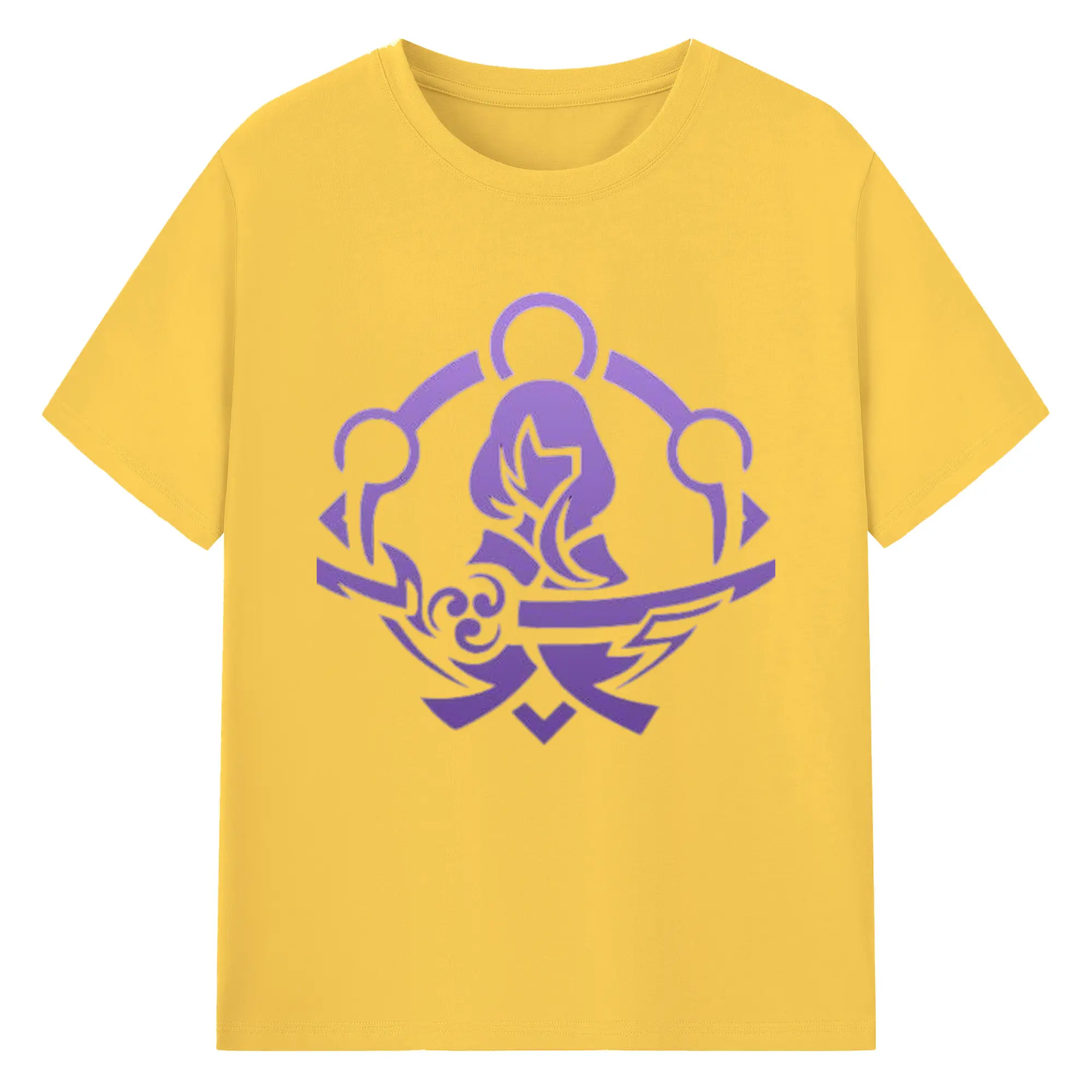 Genshin イナズマ 雷電将軍 - 綿100% 半袖Tシャツ ・ フロントプリント ・ 快適 通気性 ・ 日常使い 散歩 スポーツ用