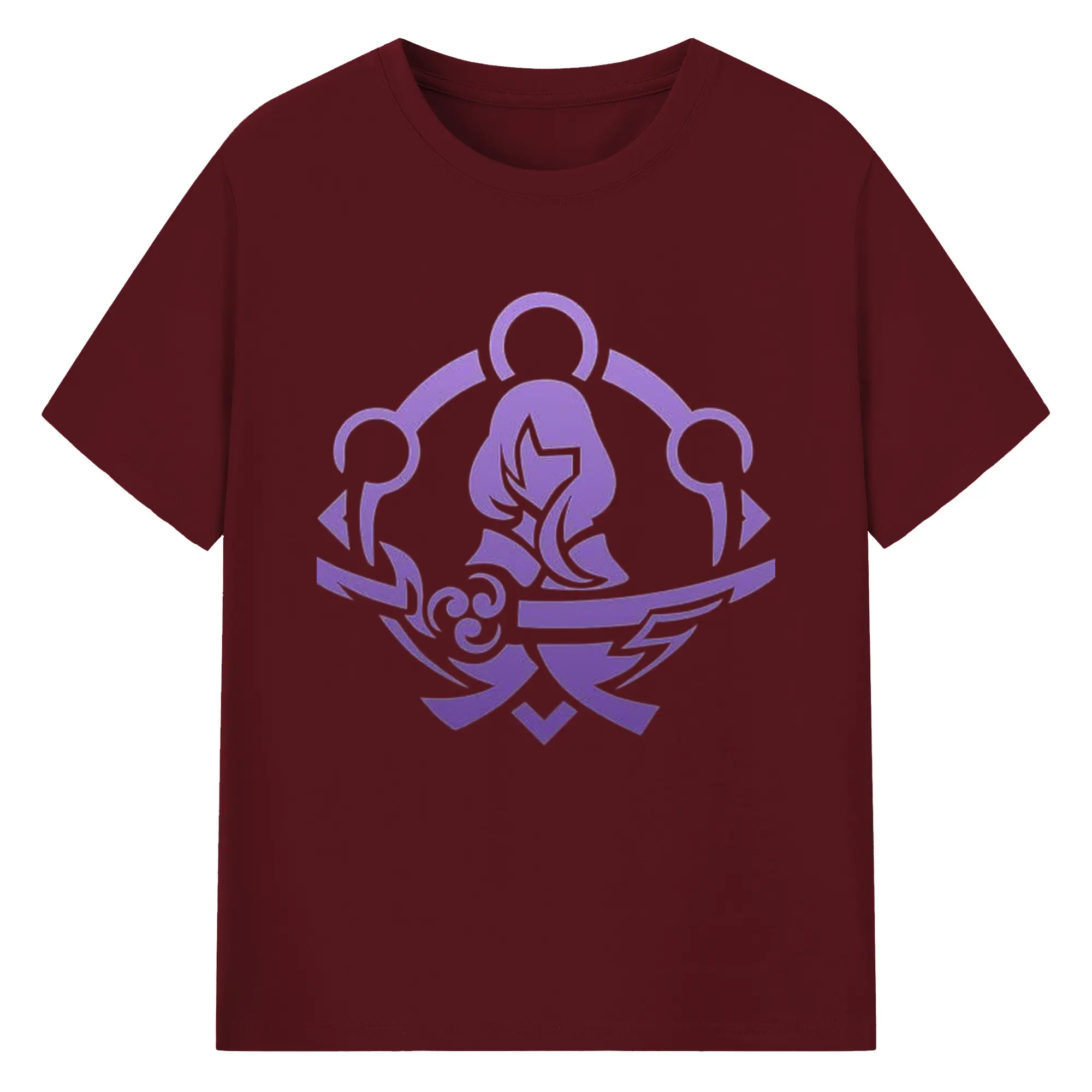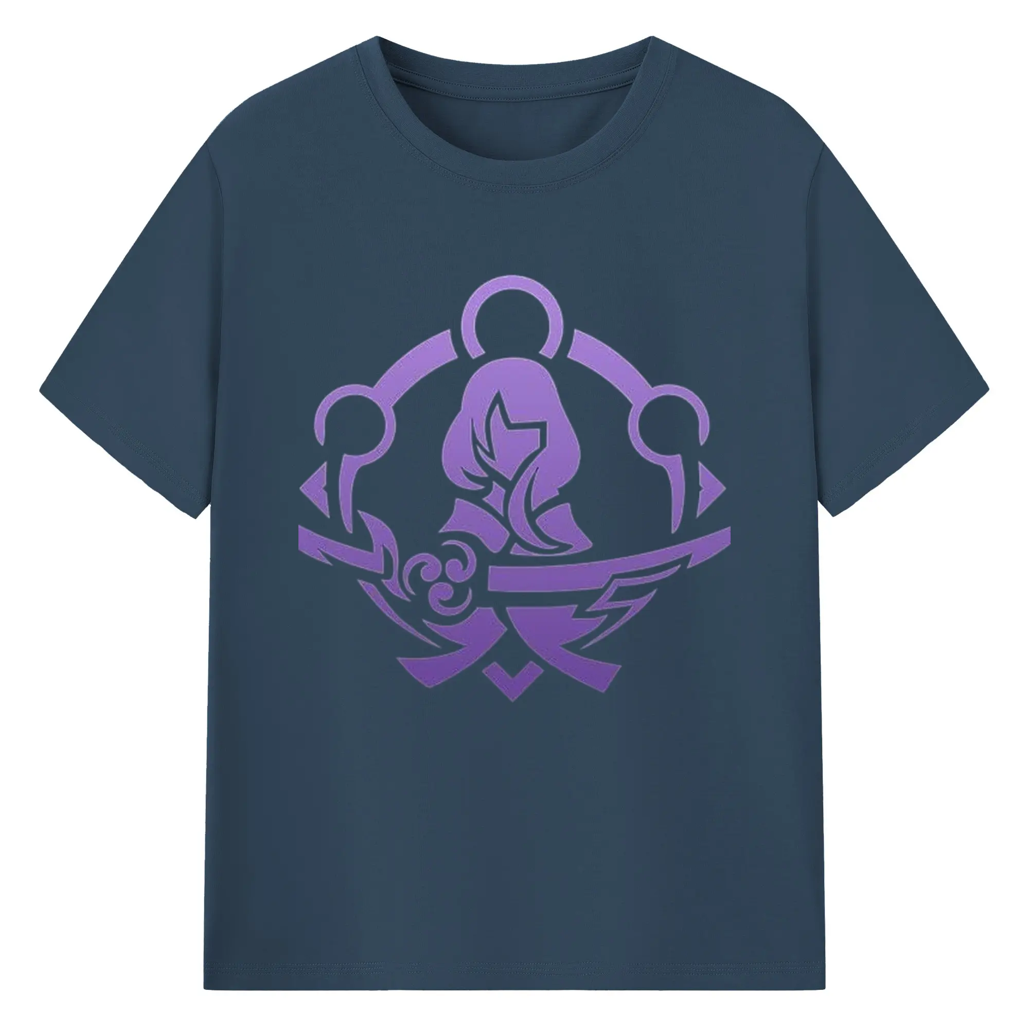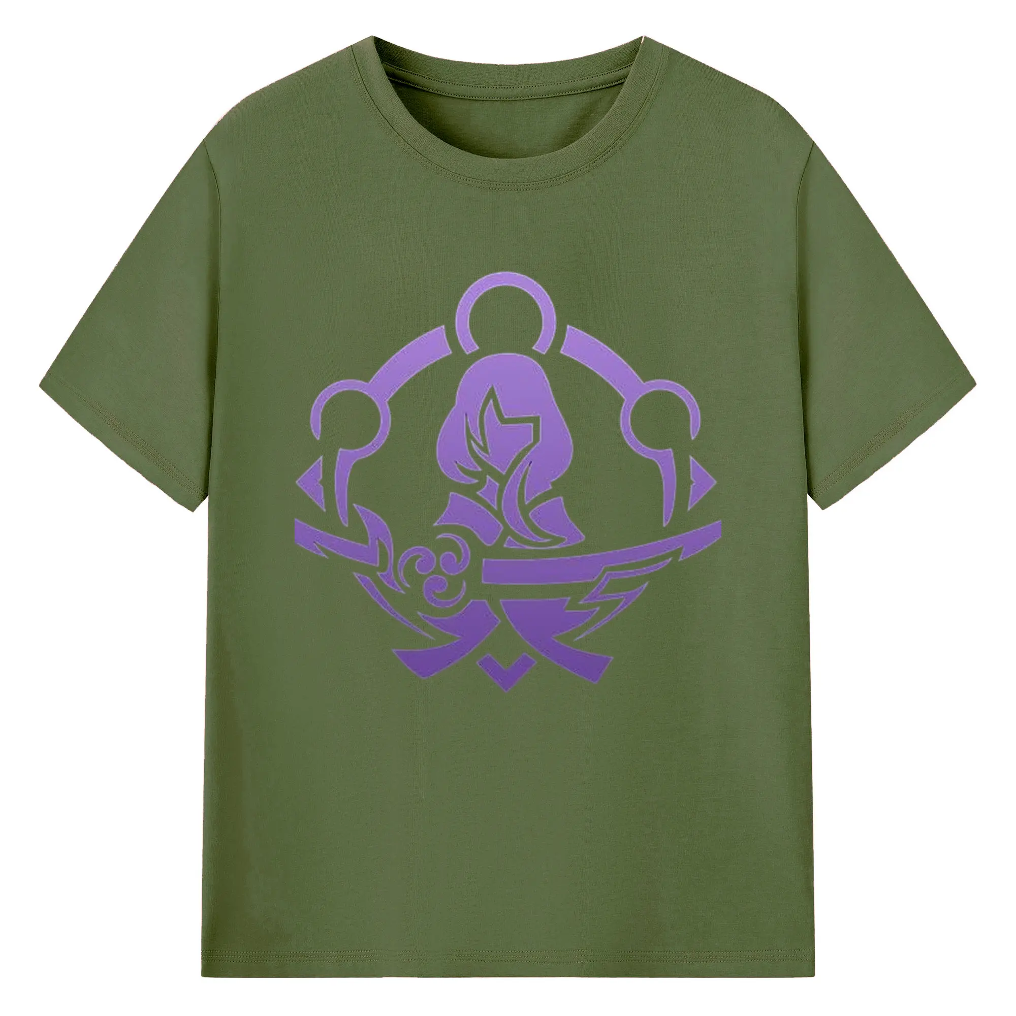 Genshin イナズマ 雷電将軍 - 綿100% 半袖Tシャツ ・ フロントプリント ・ 快適 通気性 ・ 日常使い 散歩 スポーツ用