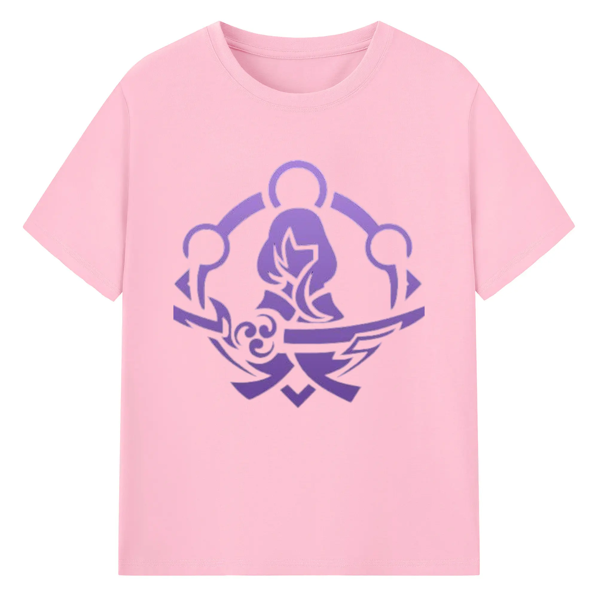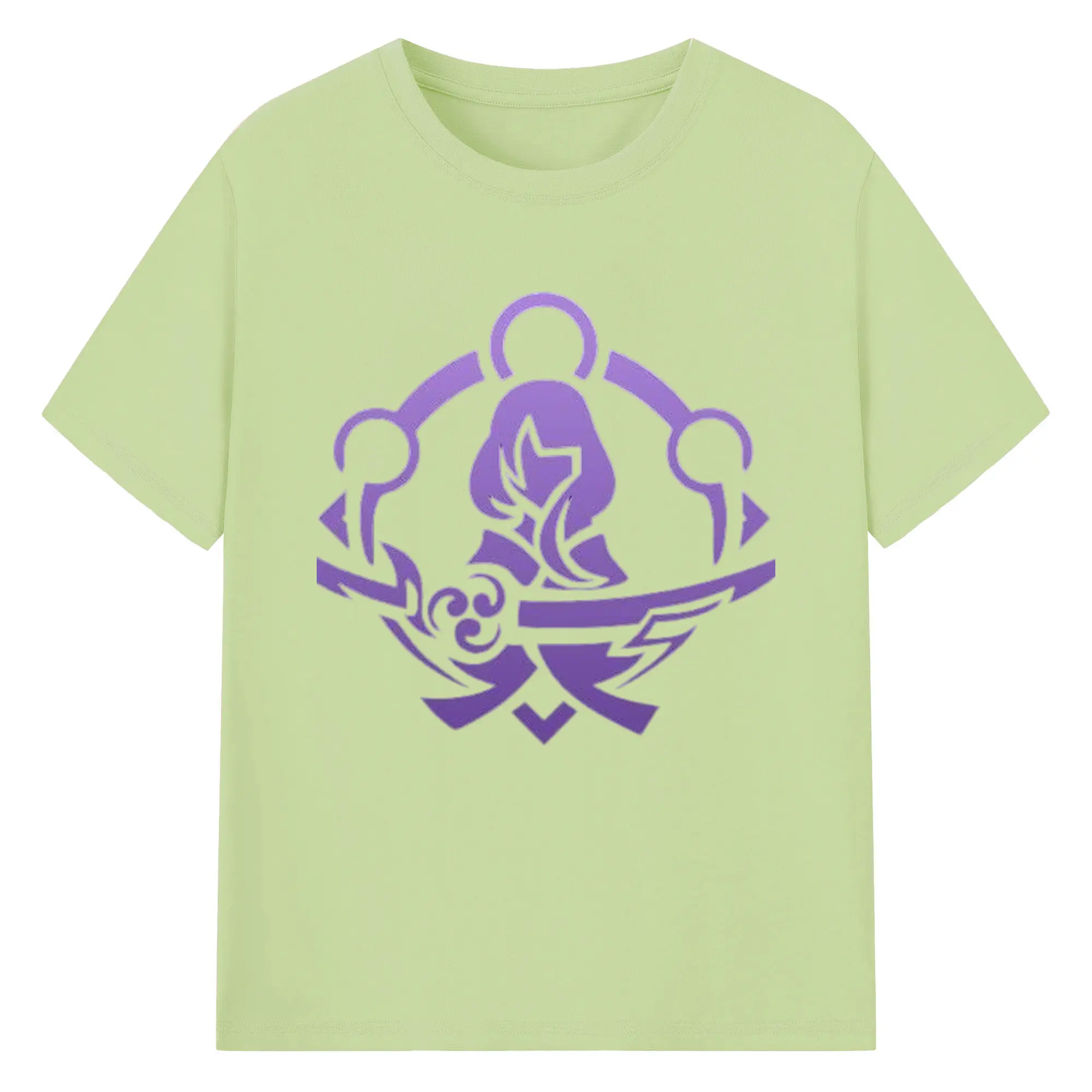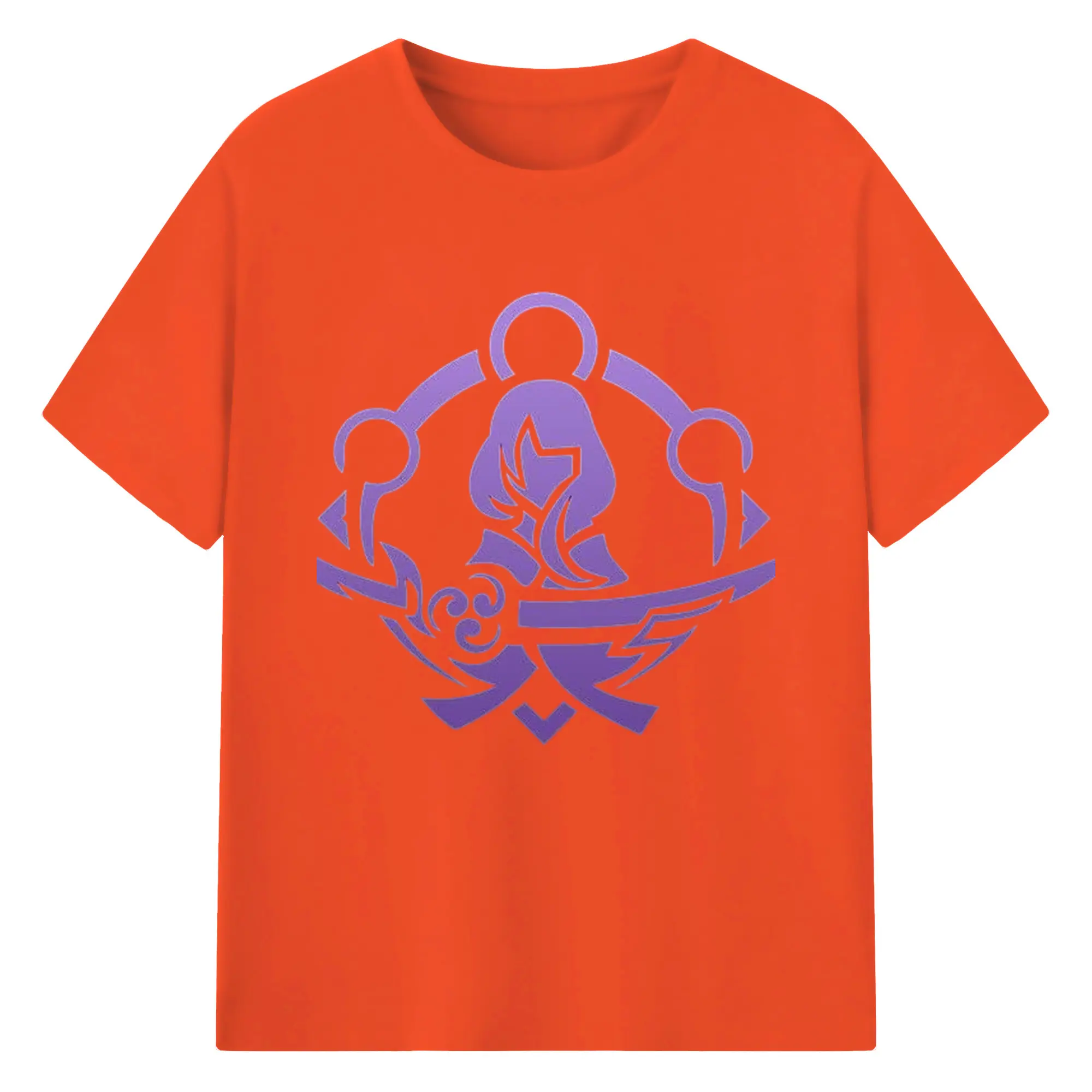 Genshin イナズマ 雷電将軍 - 綿100% 半袖Tシャツ ・ フロントプリント ・ 快適 通気性 ・ 日常使い 散歩 スポーツ用