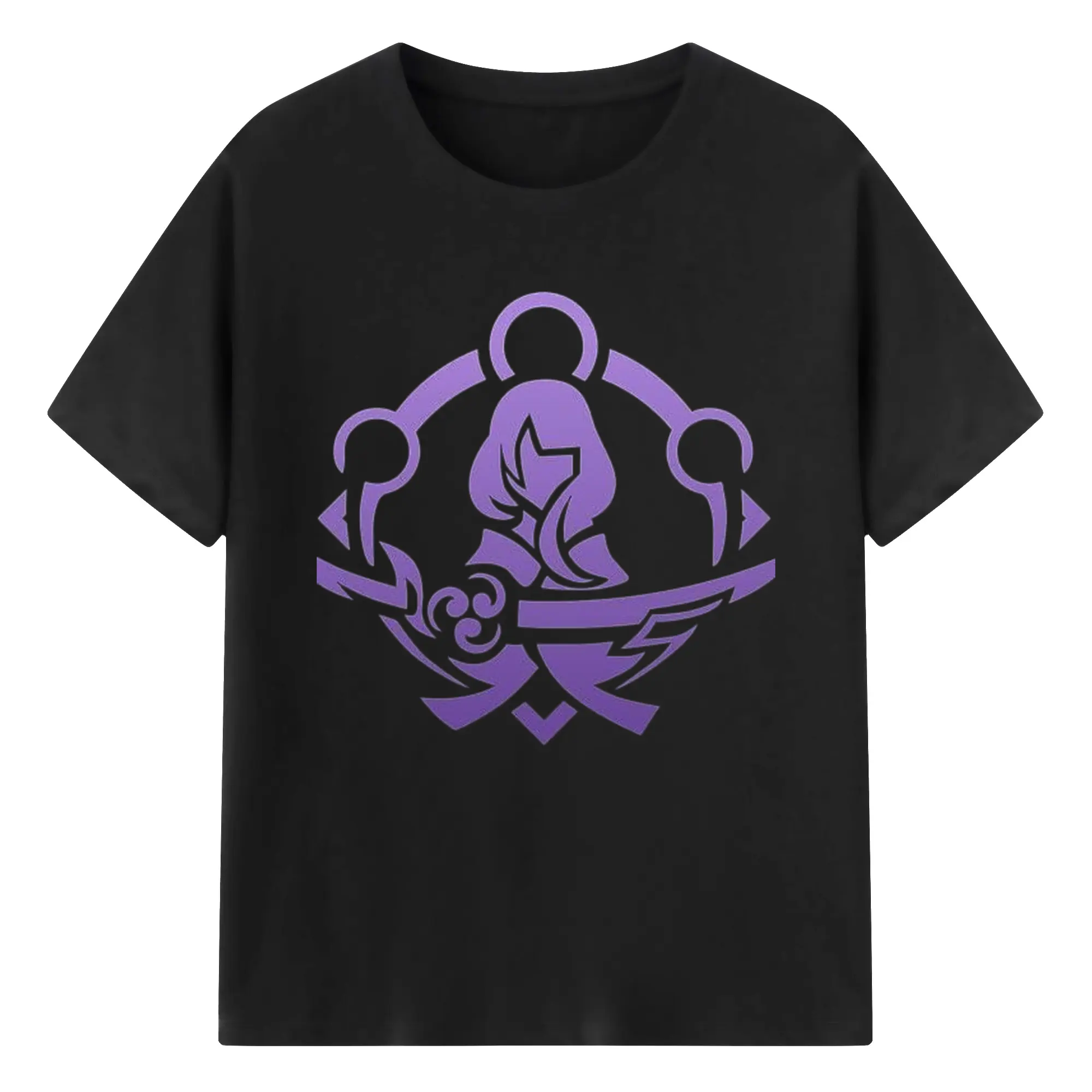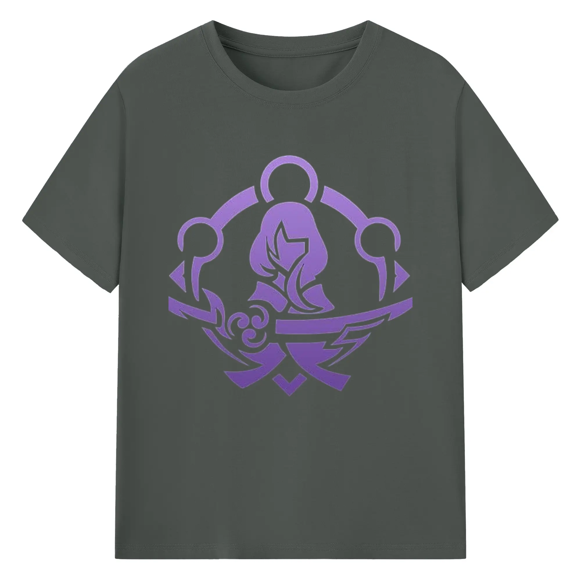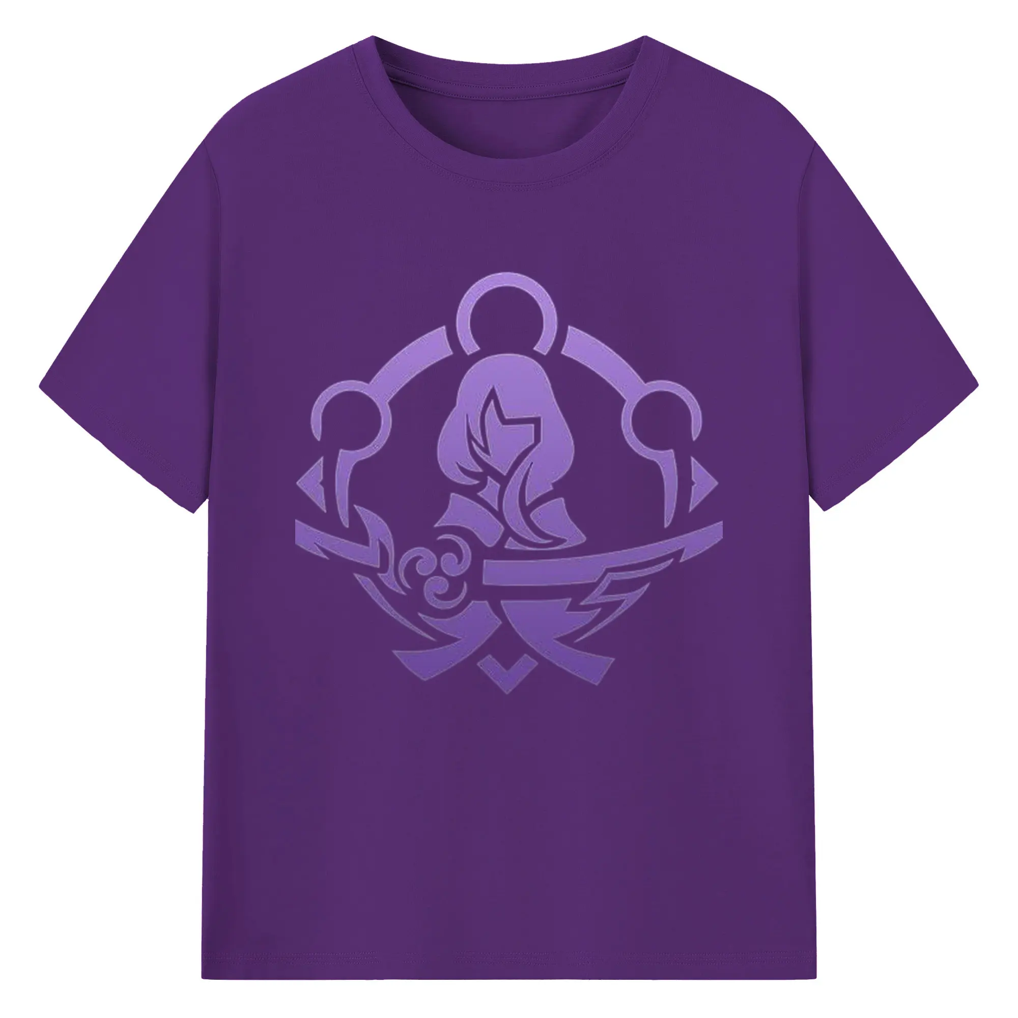 Genshin イナズマ 雷電将軍 - 綿100% 半袖Tシャツ ・ フロントプリント ・ 快適 通気性 ・ 日常使い 散歩 スポーツ用