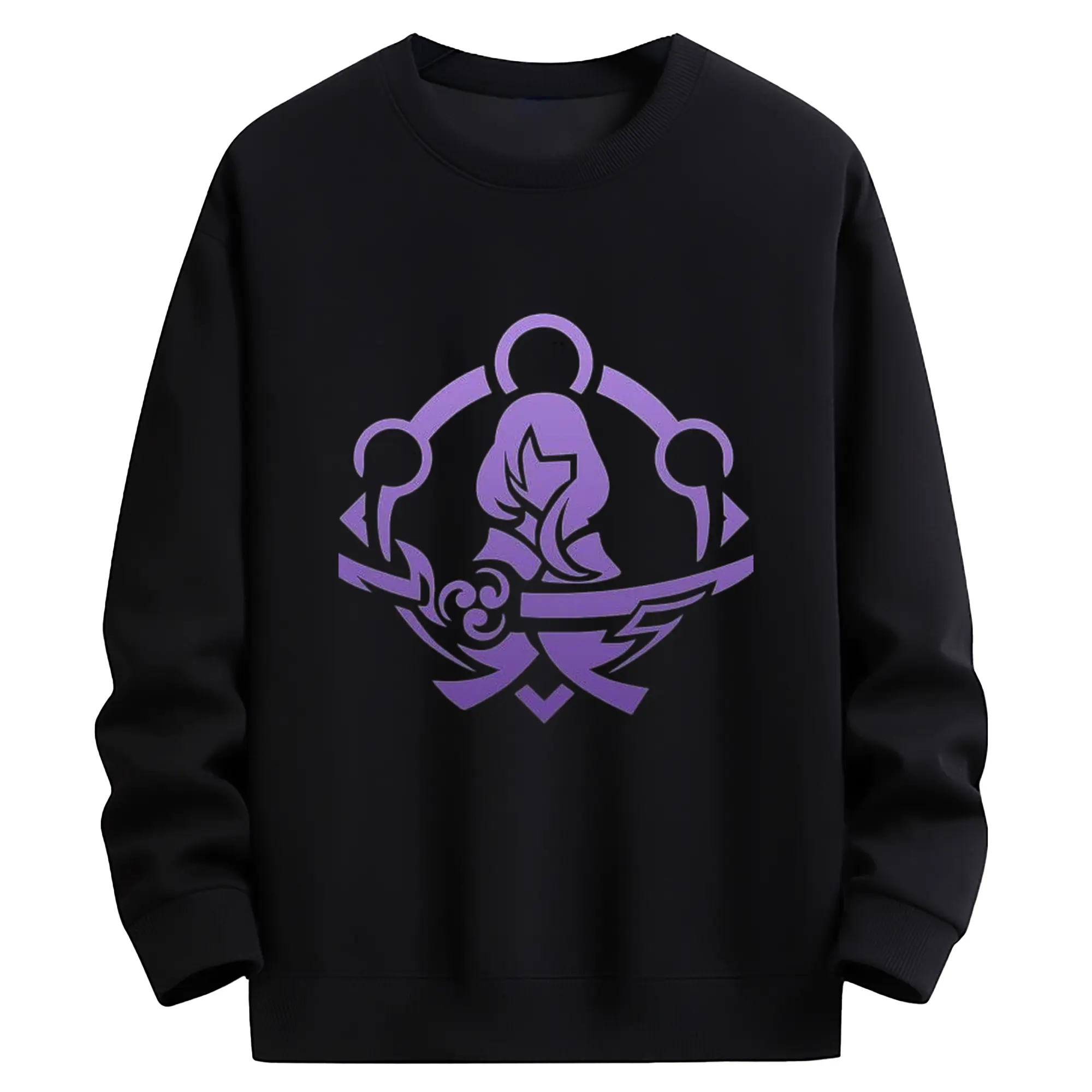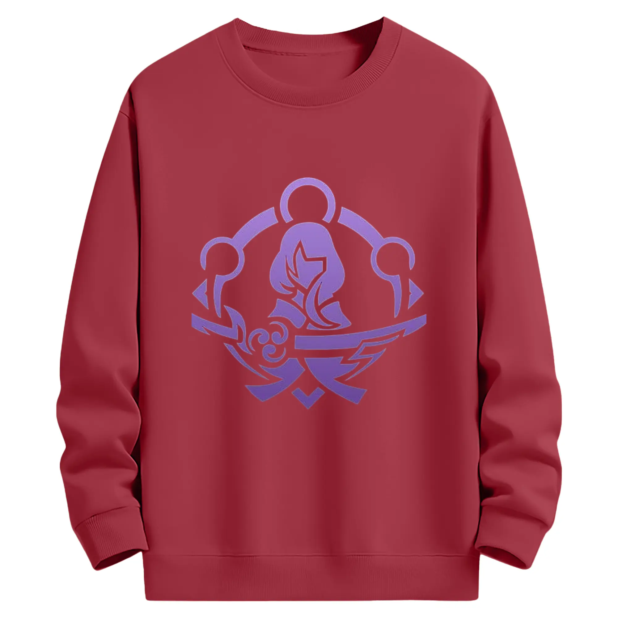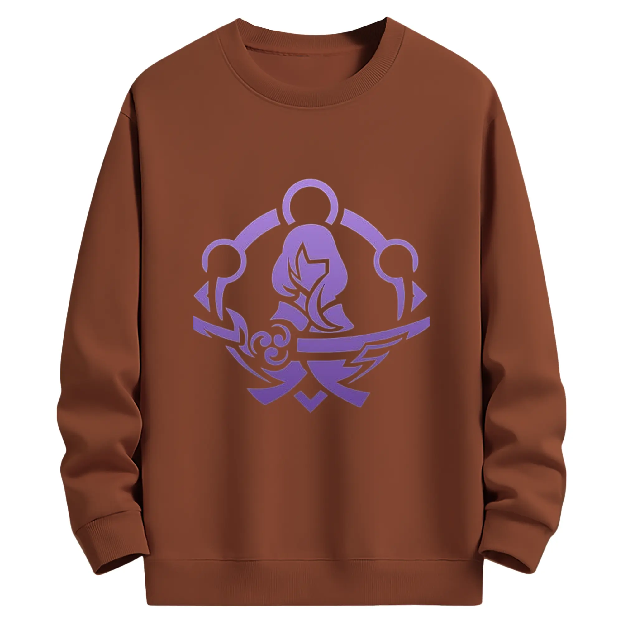 Genshin イナズマ 雷電将軍 - 高品質 クルーネック スウェット ・ コットン59% ポリエステル41% ・ ユニセックス 長袖 トレーナー ・ カジュアル デイリー スポーツ 散歩用