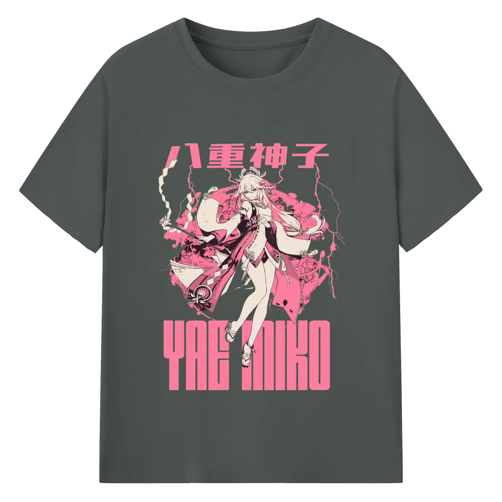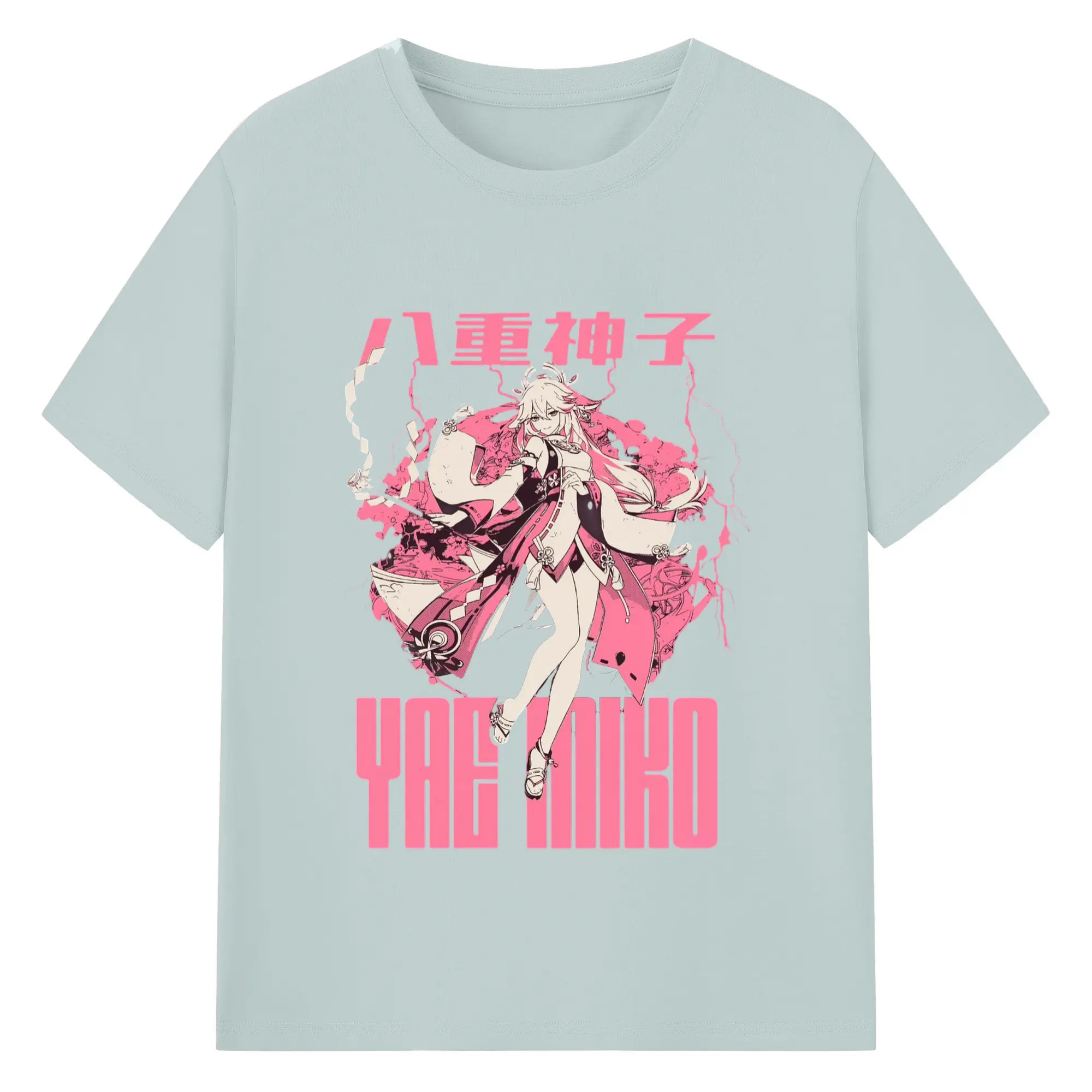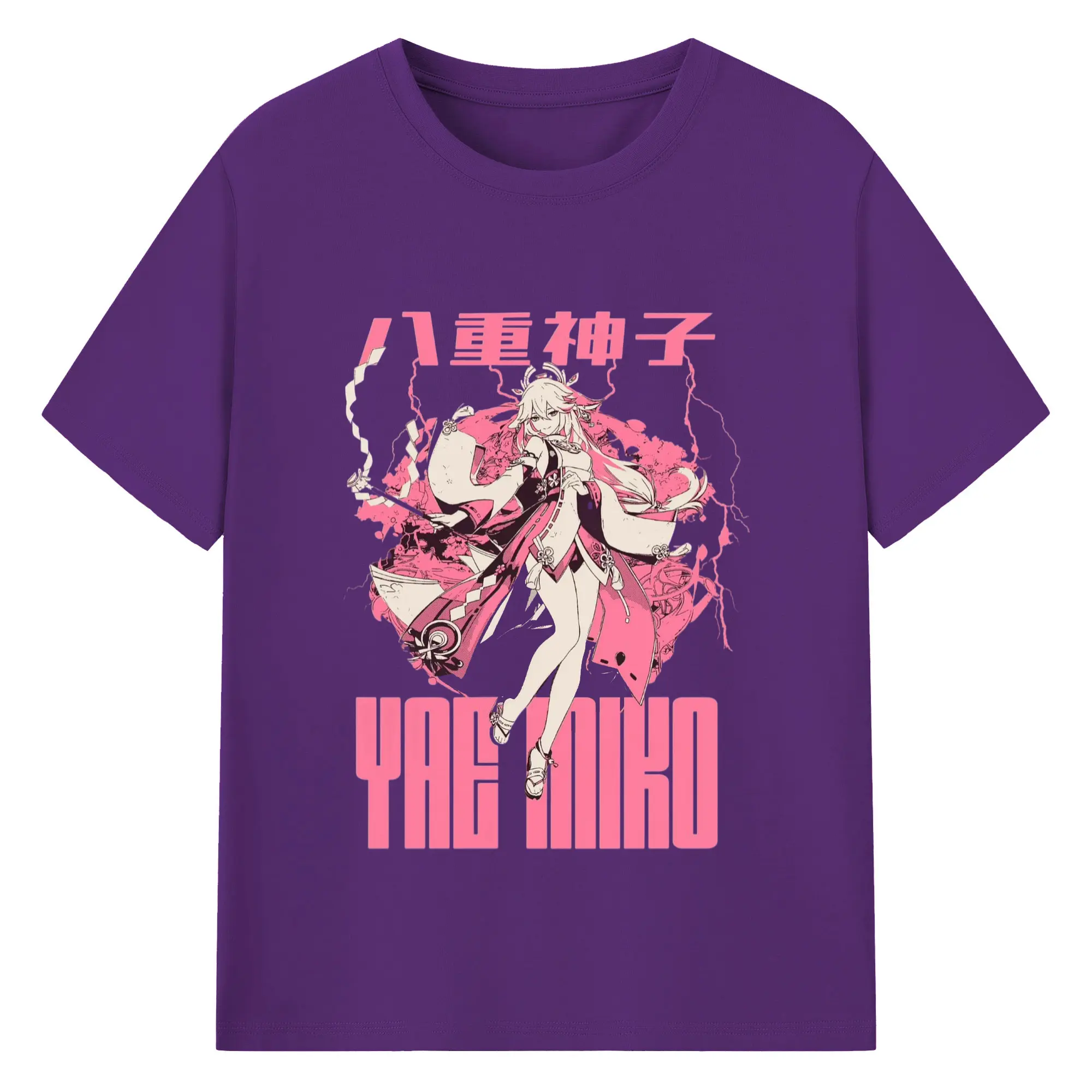 Genshin イナズマ - 綿100% 半袖Tシャツ ・ フロントプリント ・ 快適 通気性 ・ 日常使い 散歩 スポーツ用
