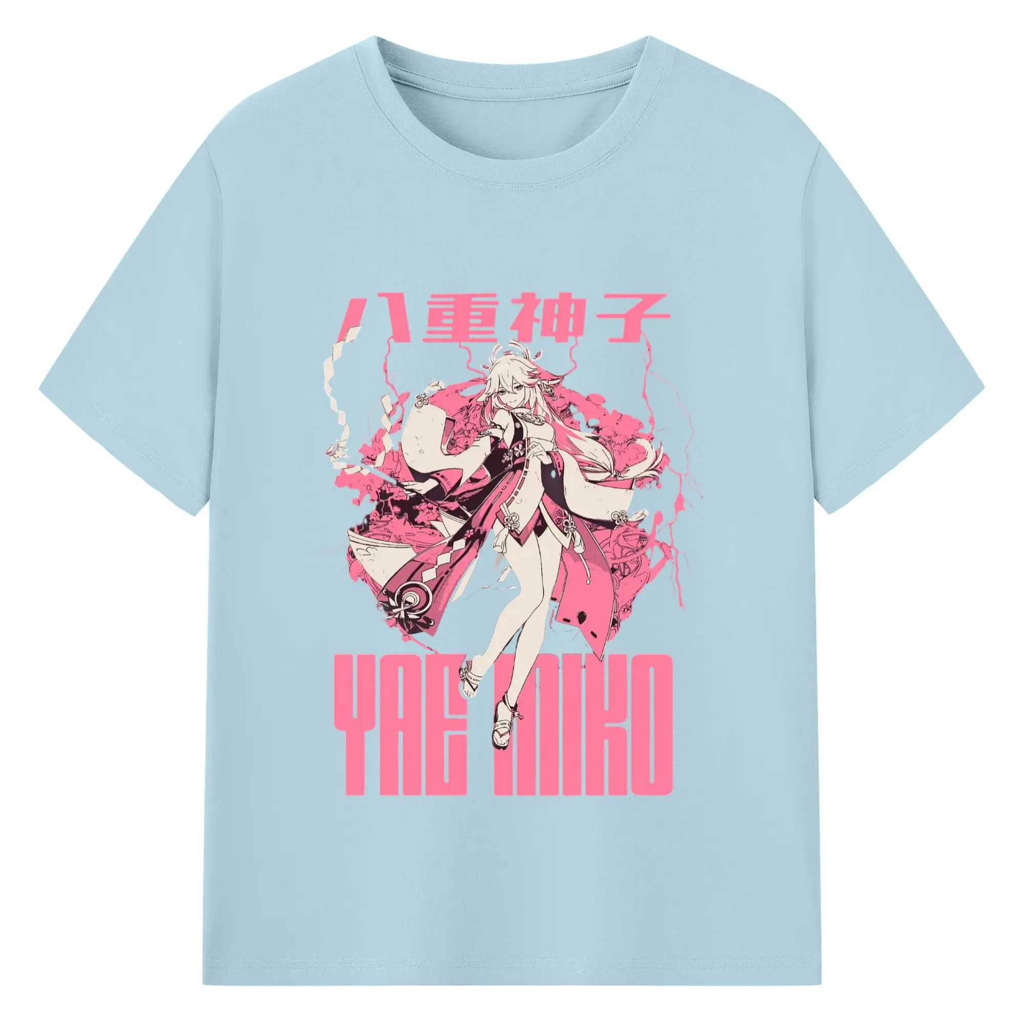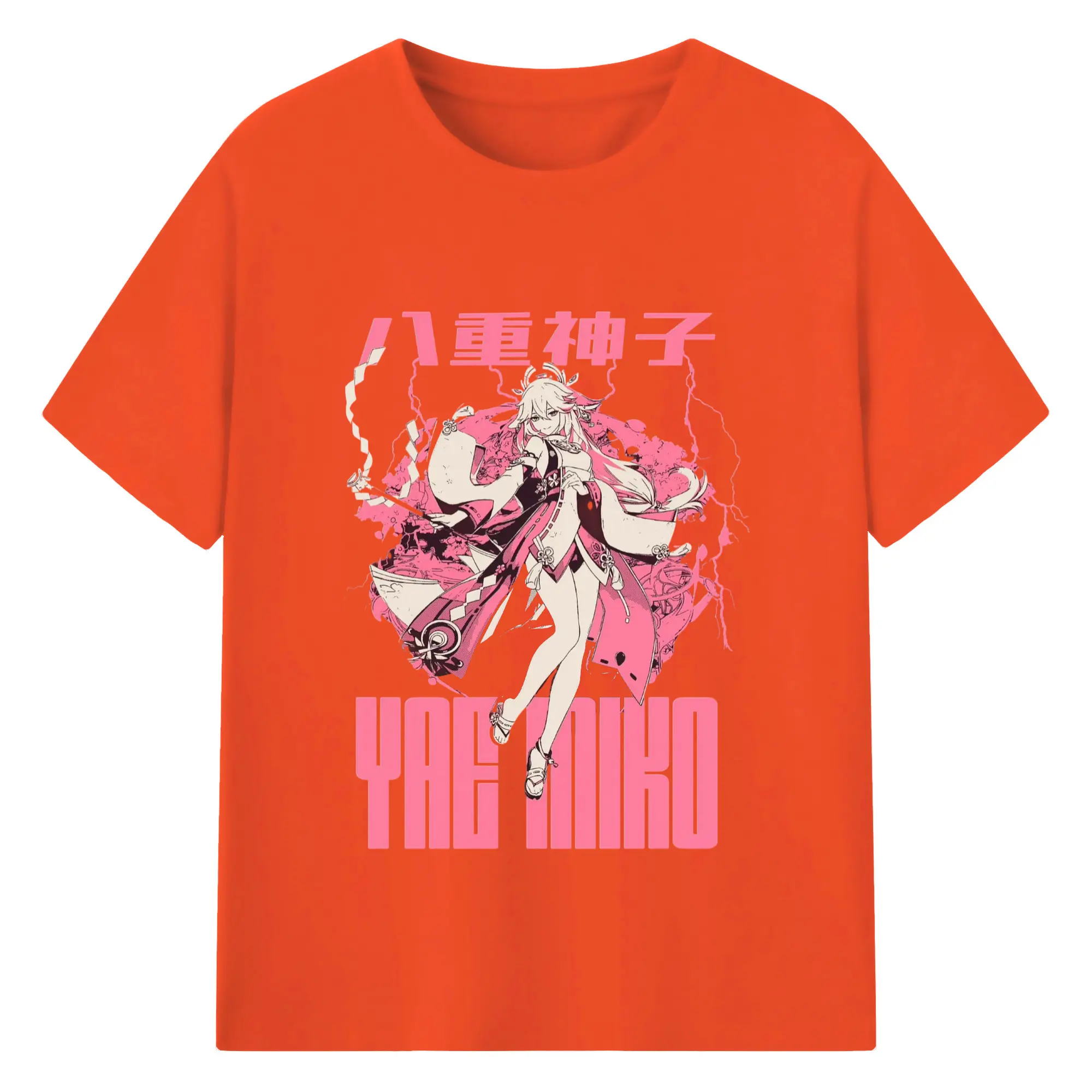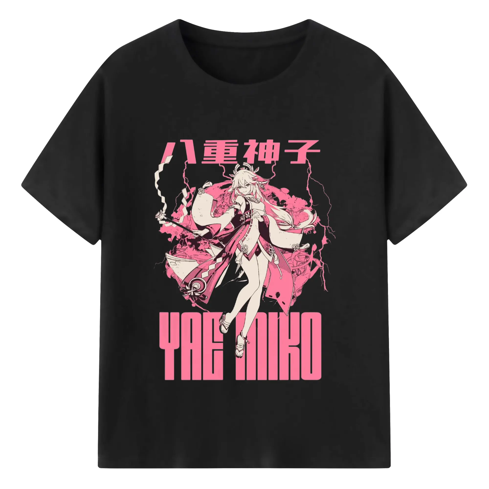 Genshin イナズマ - 綿100% 半袖Tシャツ ・ フロントプリント ・ 快適 通気性 ・ 日常使い 散歩 スポーツ用