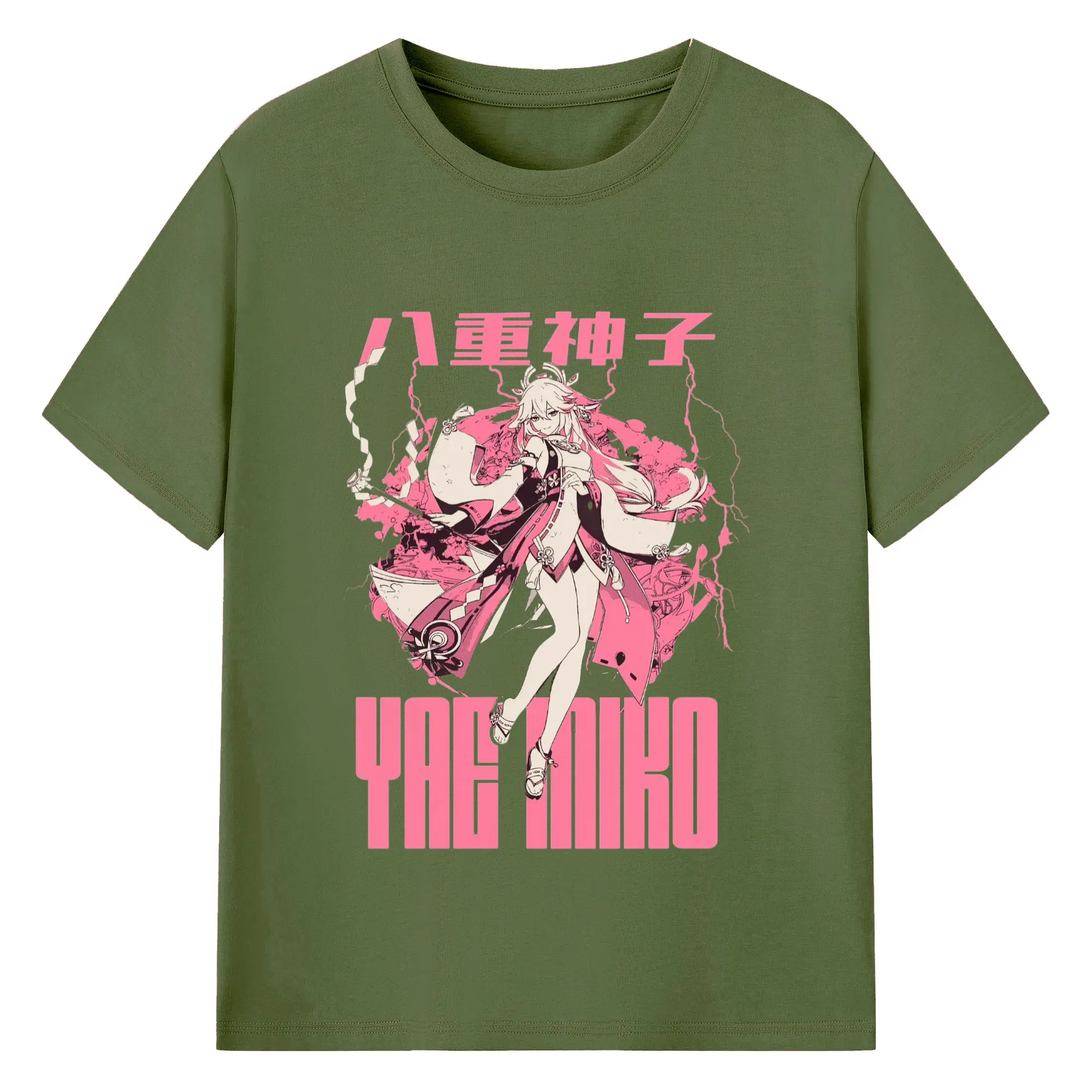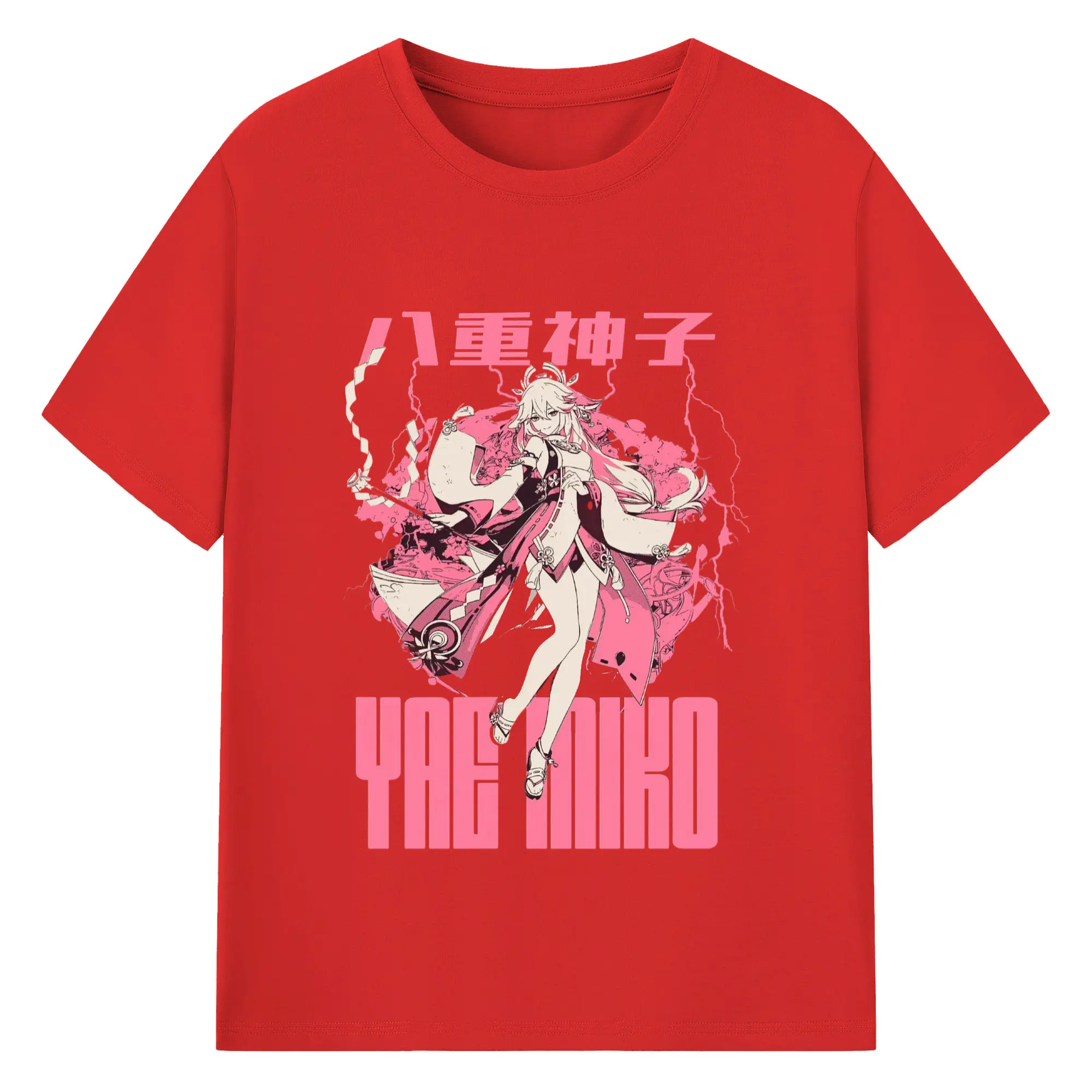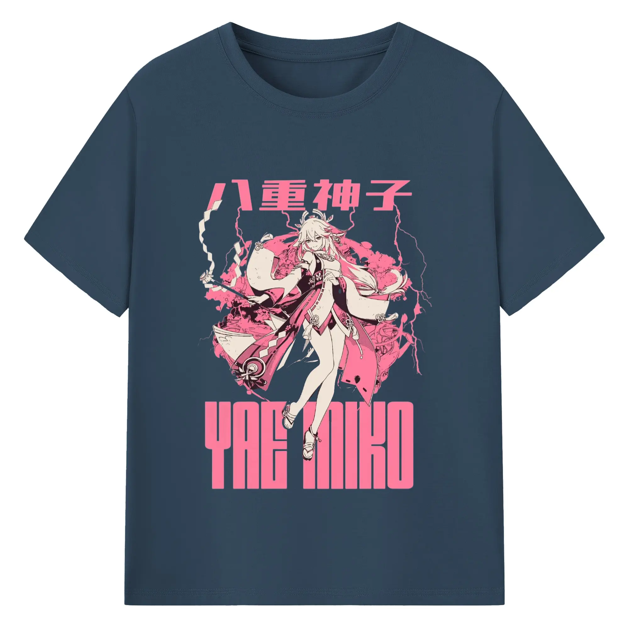Genshin イナズマ - 綿100% 半袖Tシャツ ・ フロントプリント ・ 快適 通気性 ・ 日常使い 散歩 スポーツ用
