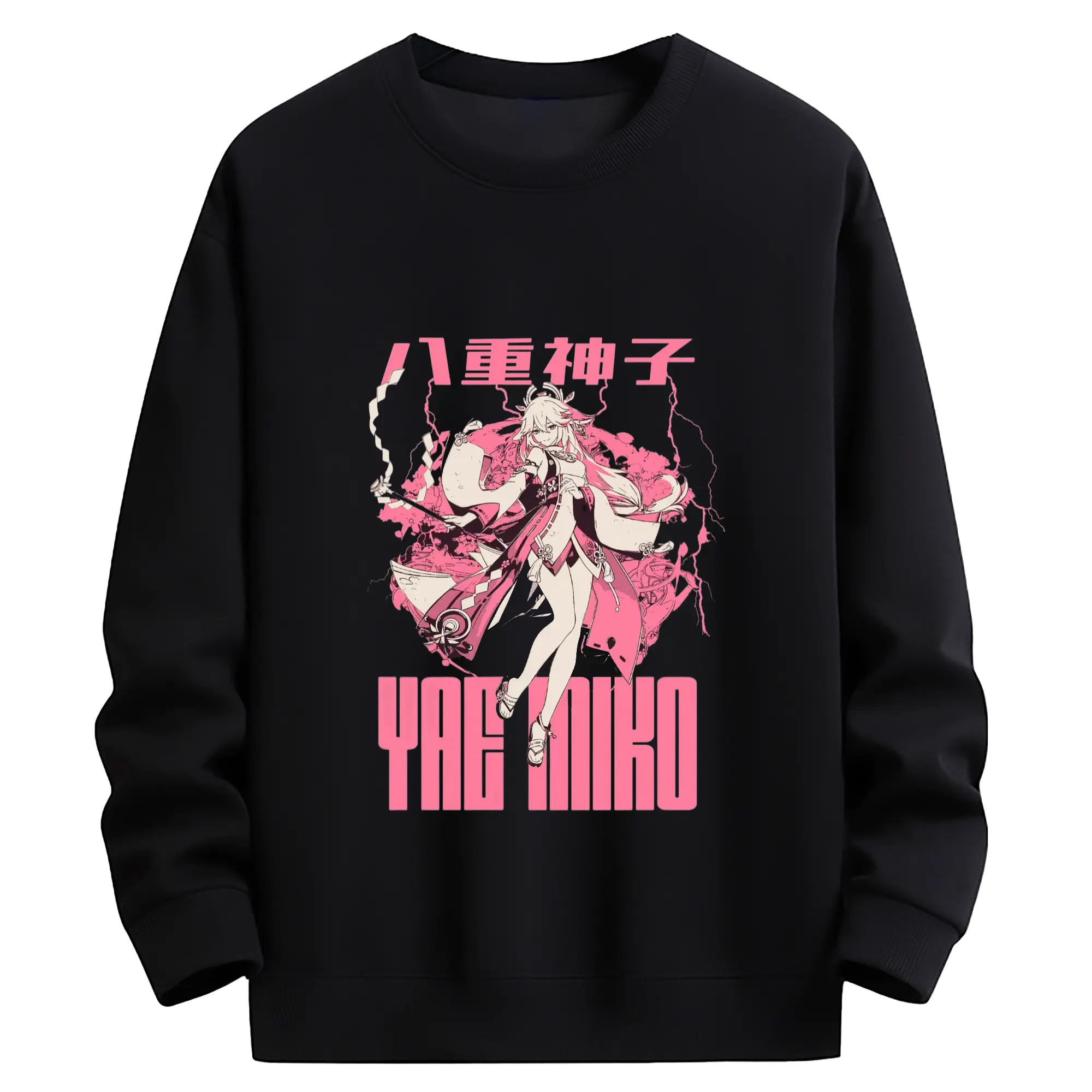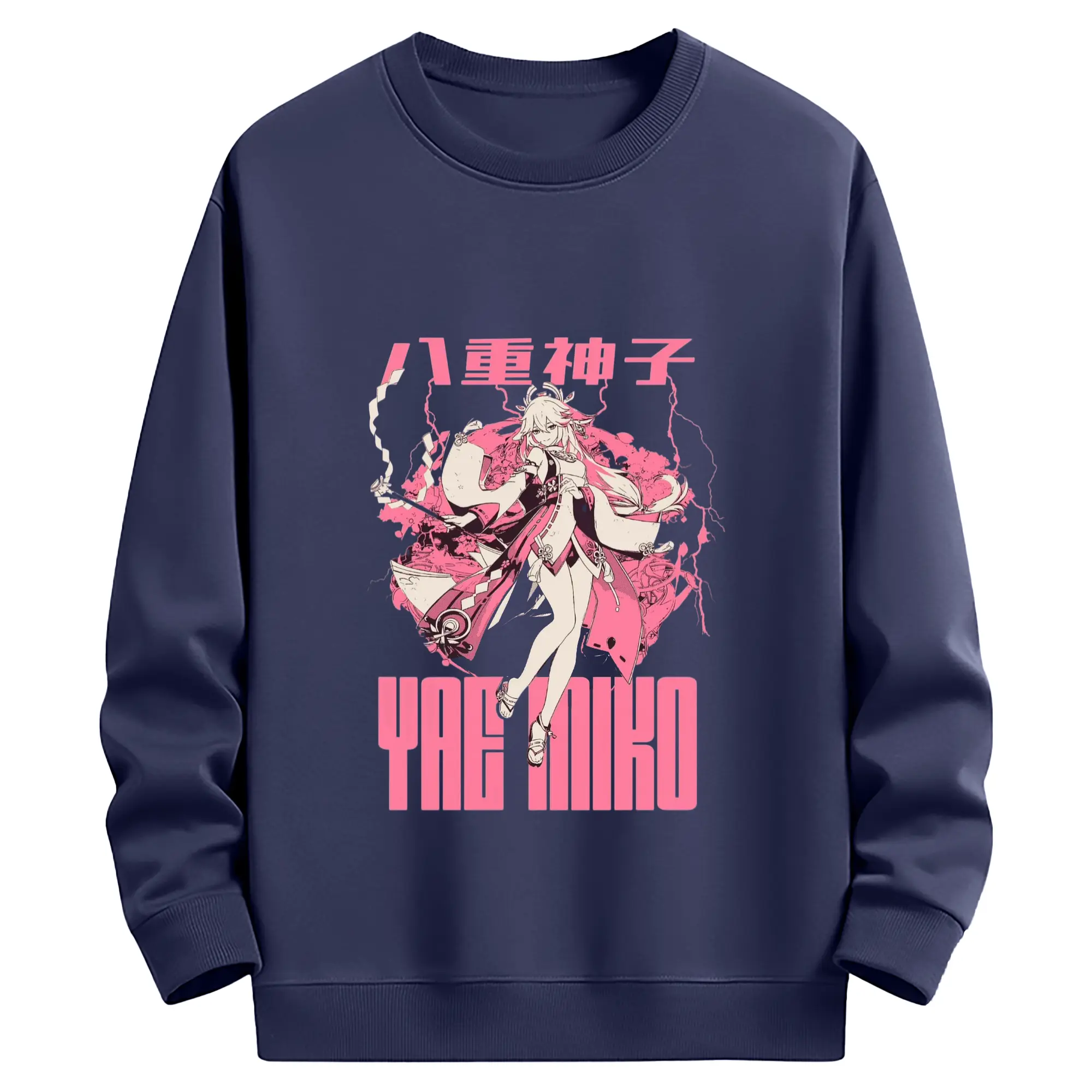 Genshin イナズマ - 高品質 クルーネック スウェット ・ コットン59% ポリエステル41% ・ ユニセックス 長袖 トレーナー ・ カジュアル デイリー スポーツ 散歩用