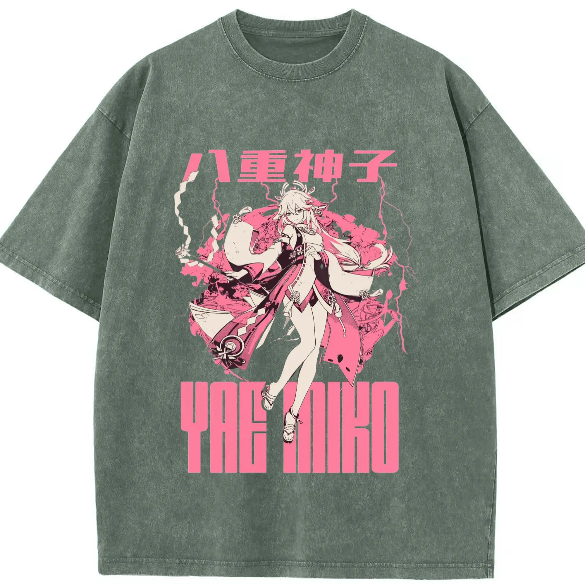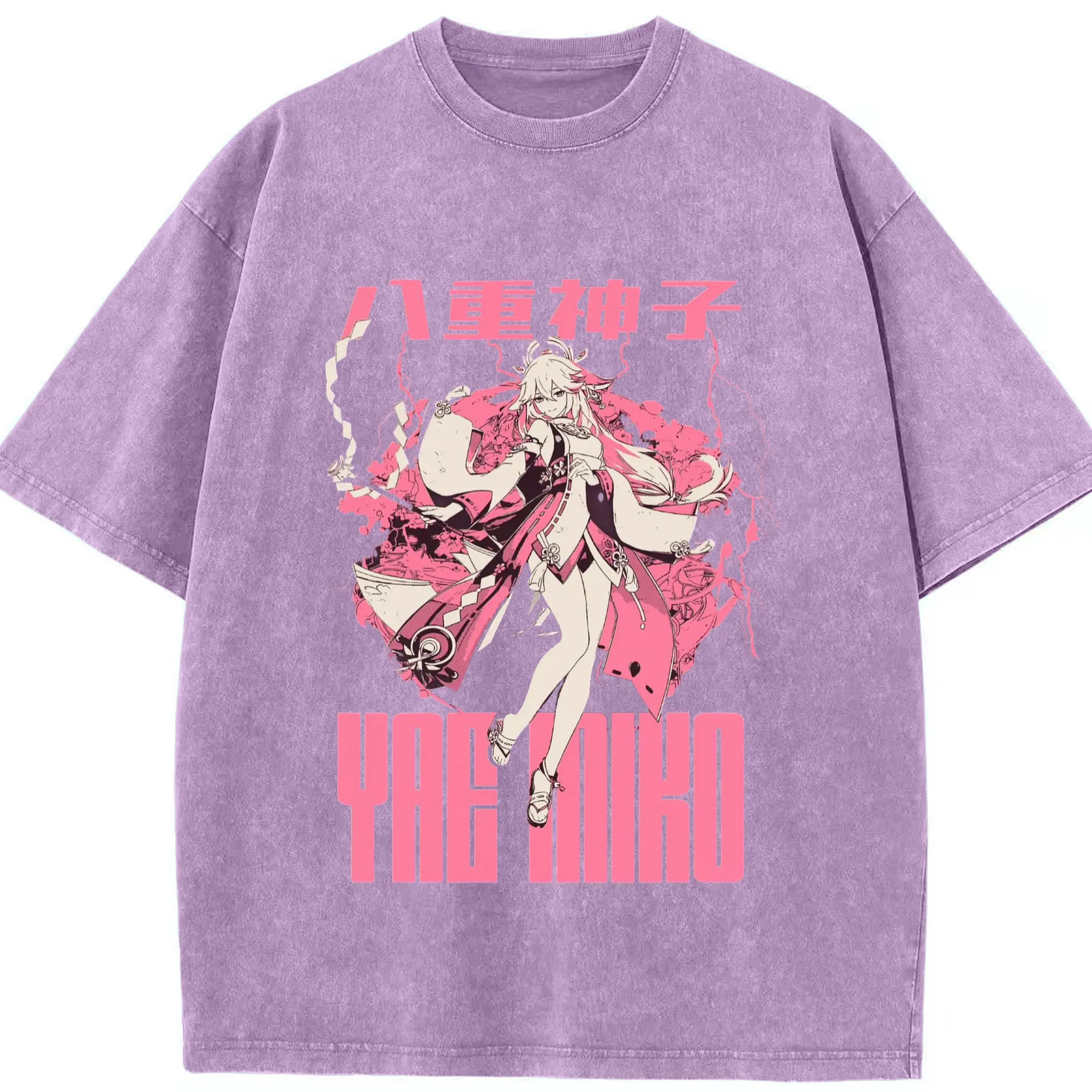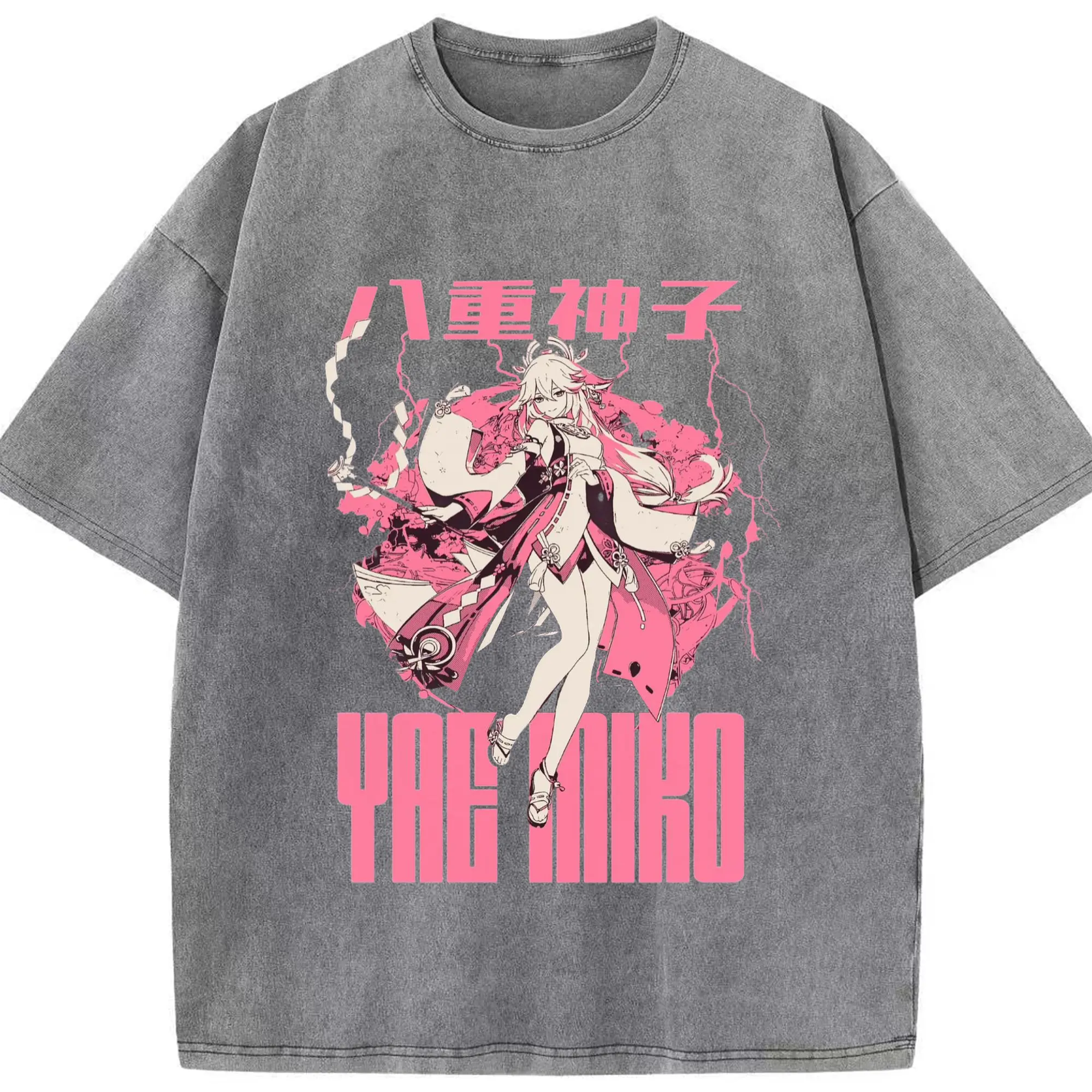 Genshin イナズマ - 綿100% ヴィンテージ風 半袖Tシャツ ・ フロントプリント ・ 柔らか肌触り ・ 通気性 快適 ・ スポーツ カジュアル 外出用