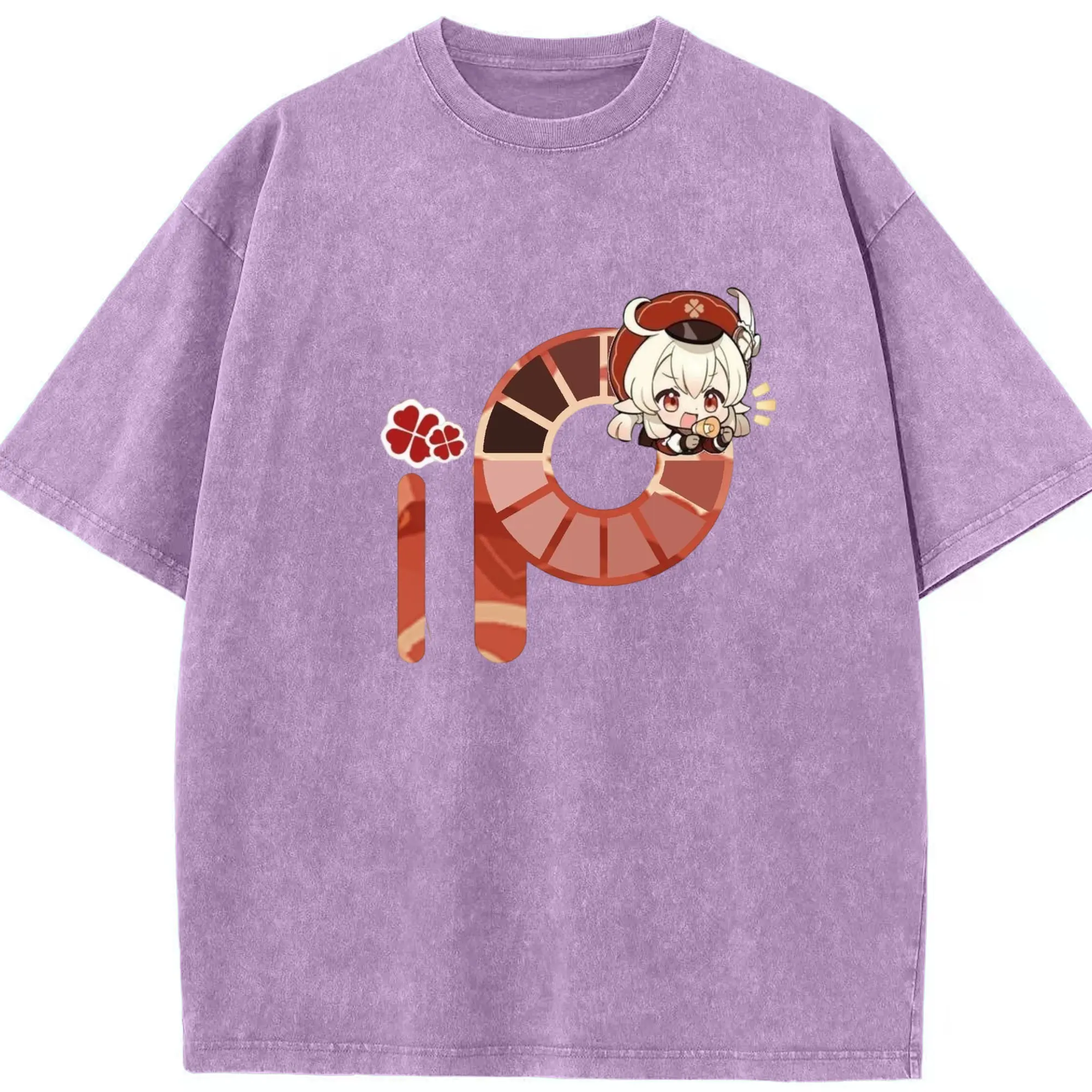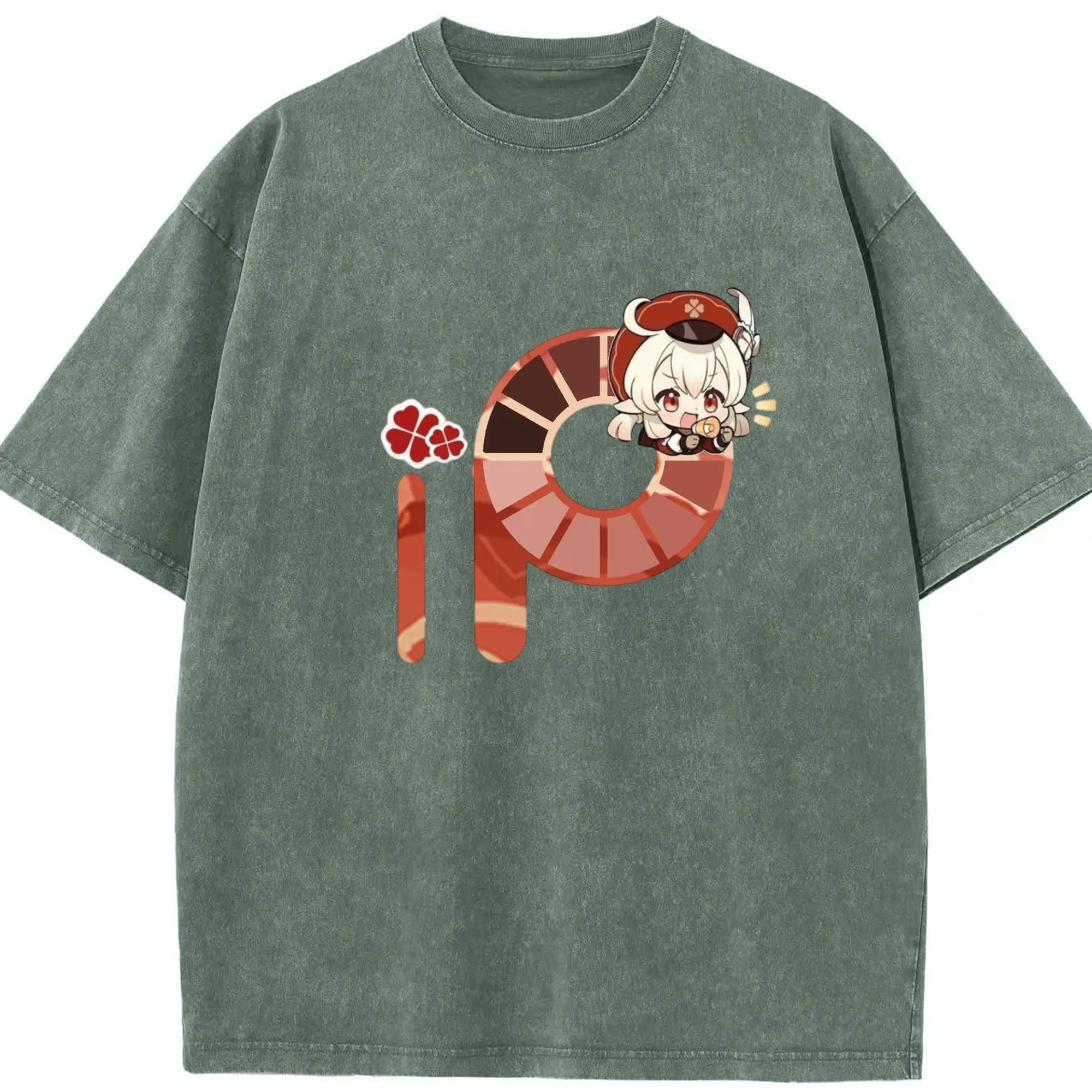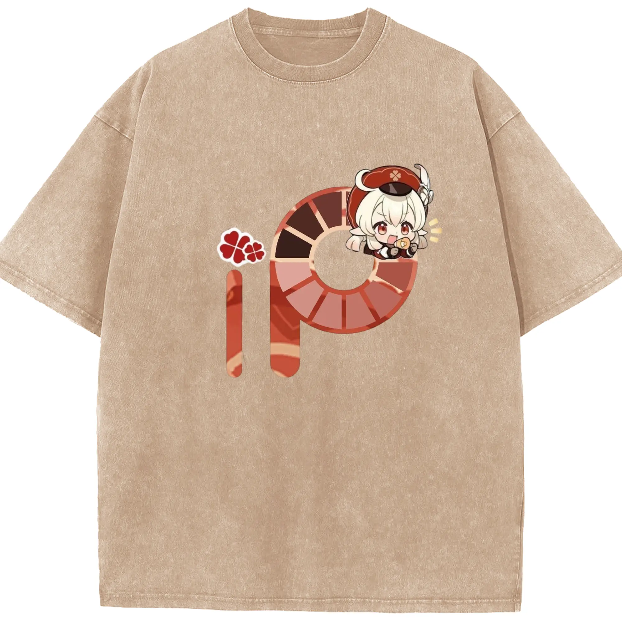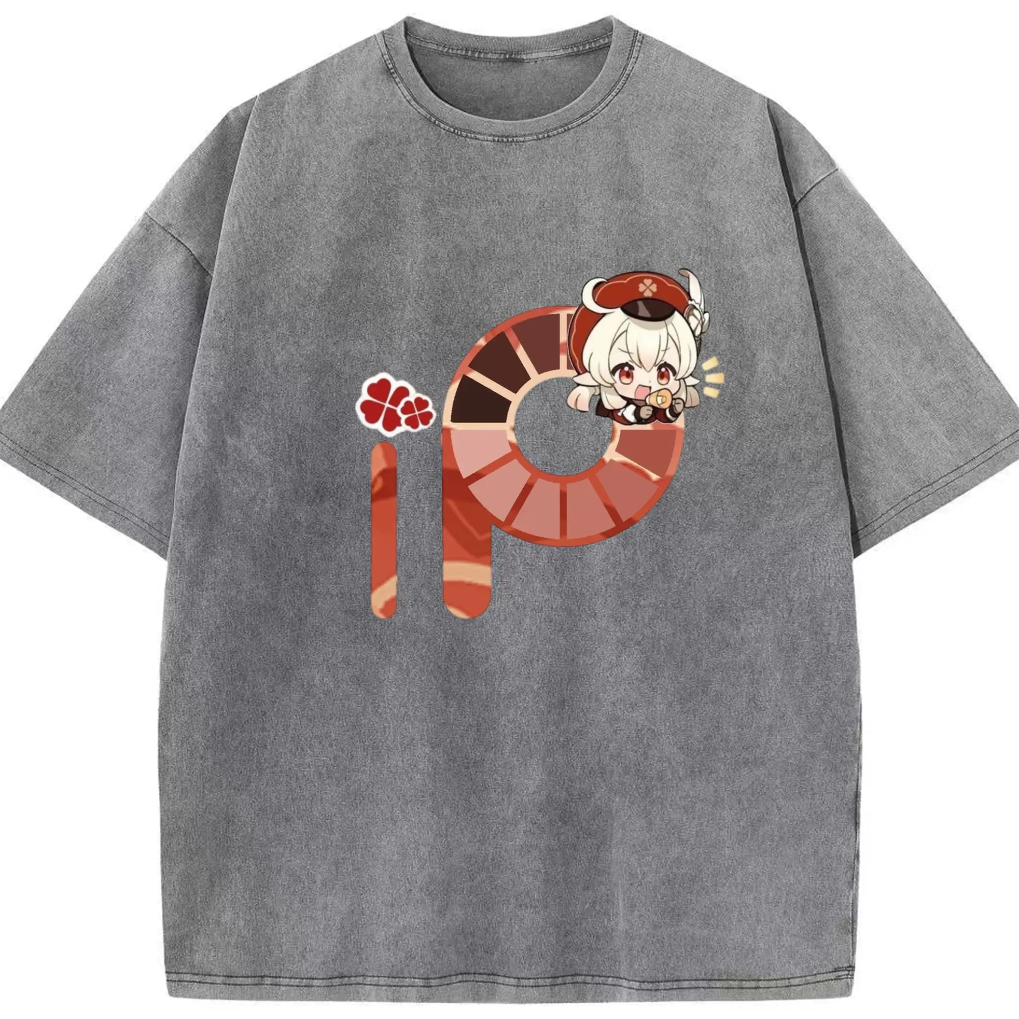 Genshin クレーちゃん - 綿100% ヴィンテージ風 半袖Tシャツ ・ フロントプリント ・ 柔らか肌触り ・ 通気性 快適 ・ スポーツ カジュアル 外出用