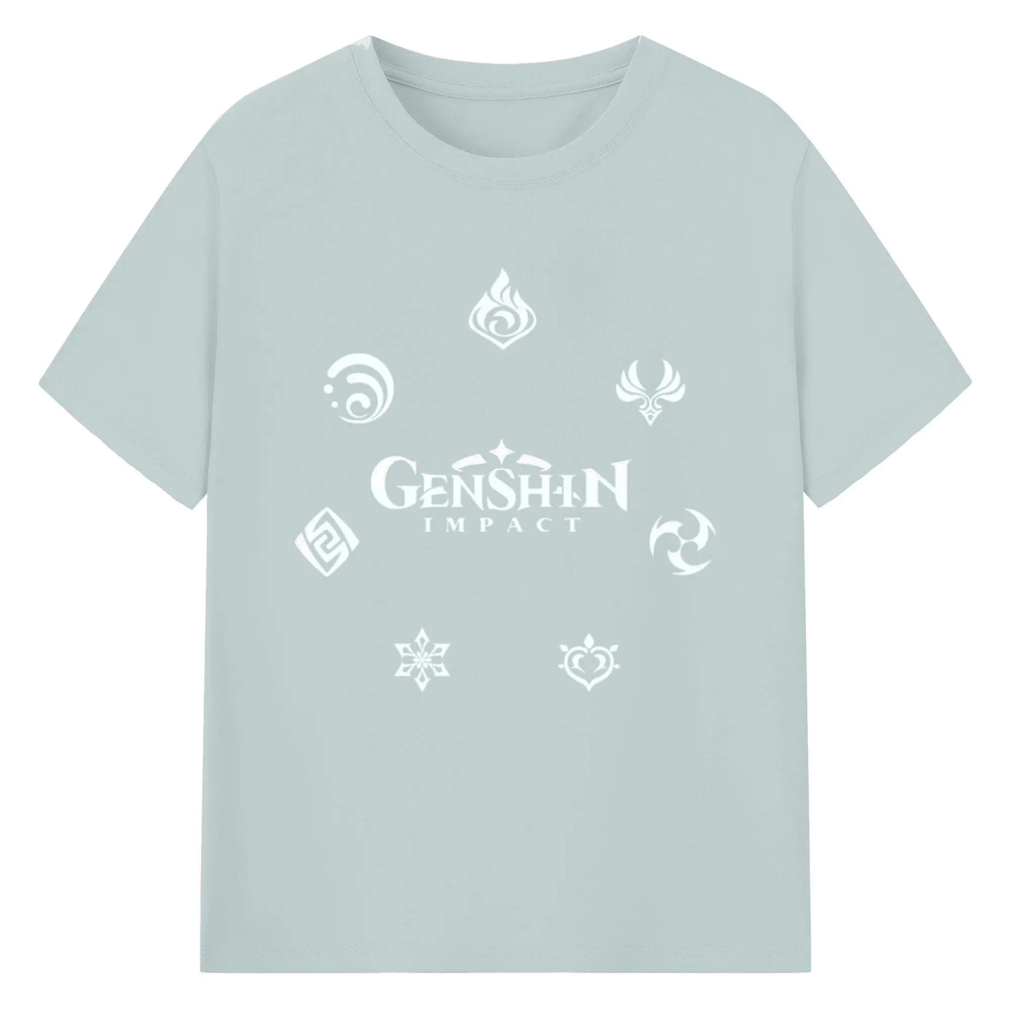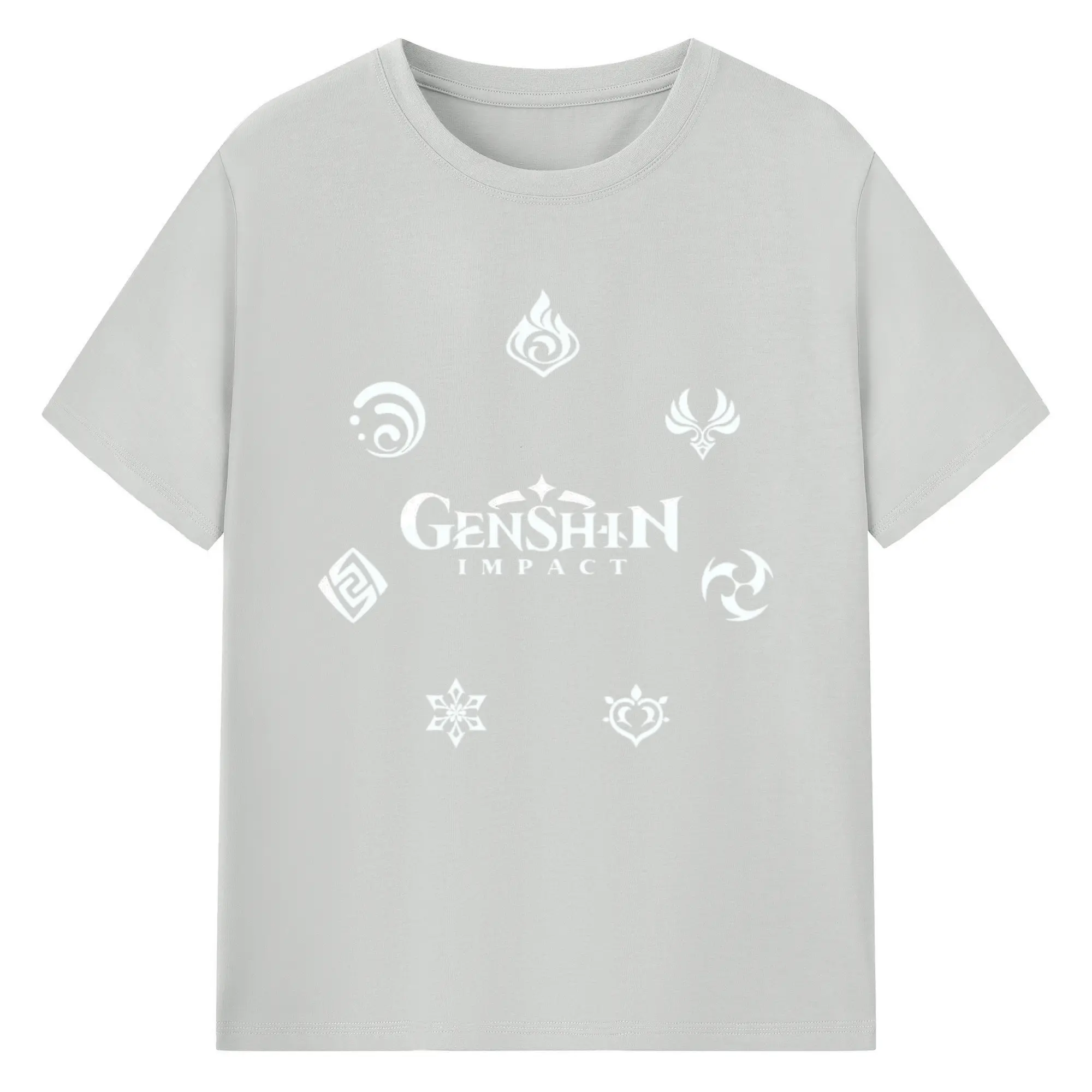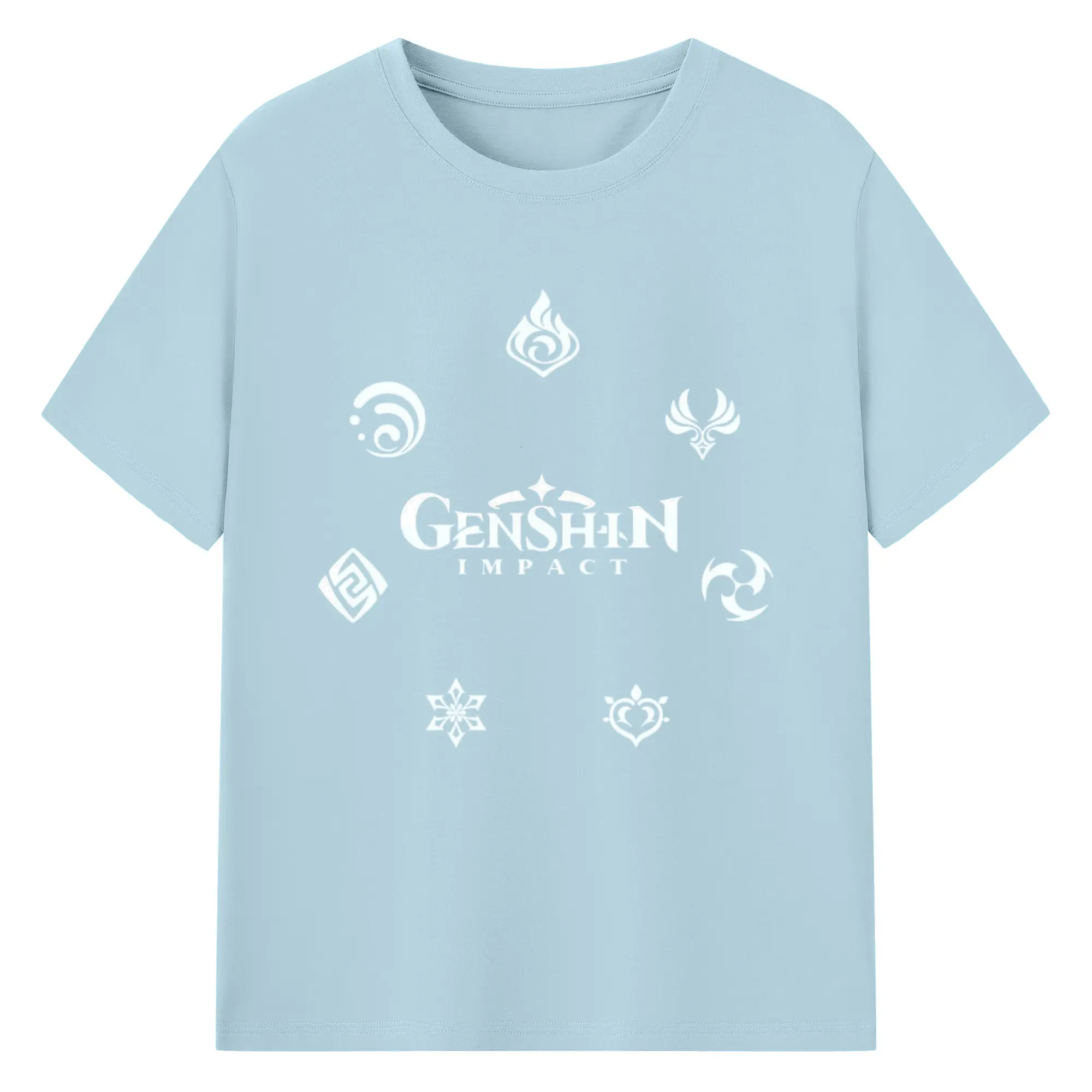 Genshin シンプルロゴ - 綿100% 半袖Tシャツ ・ フロントプリント ・ 快適 通気性 ・ 日常使い 散歩 スポーツ用