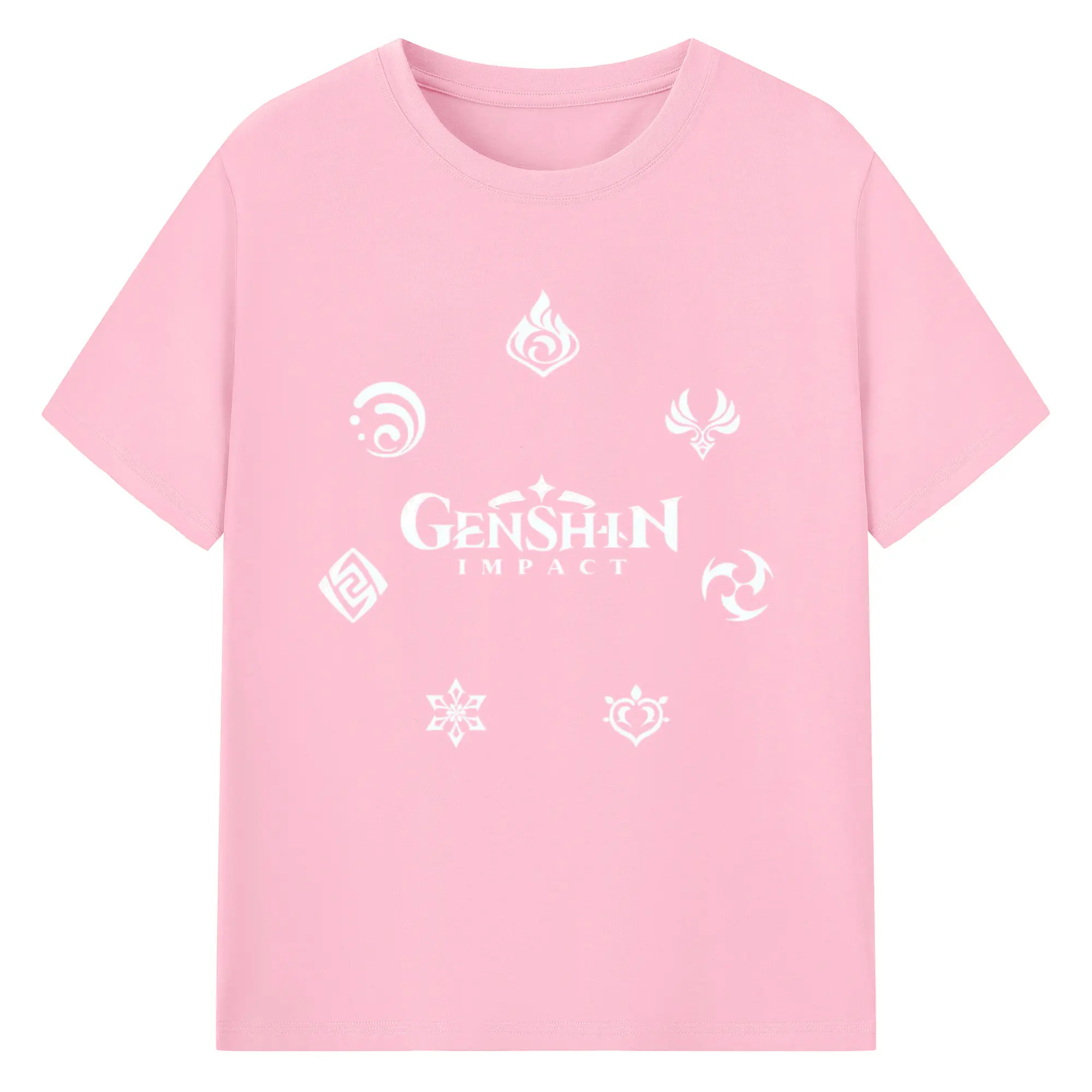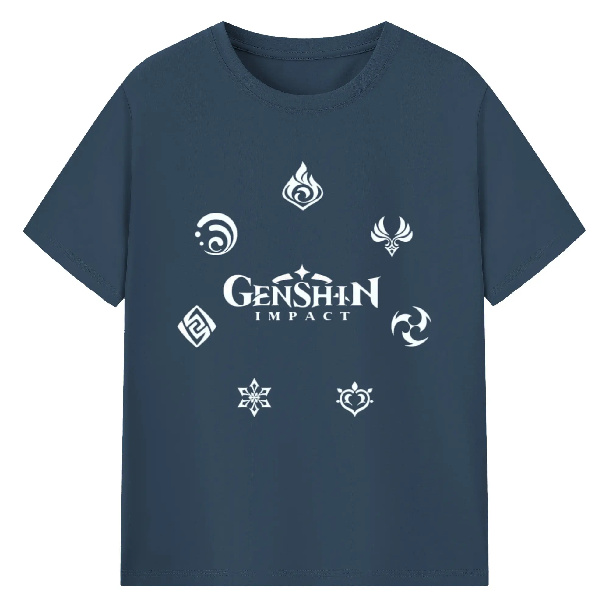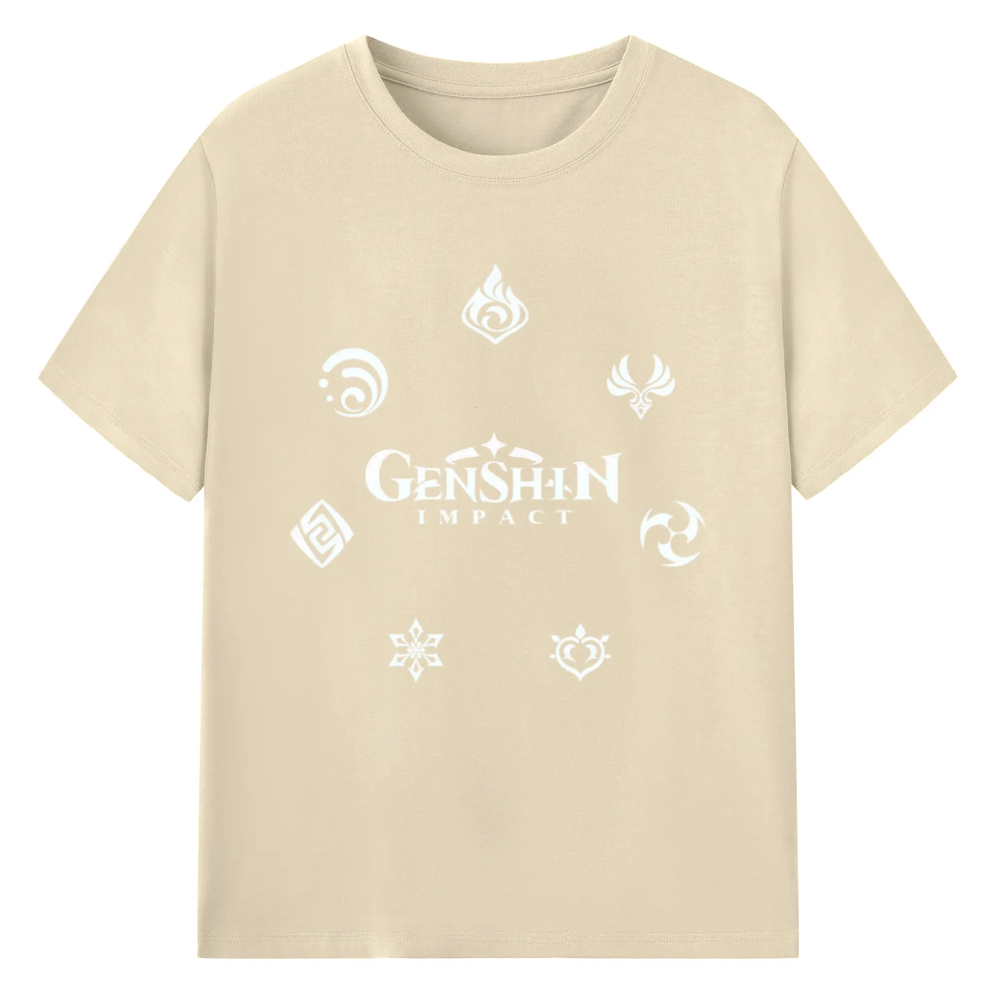 Genshin シンプルロゴ - 綿100% 半袖Tシャツ ・ フロントプリント ・ 快適 通気性 ・ 日常使い 散歩 スポーツ用