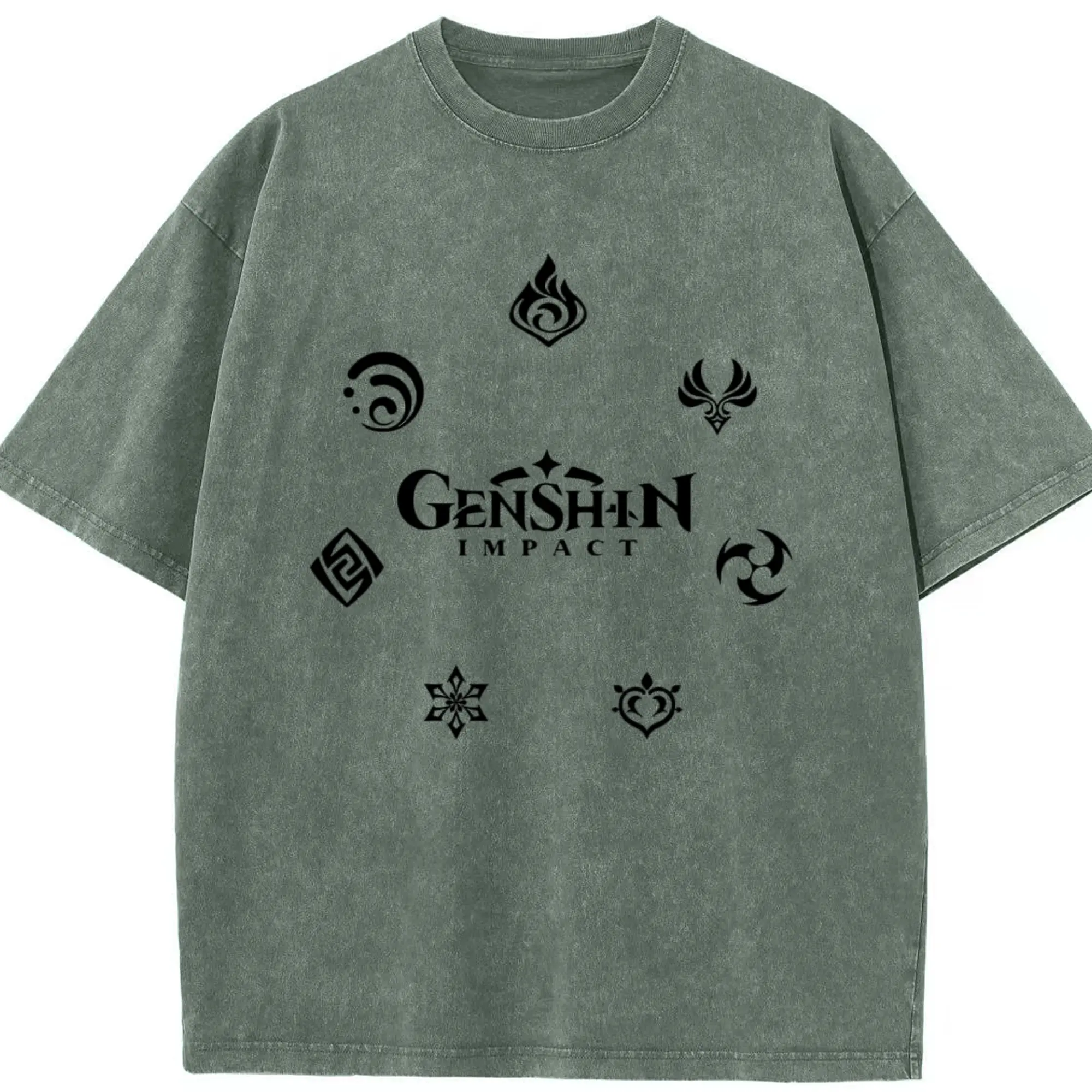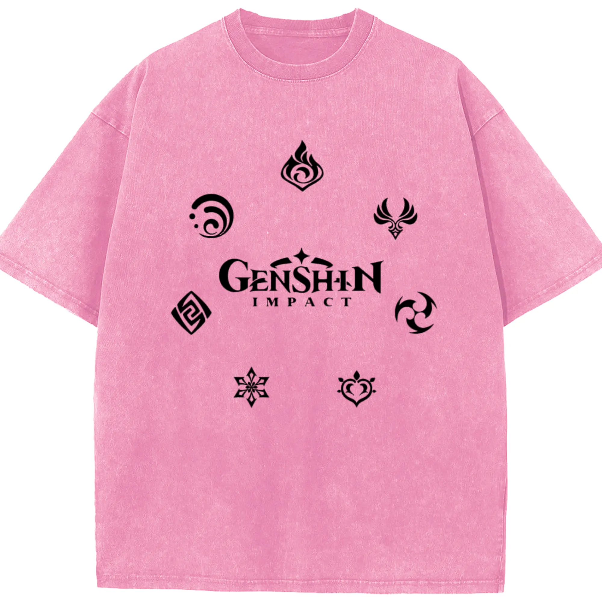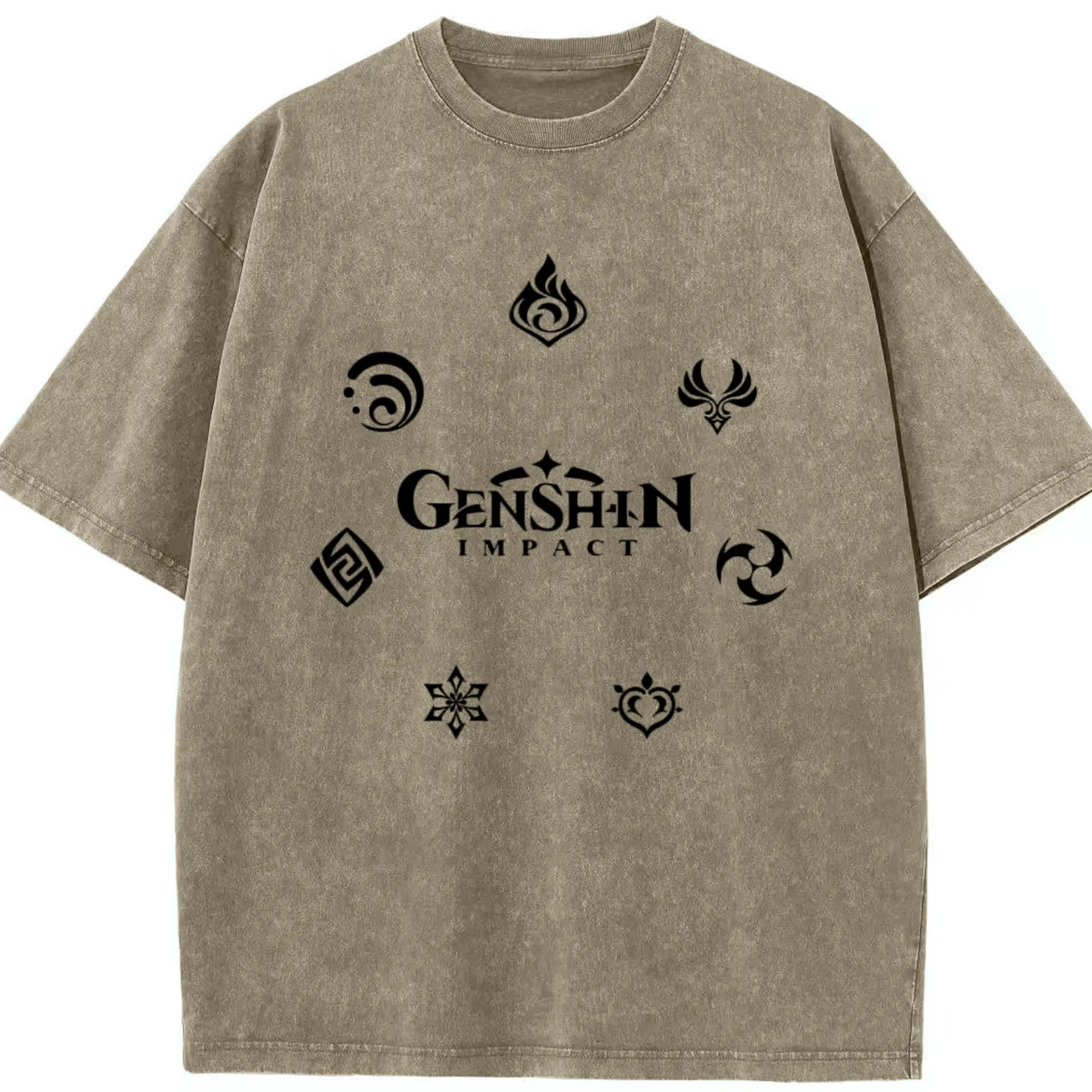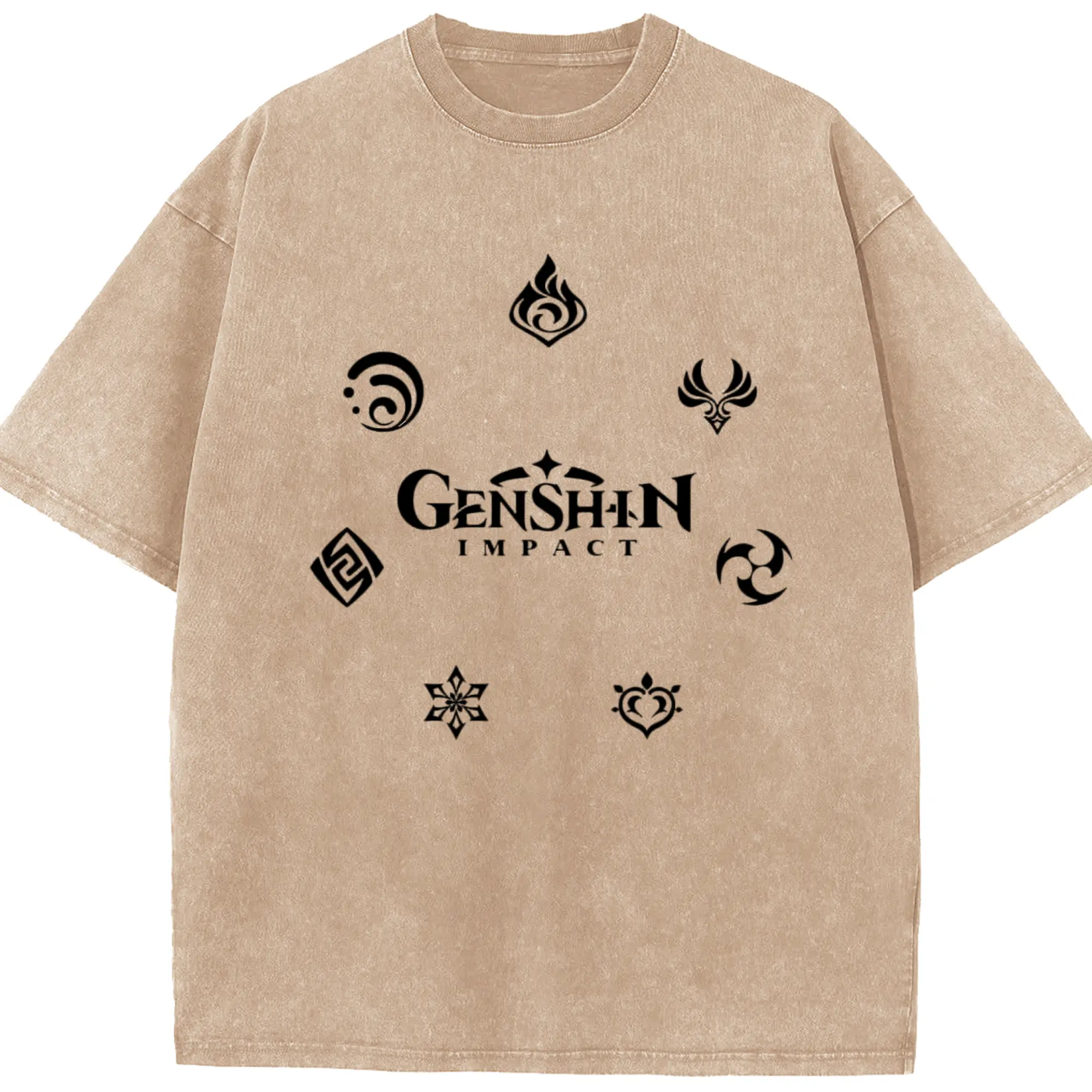 Genshin シンプルロゴ - 綿100% 半袖Tシャツ ・ フロントプリント ・ 快適 通気性 ・ 日常使い 散歩 スポーツ用