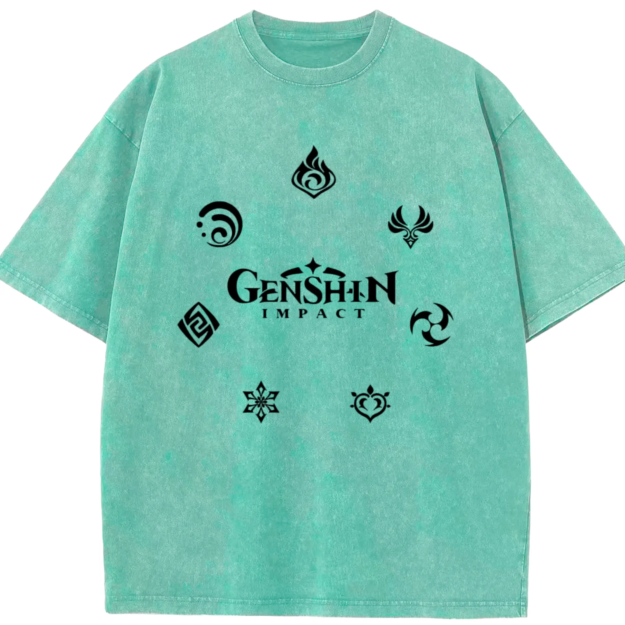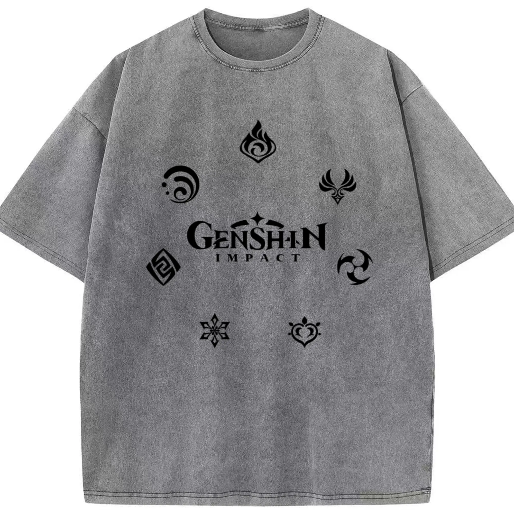 Genshin ナド・クライ - 綿100% ヴィンテージ風 半袖Tシャツ ・ フロントプリント ・ 柔らか肌触り ・ 通気性 快適 ・ スポーツ カジュアル 外出用