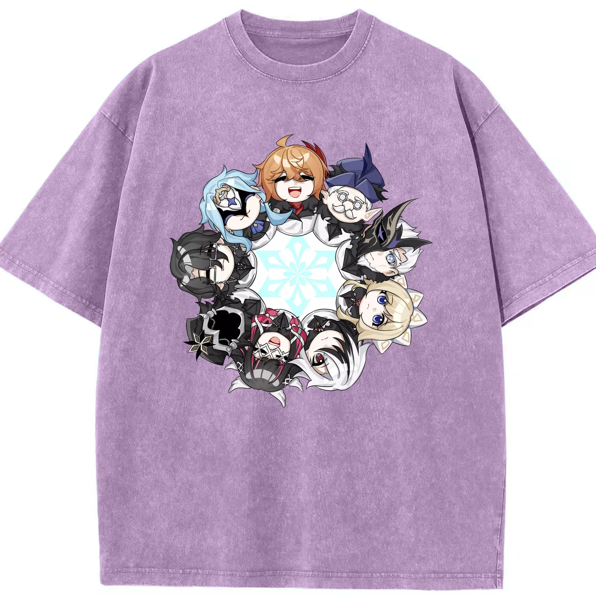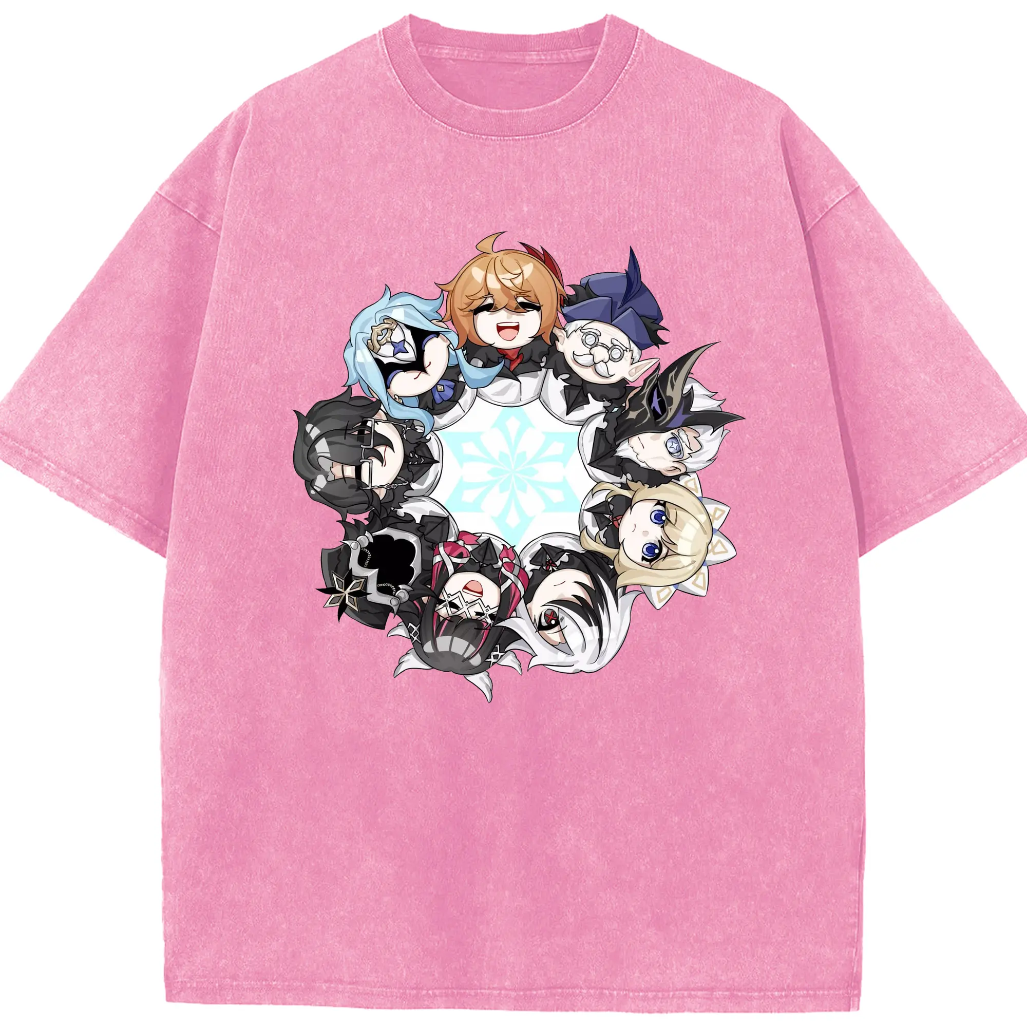 Genshin スネージナヤ 先行公開限定 - 綿100% ヴィンテージ風 半袖Tシャツ ・ フロントプリント ・ 柔らか肌触り ・ 通気性 快適 ・ スポーツ カジュアル 外出用