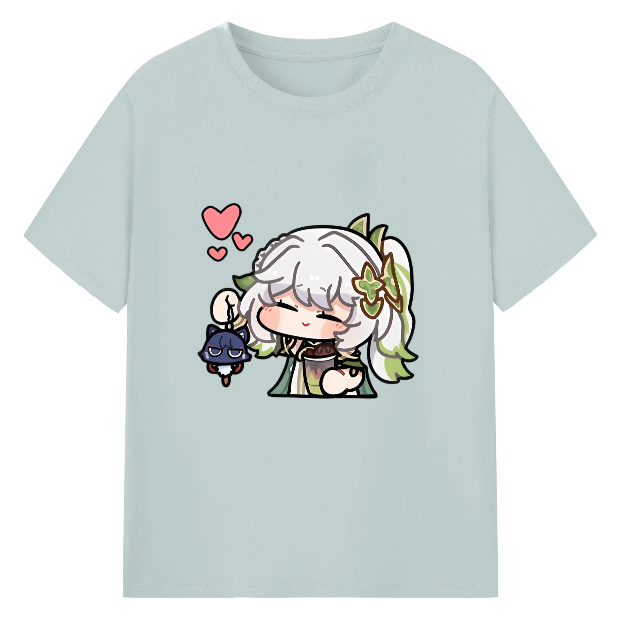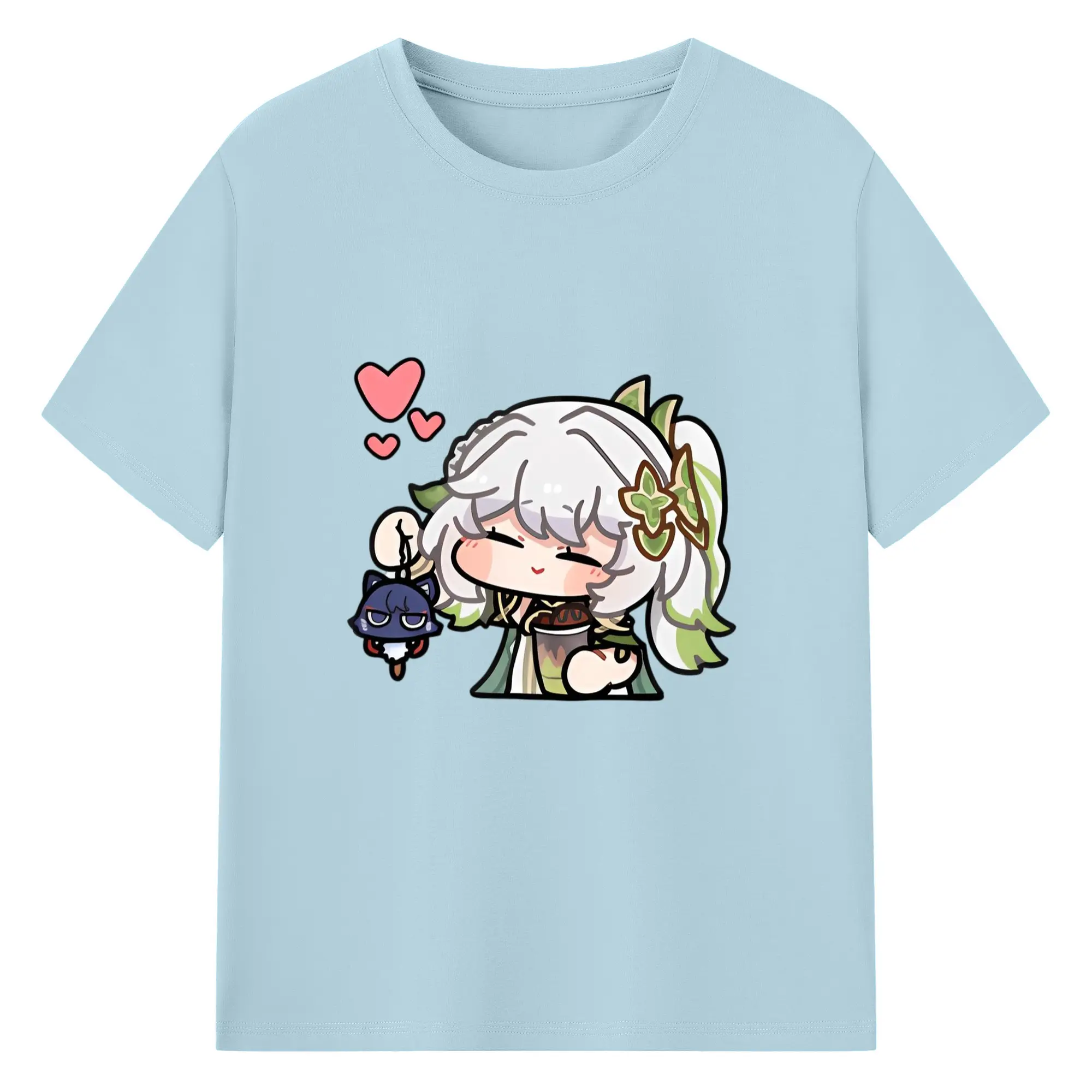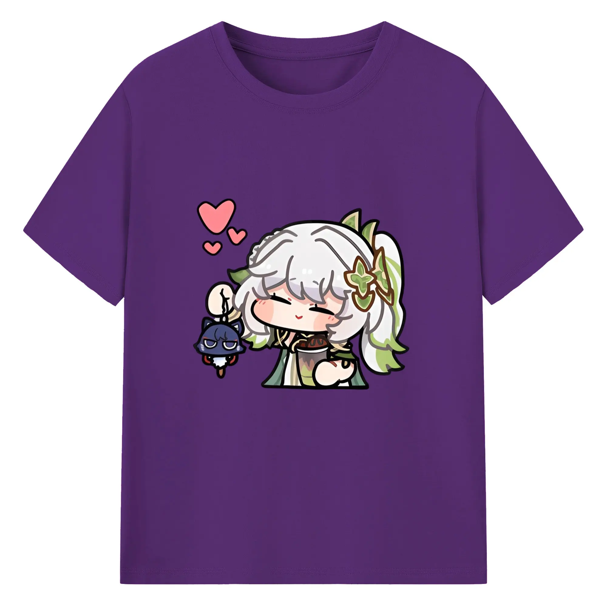 Genshin スメール草神そうしん ナヒーダ - 綿100% 半袖Tシャツ ・ フロントプリント ・ 快適 通気性 ・ 日常使い 散歩 スポーツ用