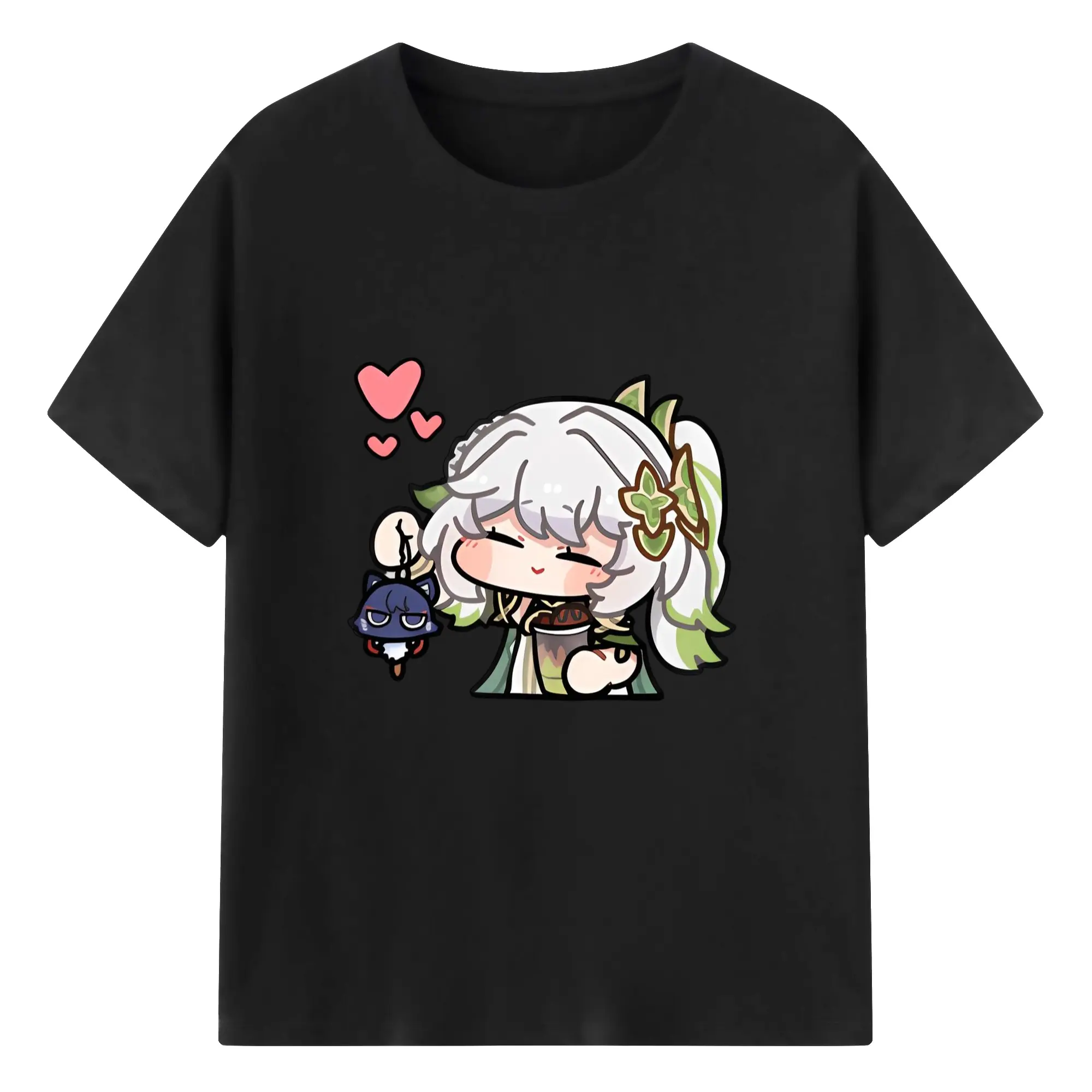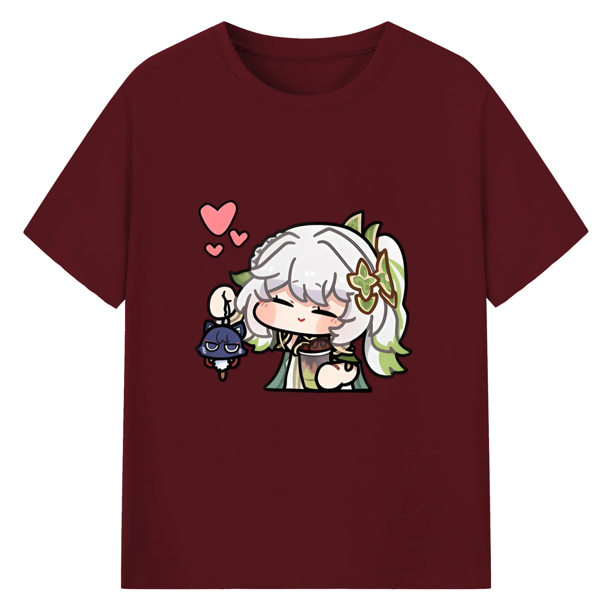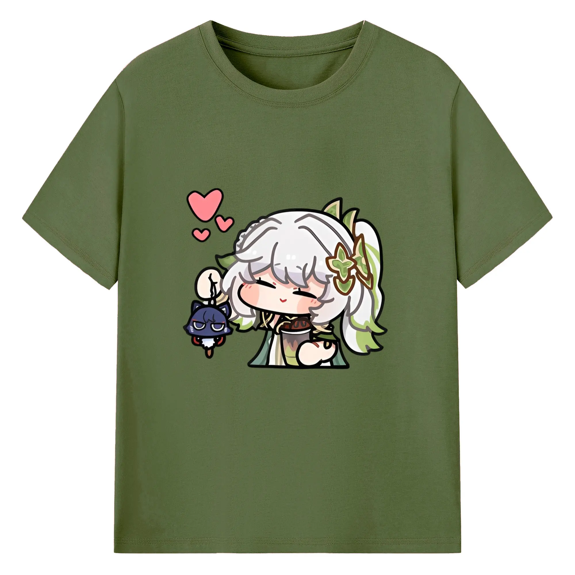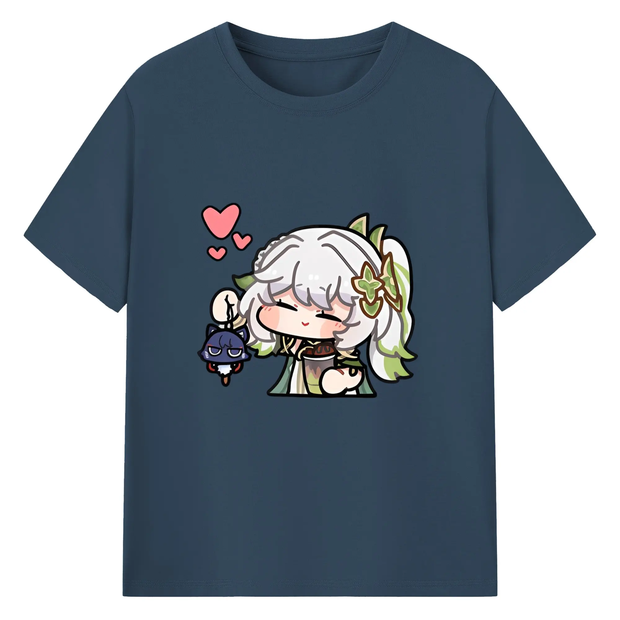 Genshin スメール草神そうしん ナヒーダ - 綿100% 半袖Tシャツ ・ フロントプリント ・ 快適 通気性 ・ 日常使い 散歩 スポーツ用