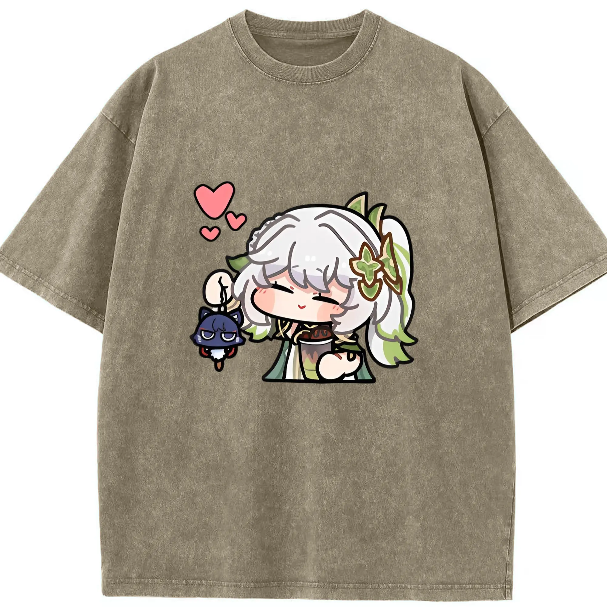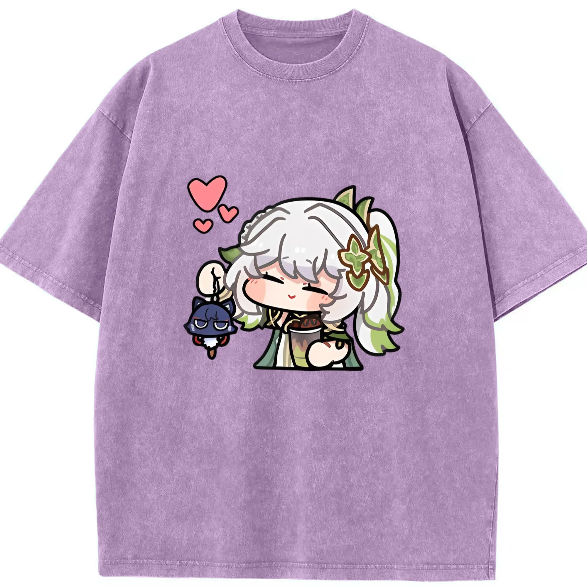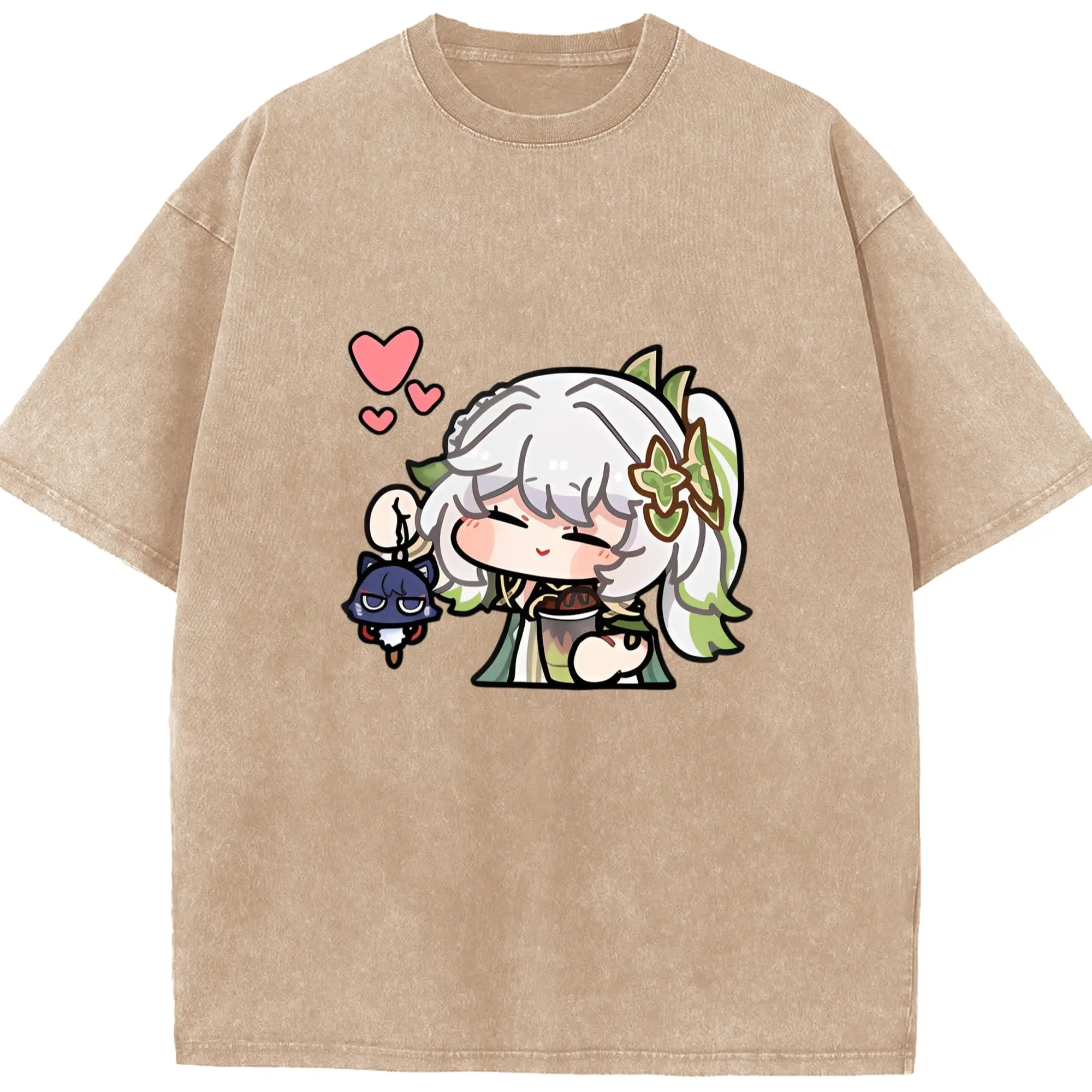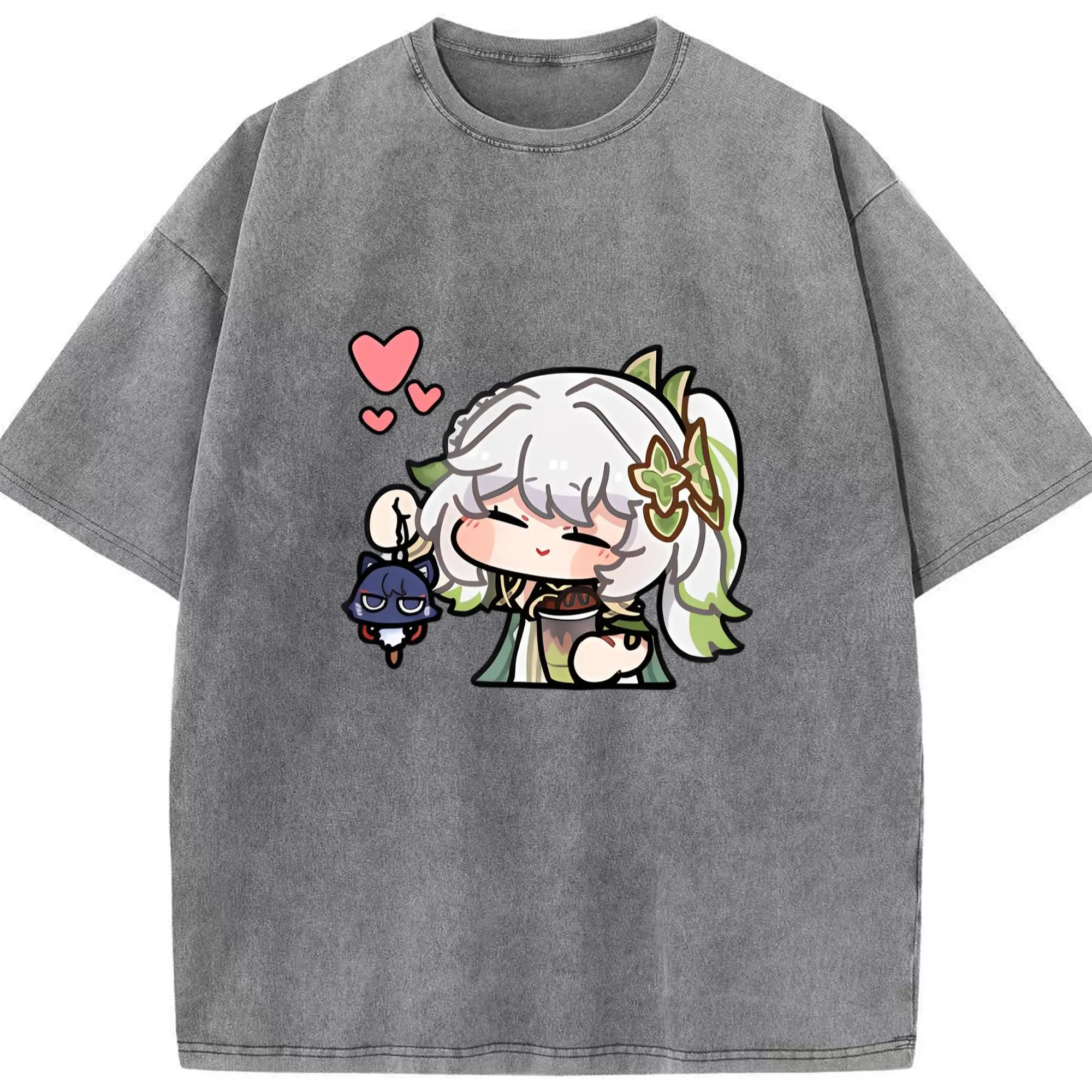 Genshin スメール草神そうしん ナヒーダ - 綿100% ヴィンテージ風 半袖Tシャツ ・ フロントプリント ・ 柔らか肌触り ・ 通気性 快適 ・ スポーツ カジュアル 外出用