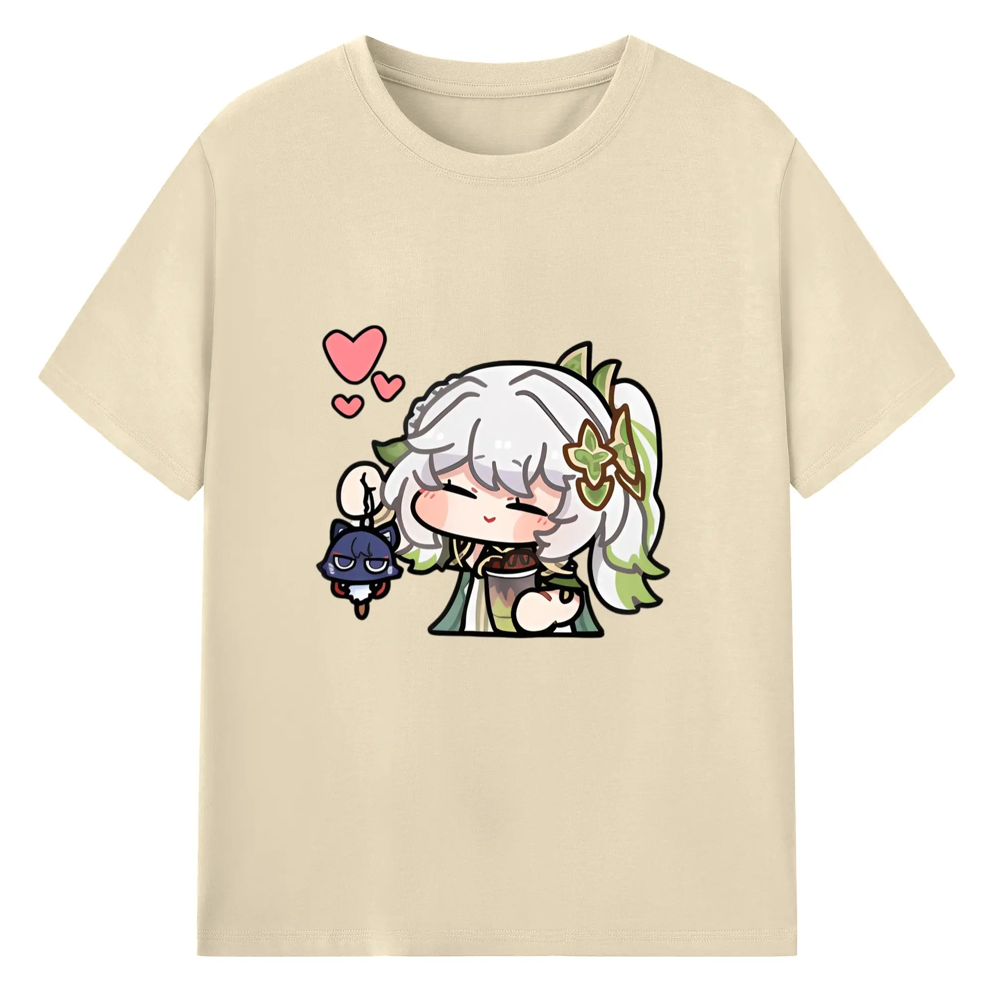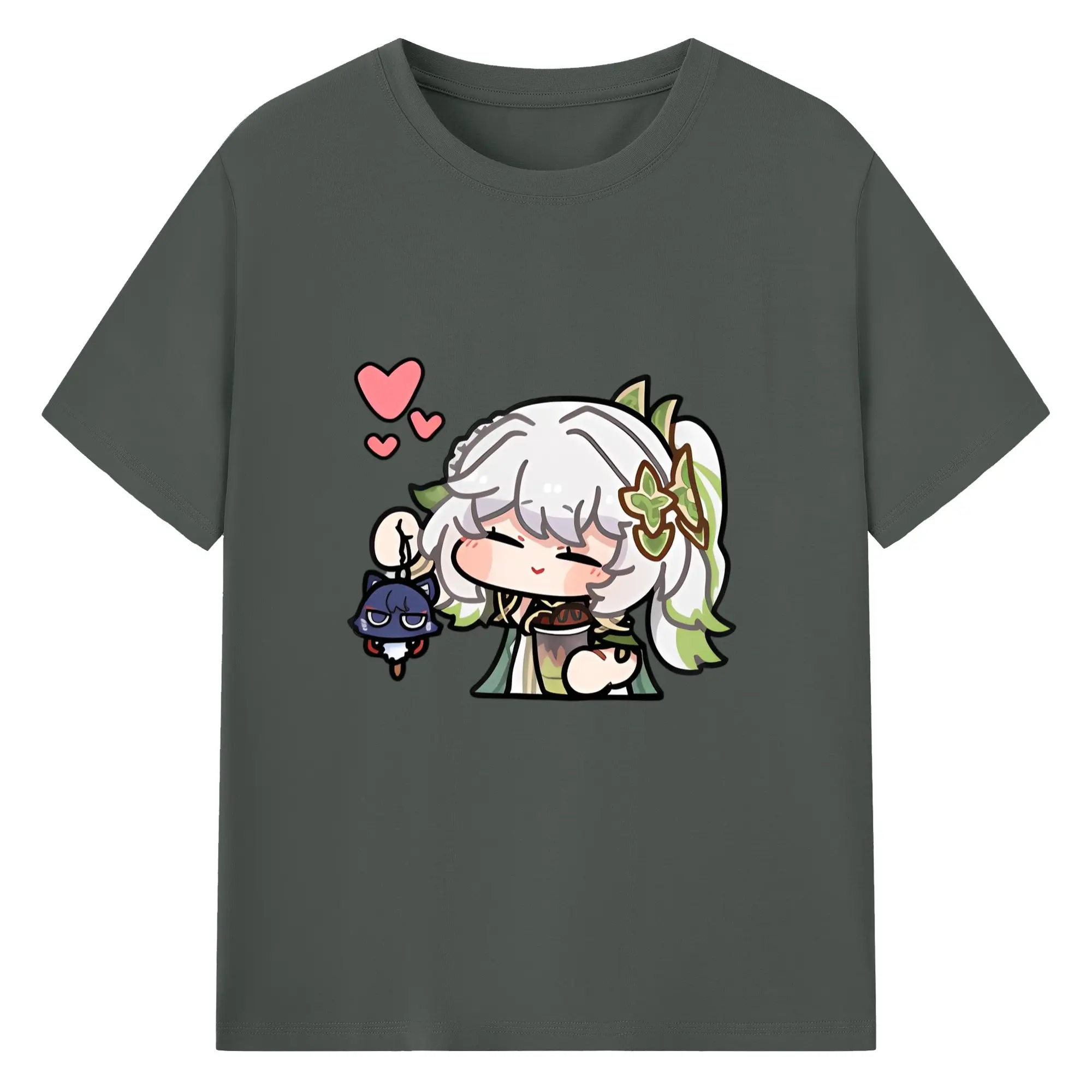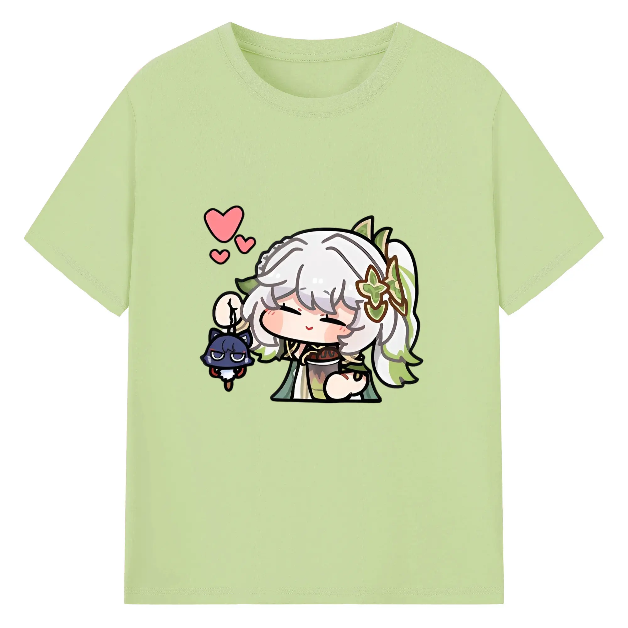 Genshin スメール草神そうしん ナヒーダ - 綿100% 半袖Tシャツ ・ フロントプリント ・ 快適 通気性 ・ 日常使い 散歩 スポーツ用