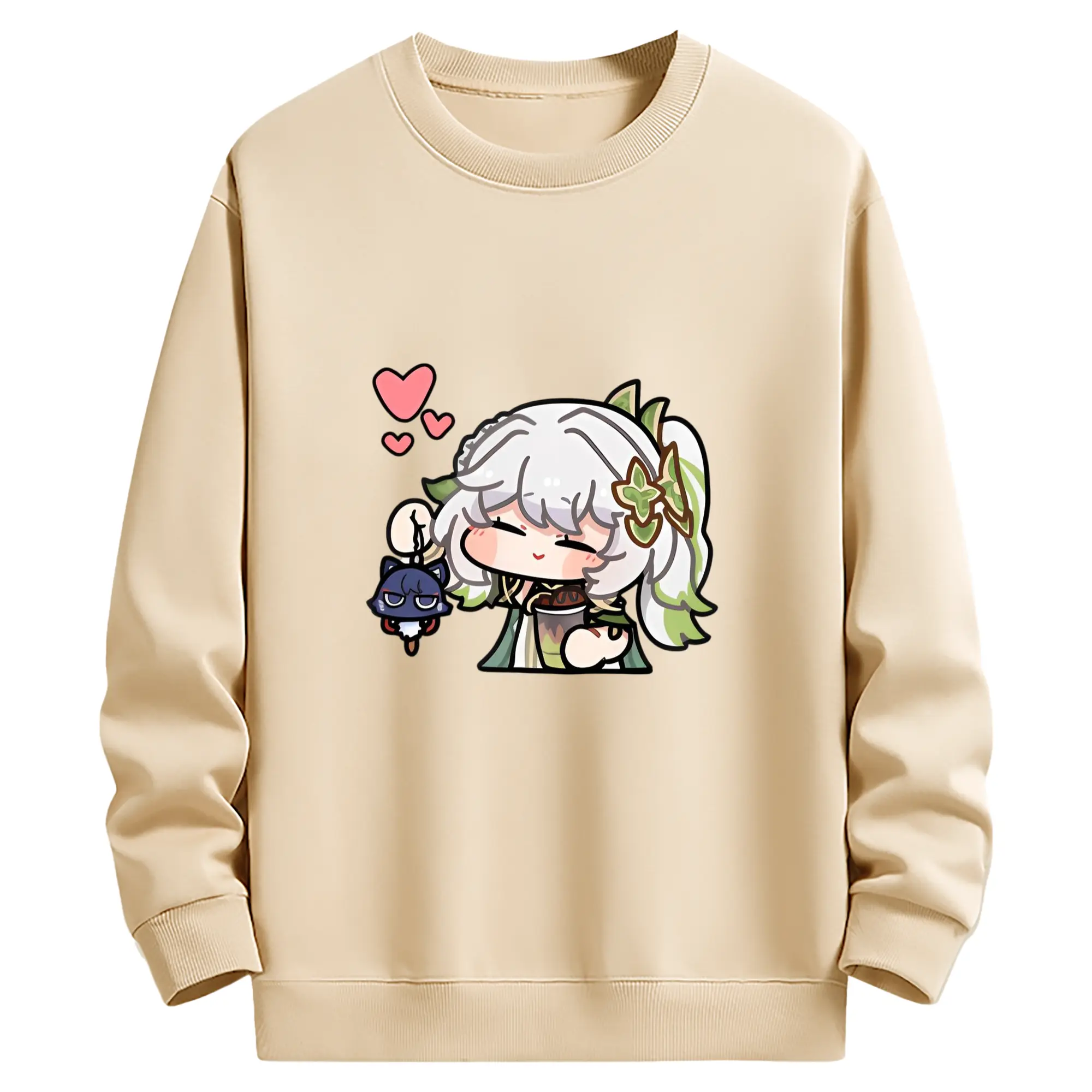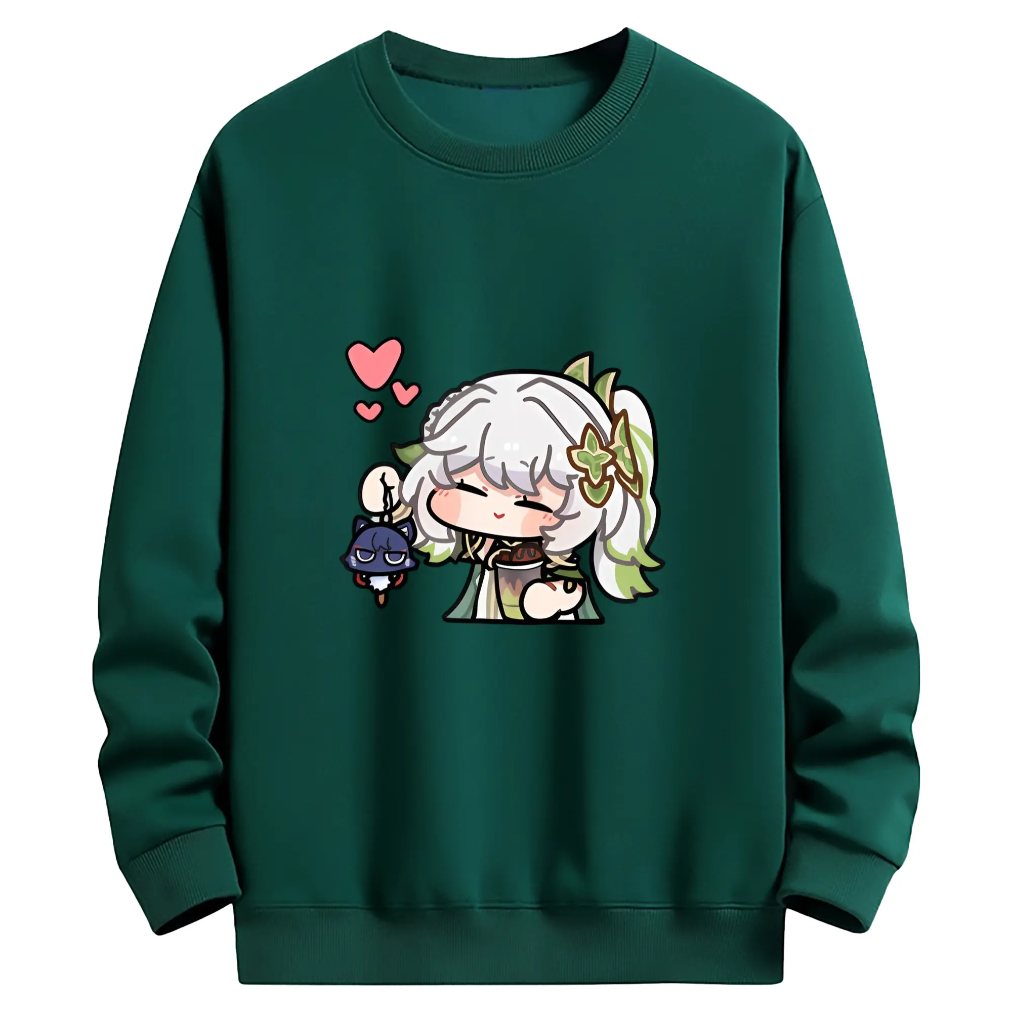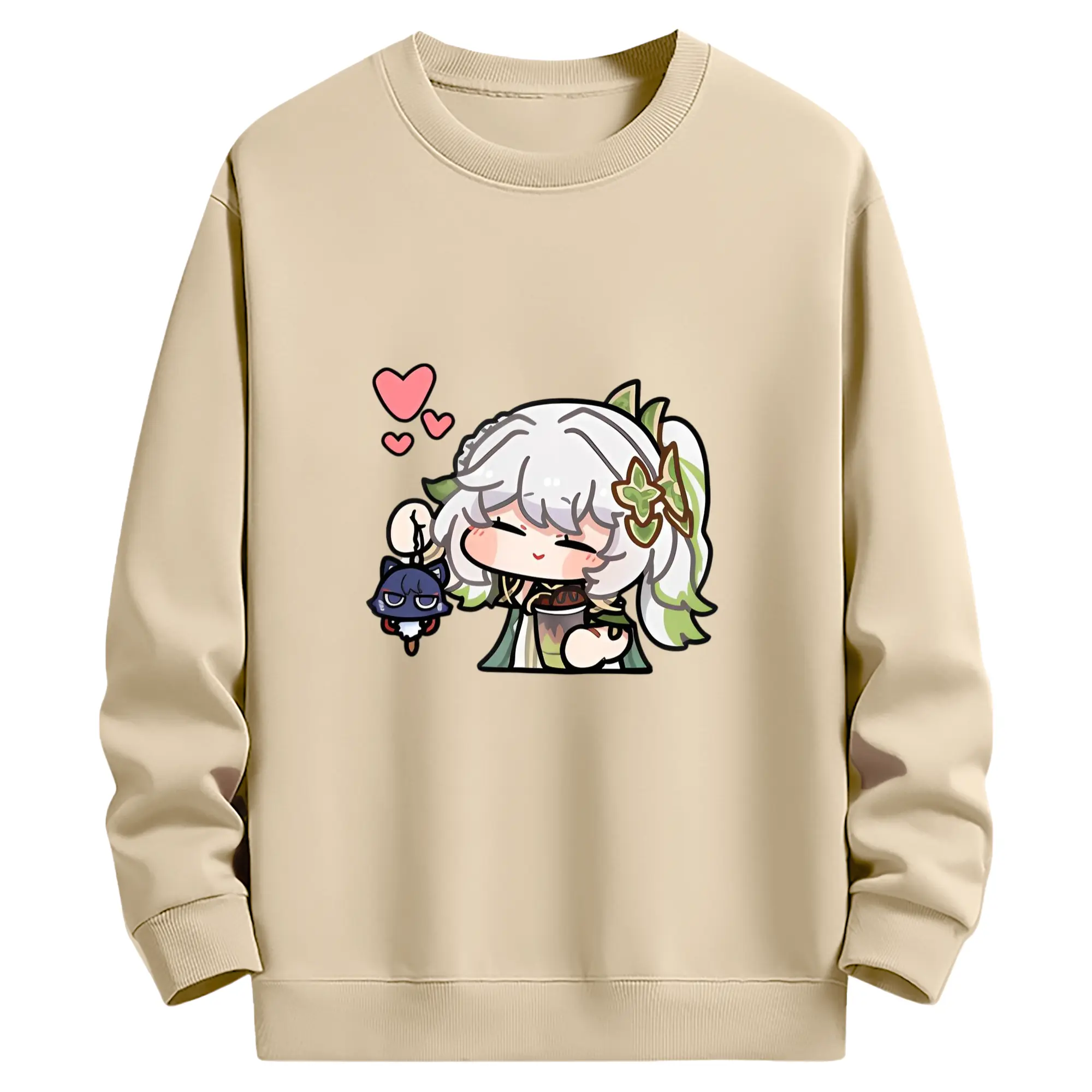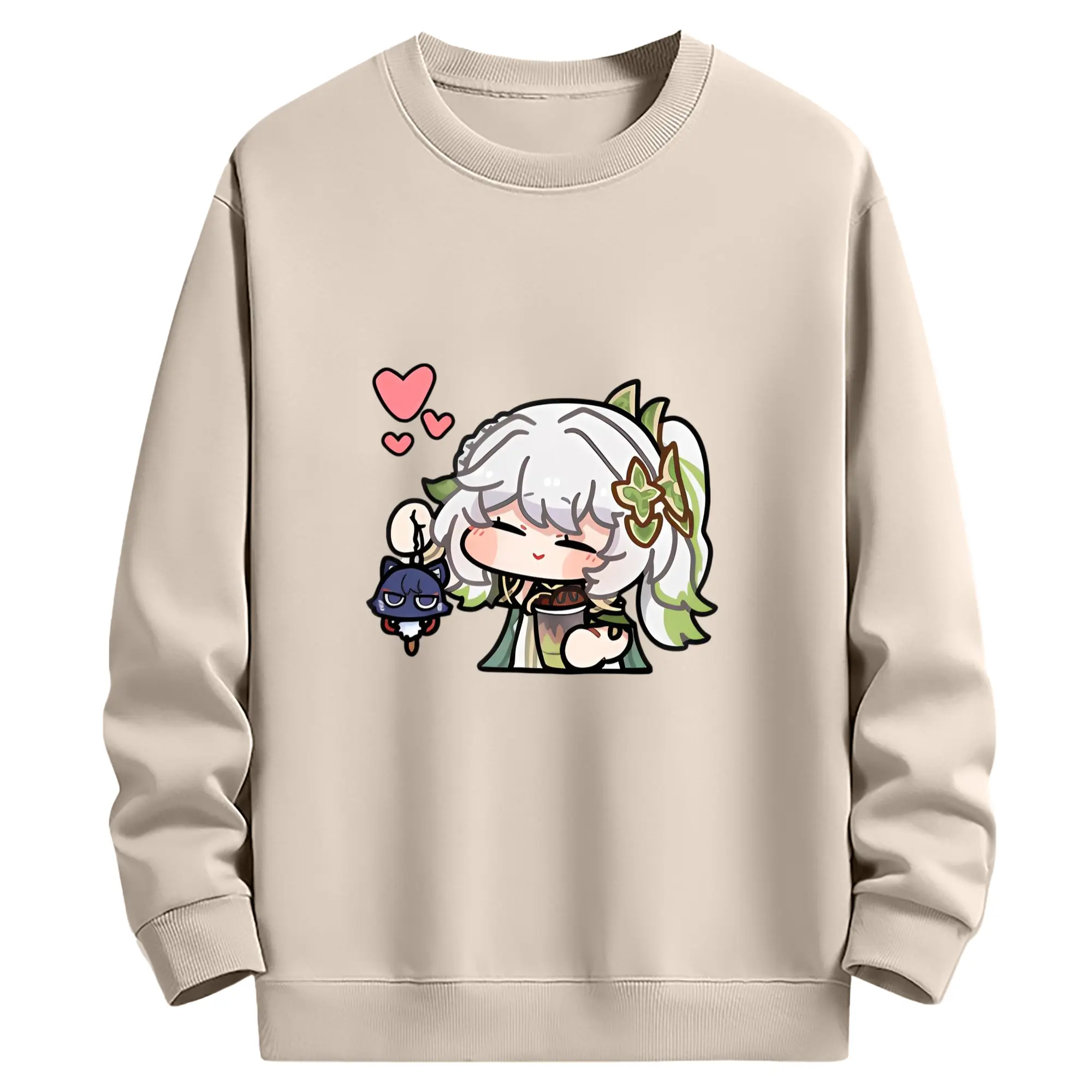 Genshin スメール草神そうしん ナヒーダ - 高品質 クルーネック スウェット ・ コットン59% ポリエステル41% ・ ユニセックス 長袖 トレーナー ・ カジュアル デイリー スポーツ 散歩用