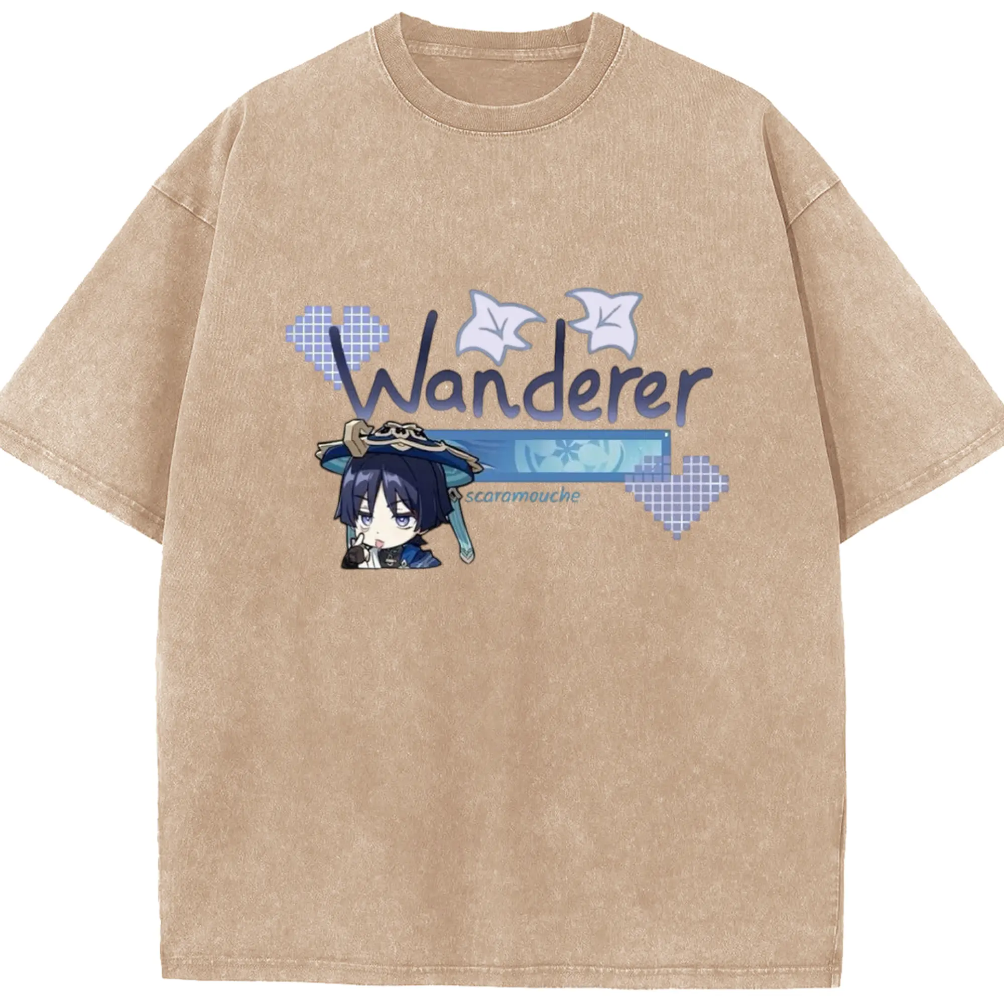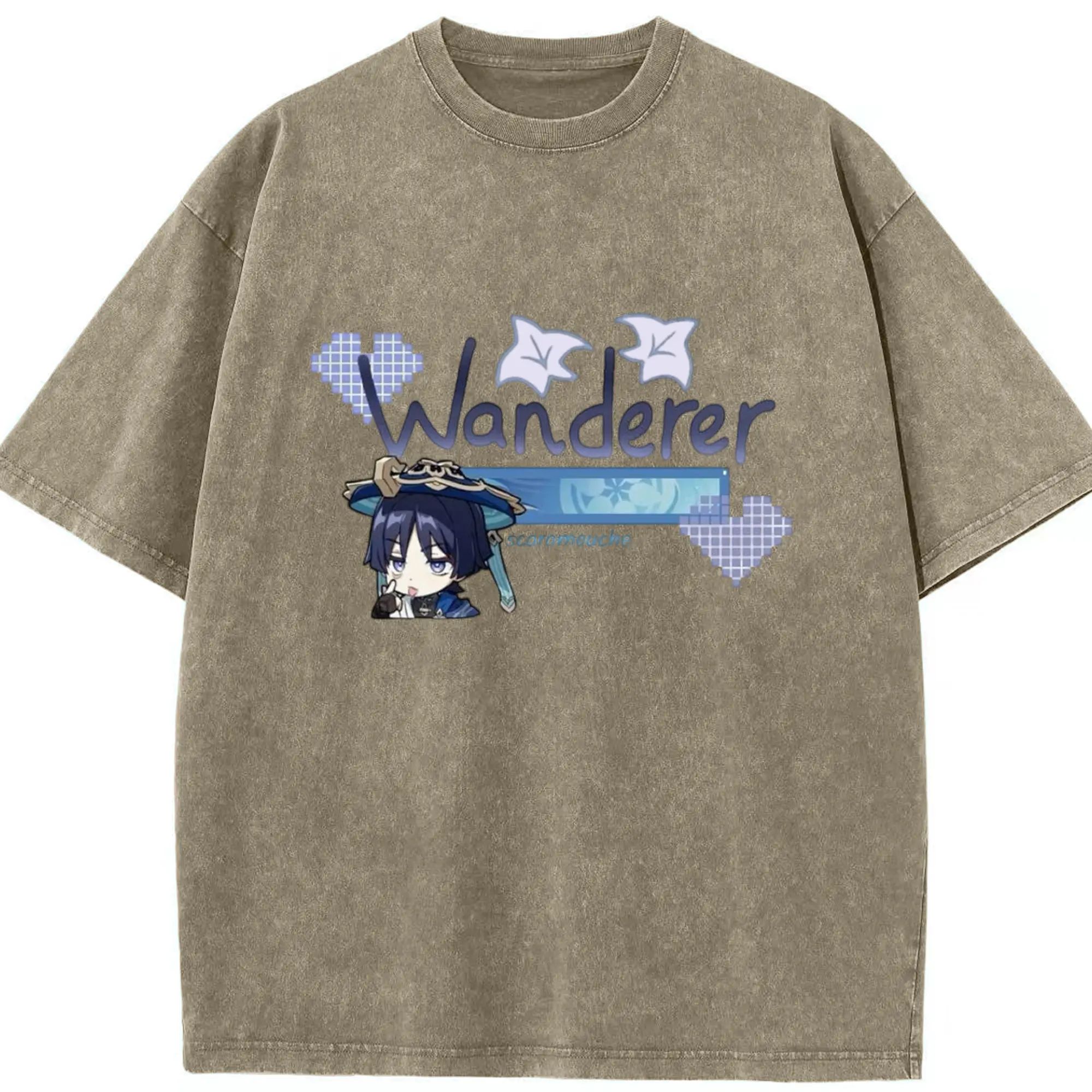 Genshin スメール ざんひょう - 綿100% ヴィンテージ風 半袖Tシャツ ・ フロントプリント ・ 柔らか肌触り ・ 通気性 快適 ・ スポーツ カジュアル 外出用