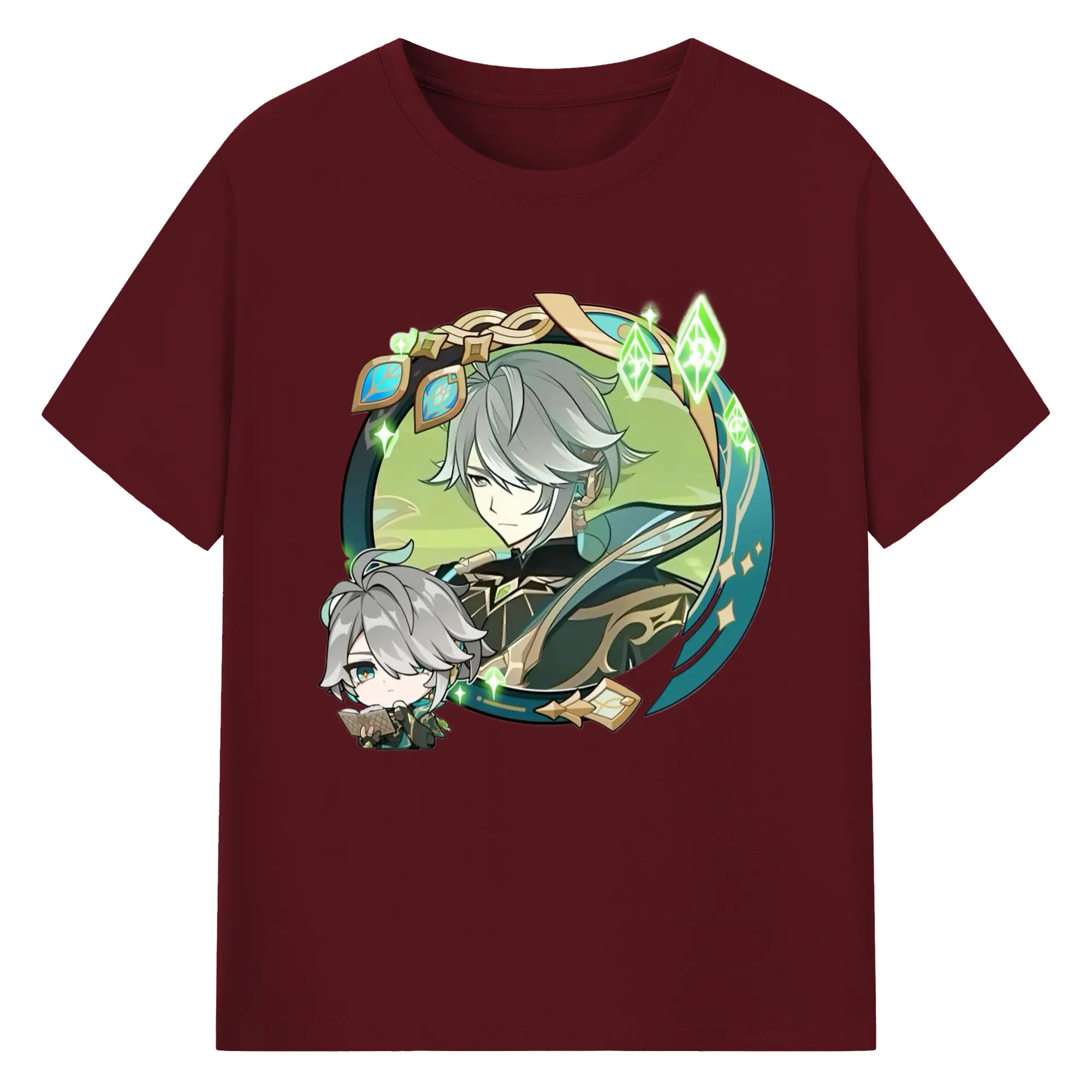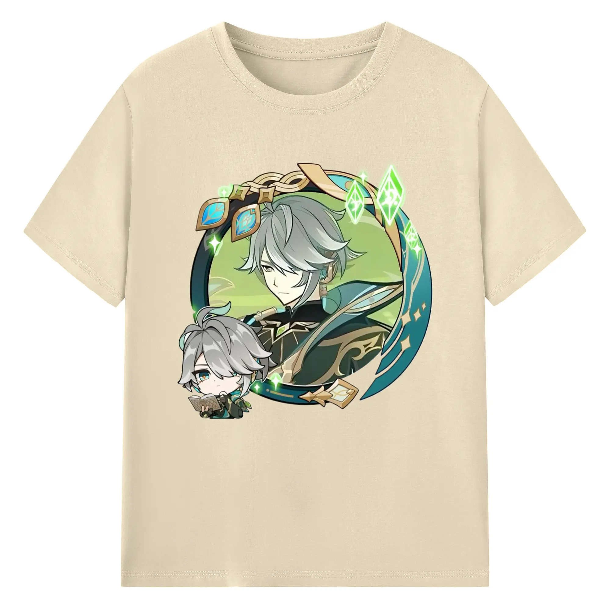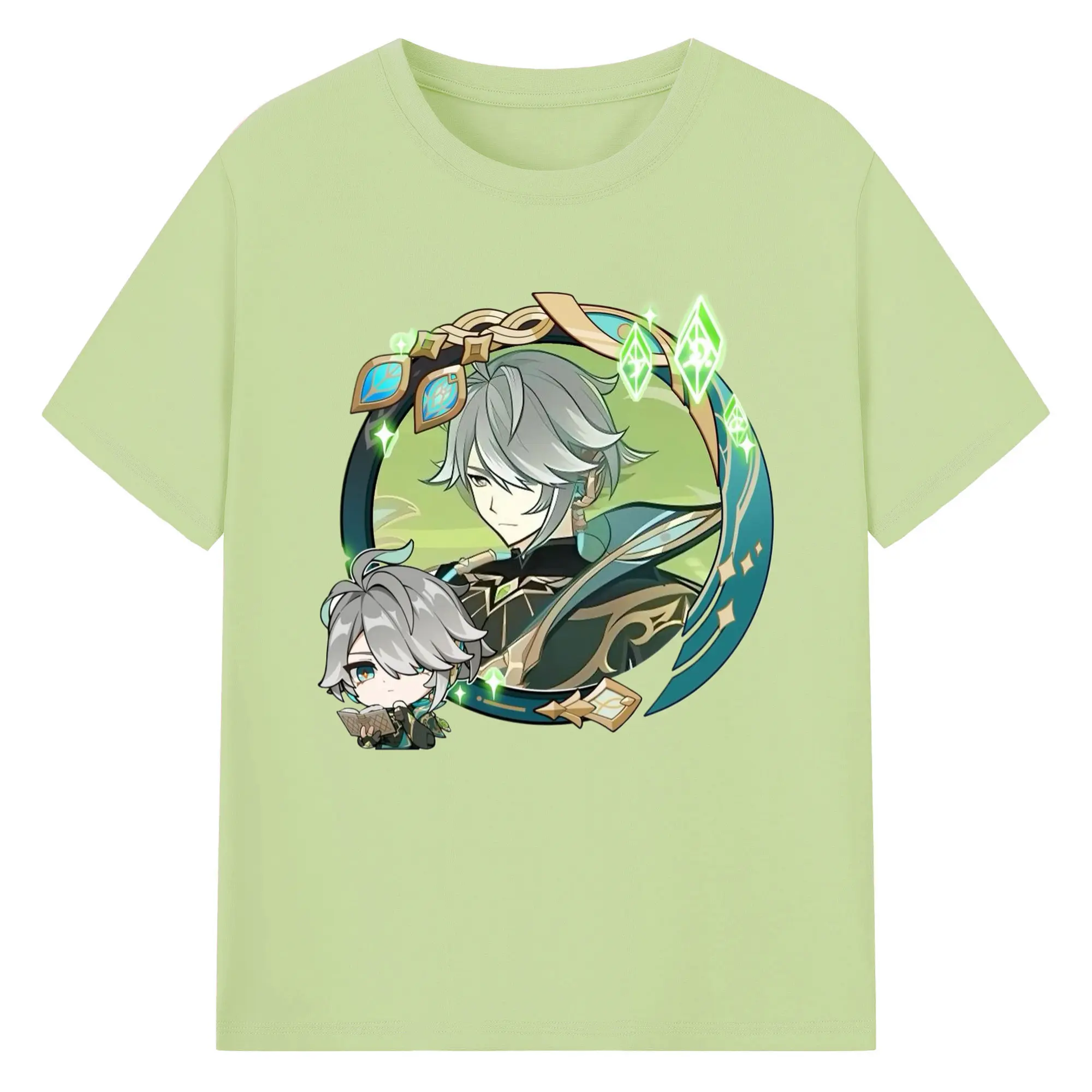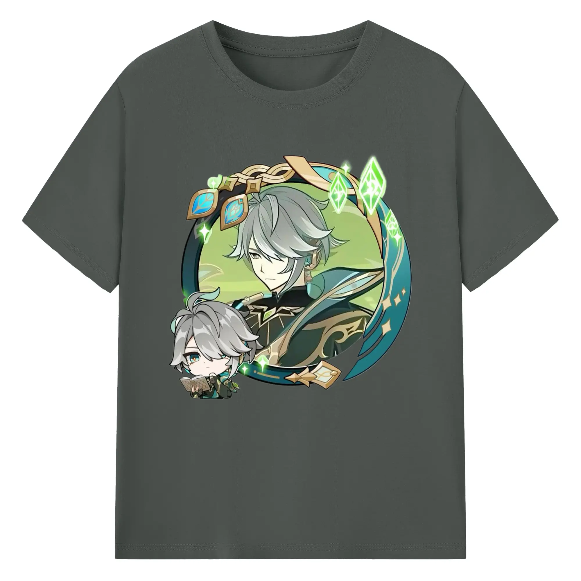 Genshin スメール アルハイゼン - 綿100% 半袖Tシャツ ・ フロントプリント ・ 快適 通気性 ・ 日常使い 散歩 スポーツ用