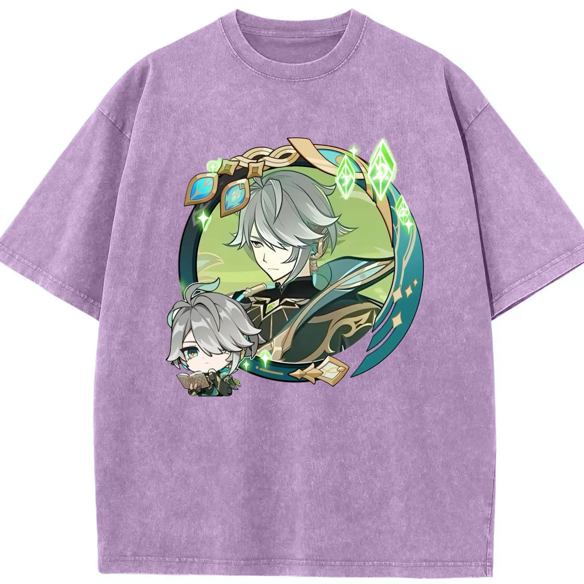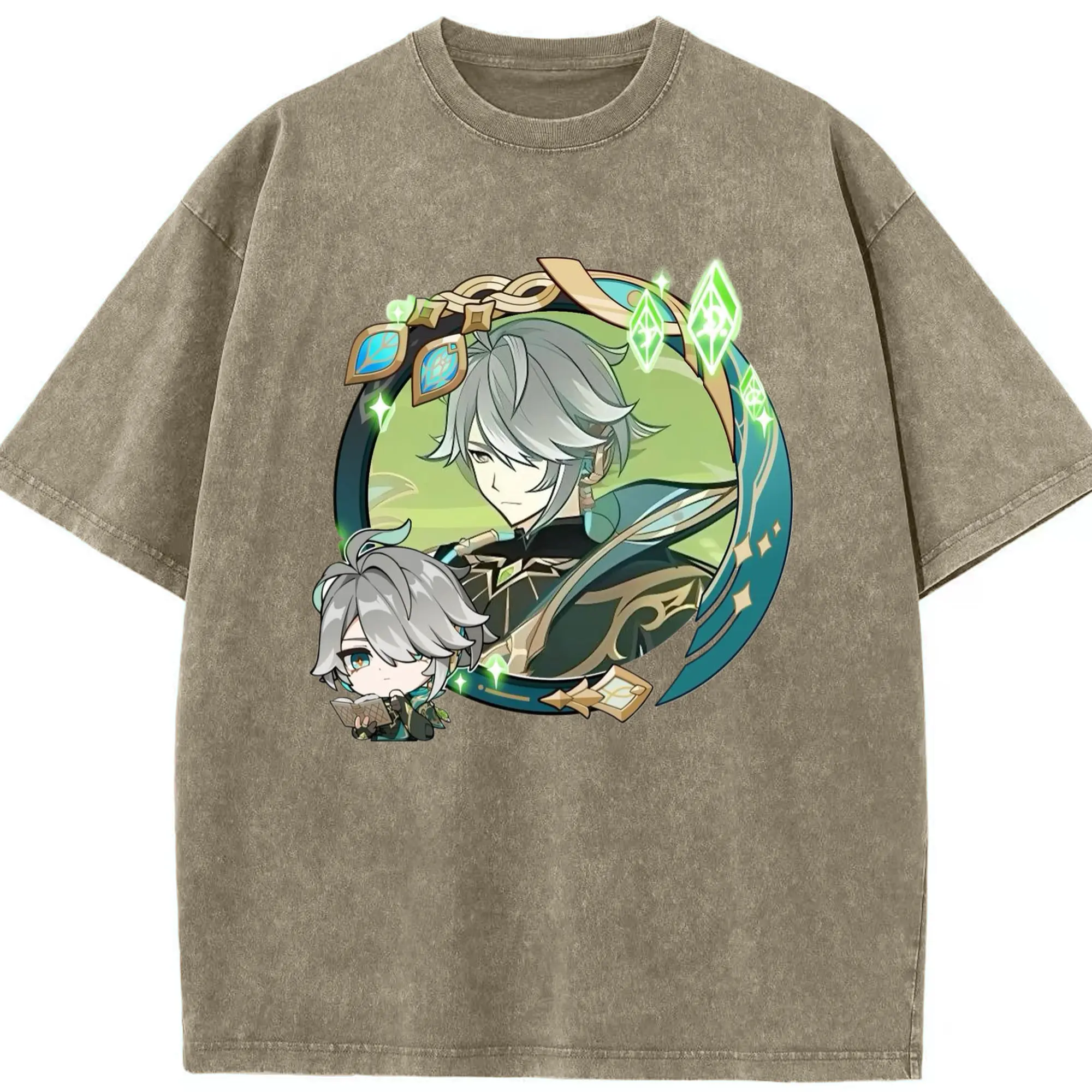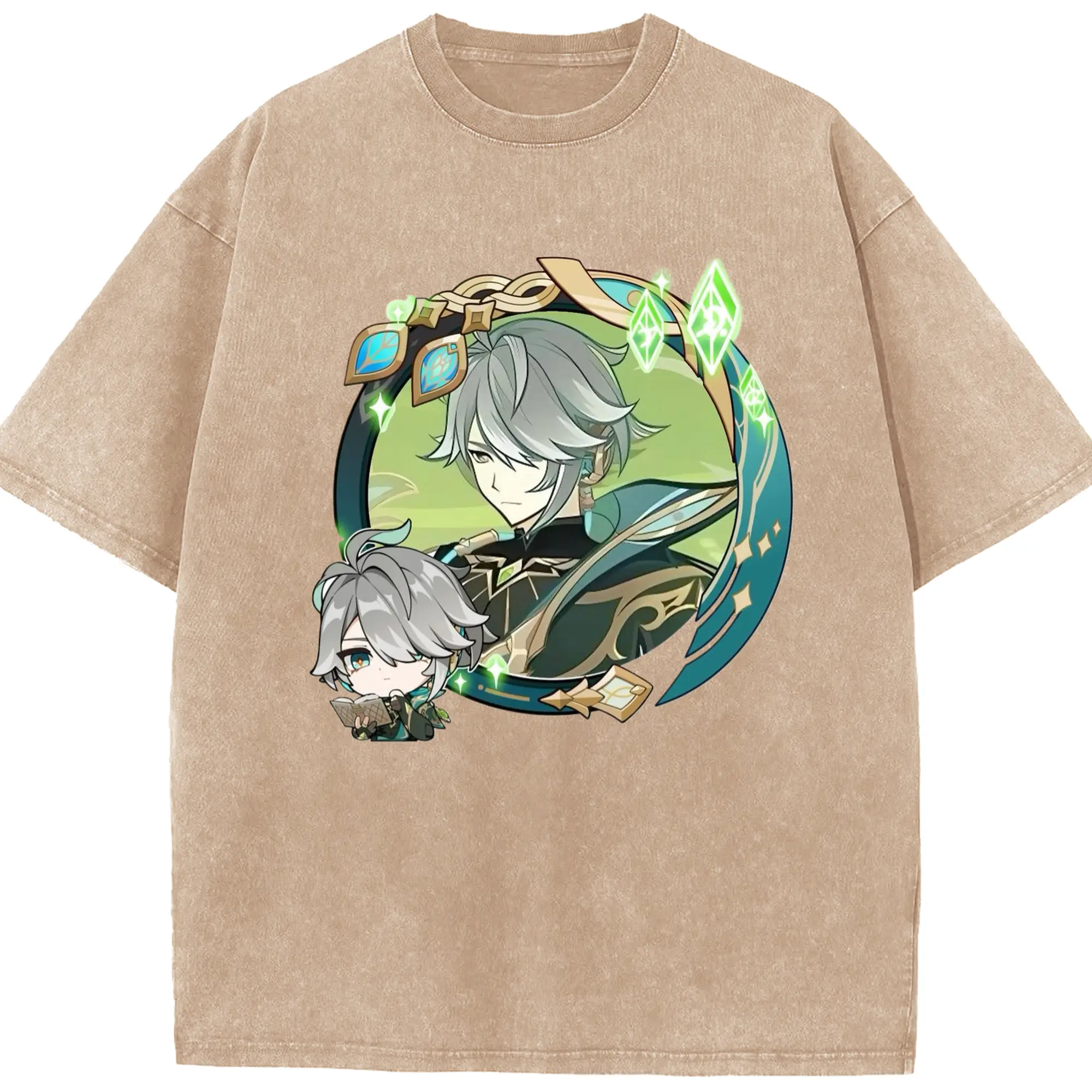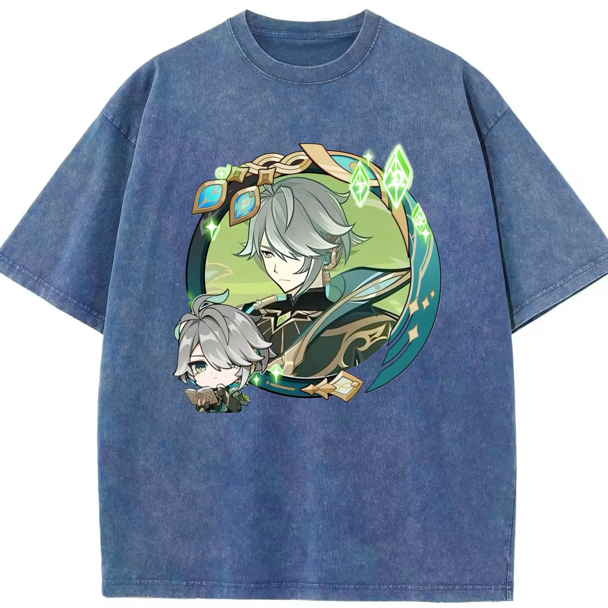Genshin スメール アルハイゼン - 綿100% ヴィンテージ風 半袖Tシャツ ・ フロントプリント ・ 柔らか肌触り ・ 通気性 快適 ・ スポーツ カジュアル 外出用