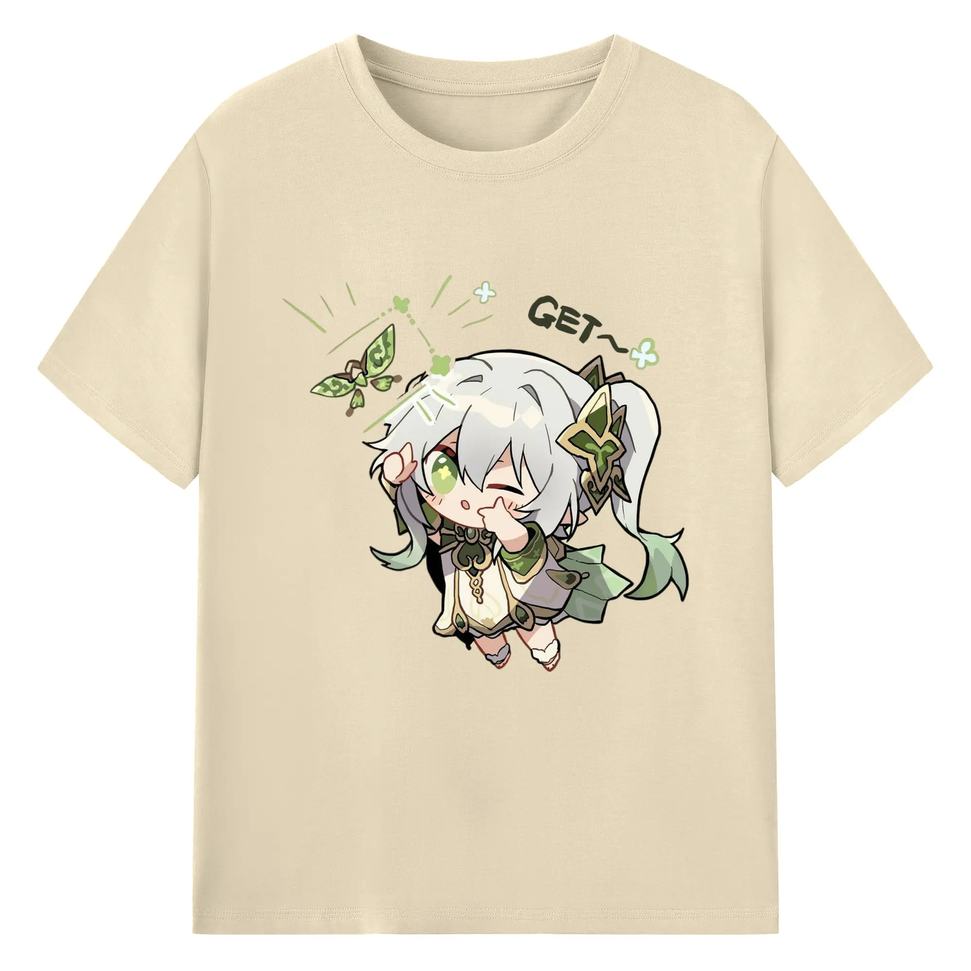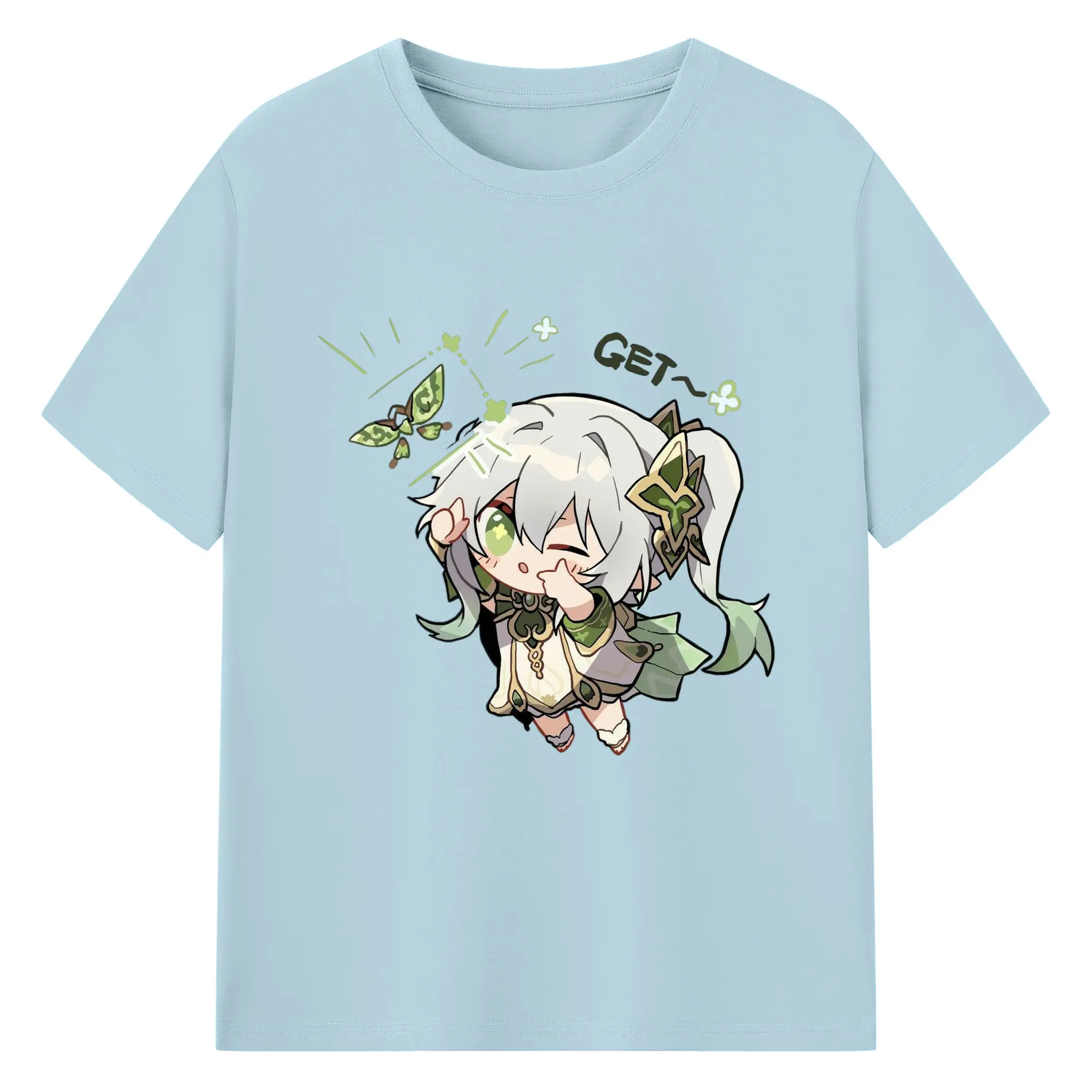 Genshin スメール 草神そうしん ナヒーダ - 綿100% 半袖Tシャツ ・ フロントプリント ・ 快適 通気性 ・ 日常使い 散歩 スポーツ用