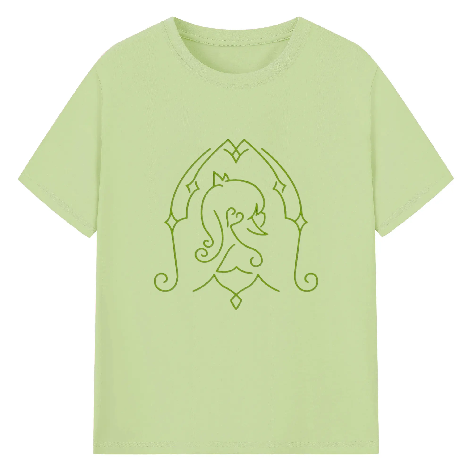 Genshin スメール 草神そうしん ナヒーダ - 綿100% 半袖Tシャツ ・ フロントプリント ・ 快適 通気性 ・ 日常使い 散歩 スポーツ用
