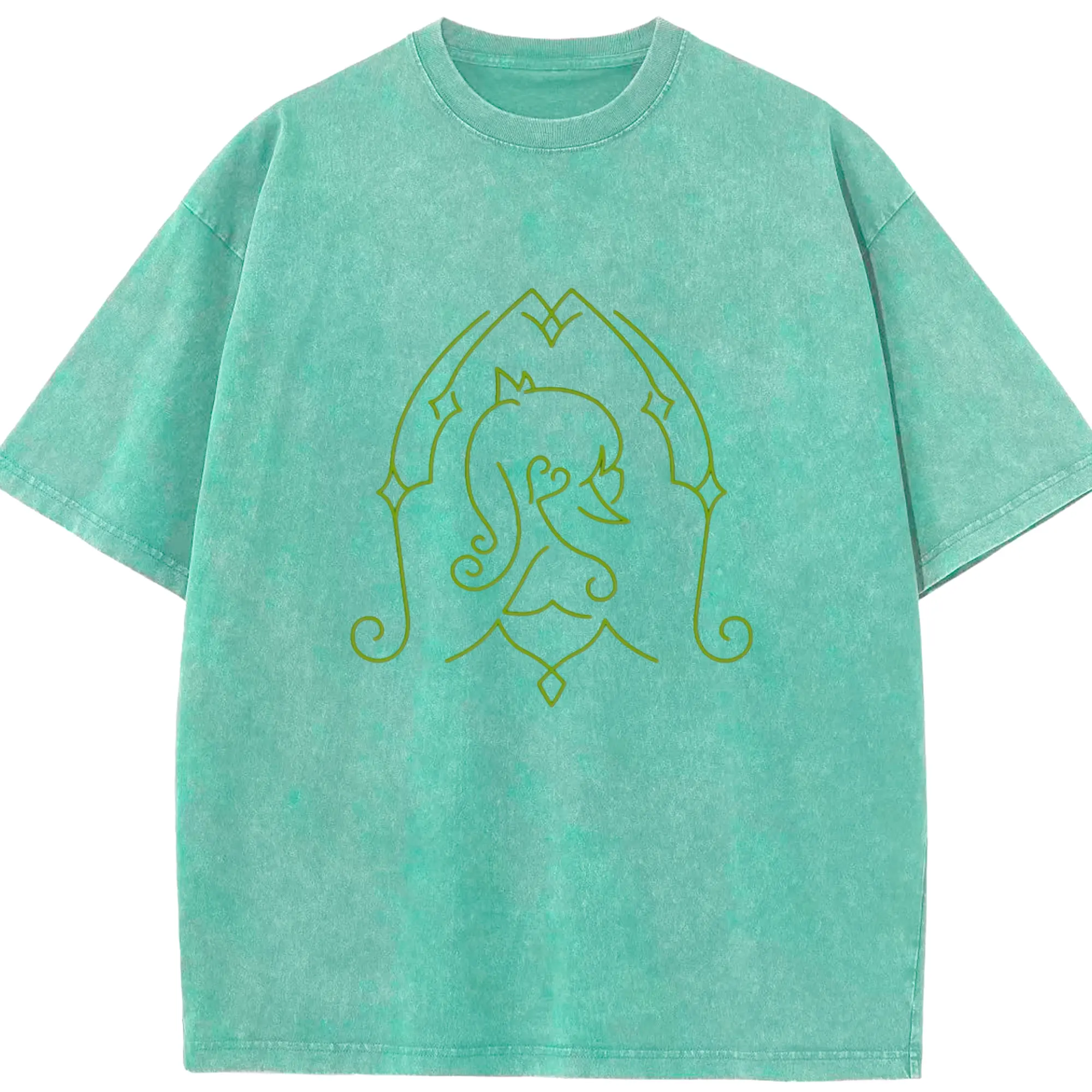 Genshin スメール 草神そうしん ナヒーダ - 綿100% ヴィンテージ風 半袖Tシャツ ・ フロントプリント ・ 柔らか肌触り ・ 通気性 快適 ・ スポーツ カジュアル 外出用