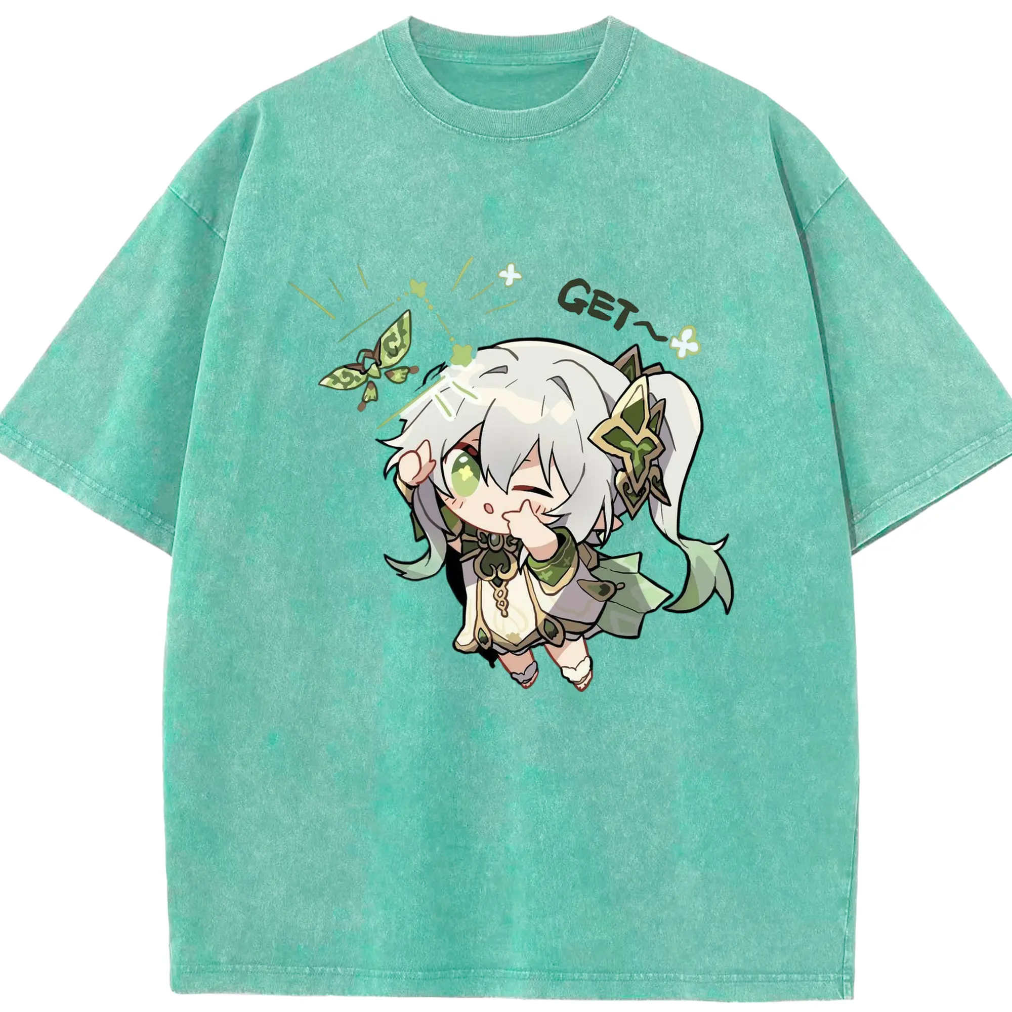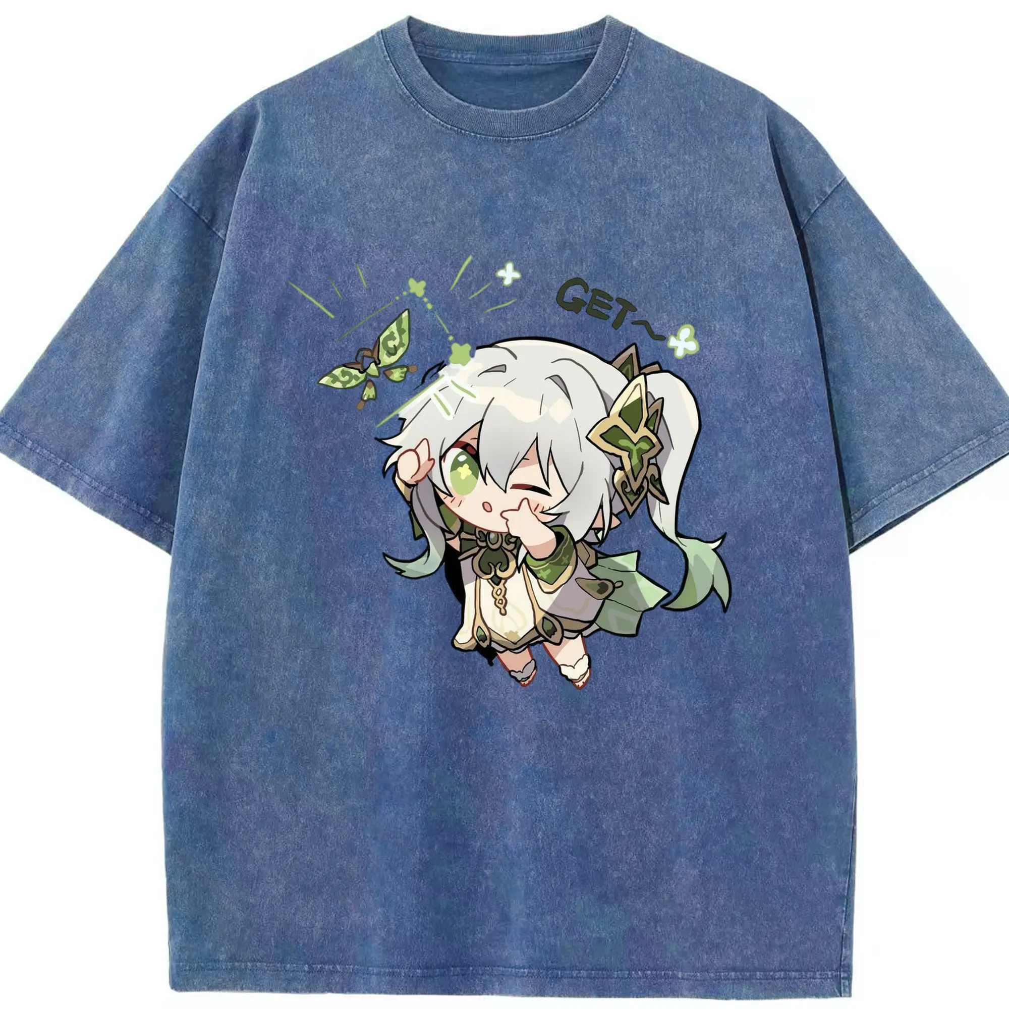 Genshin スメール 草神そうしん ナヒーダ - 綿100% ヴィンテージ風 半袖Tシャツ ・ フロントプリント ・ 柔らか肌触り ・ 通気性 快適 ・ スポーツ カジュアル 外出用