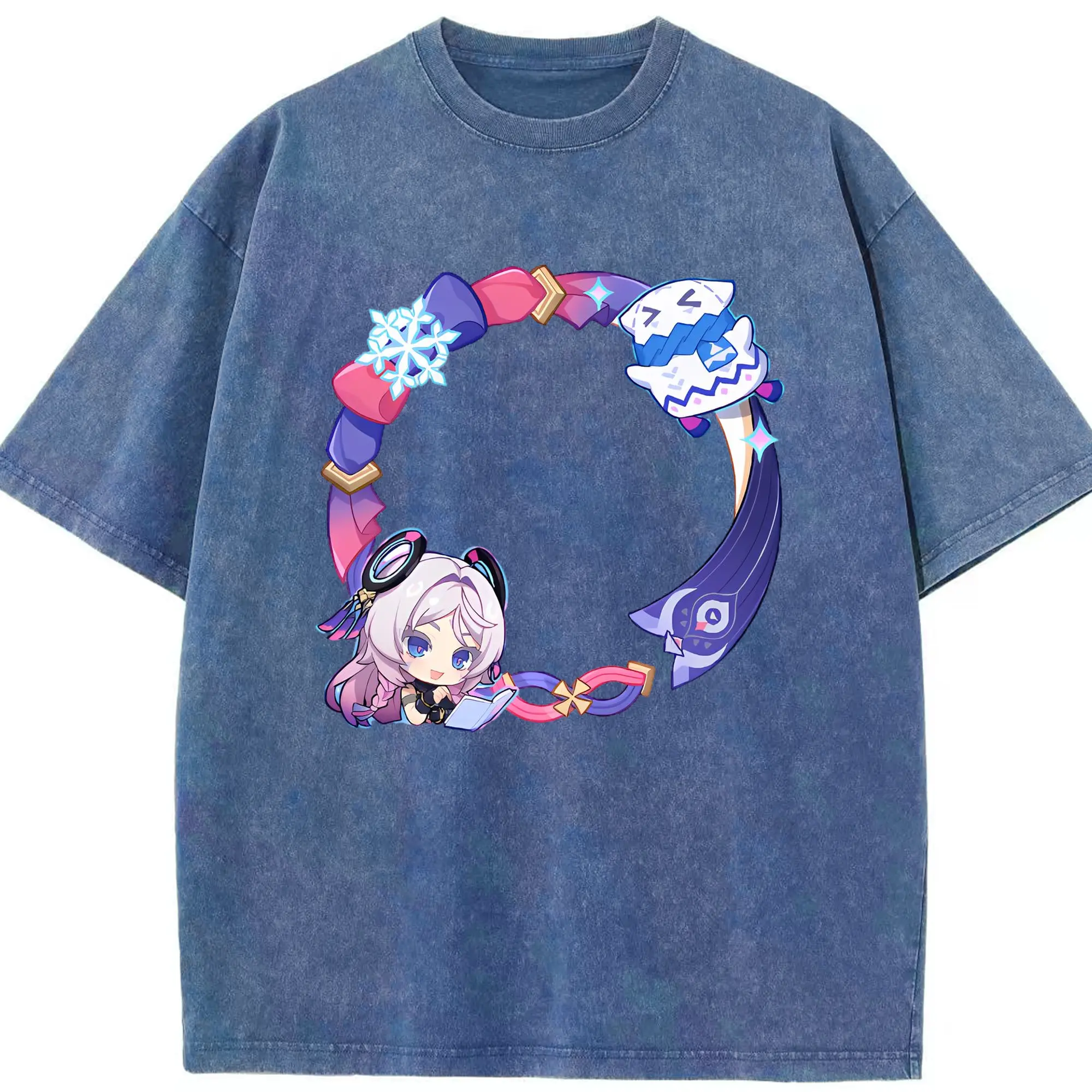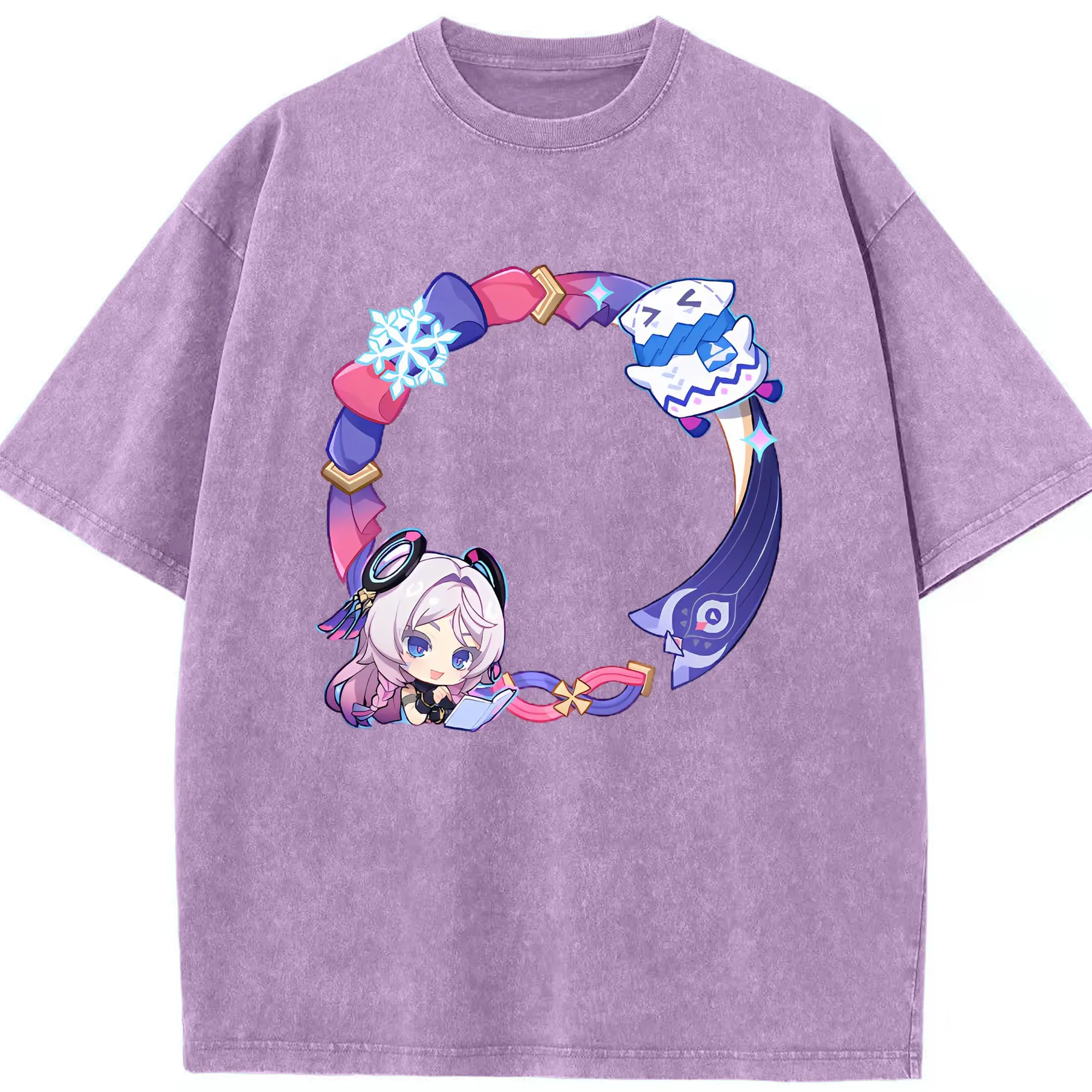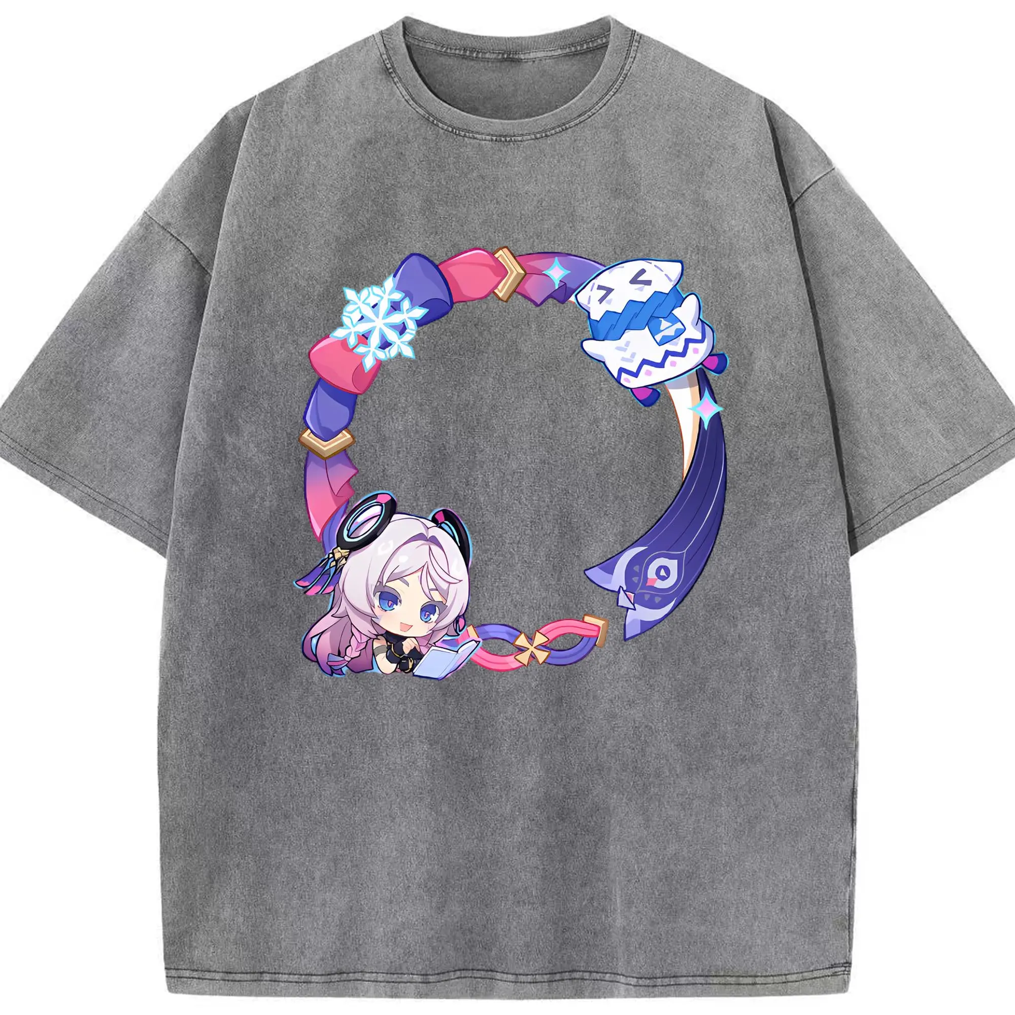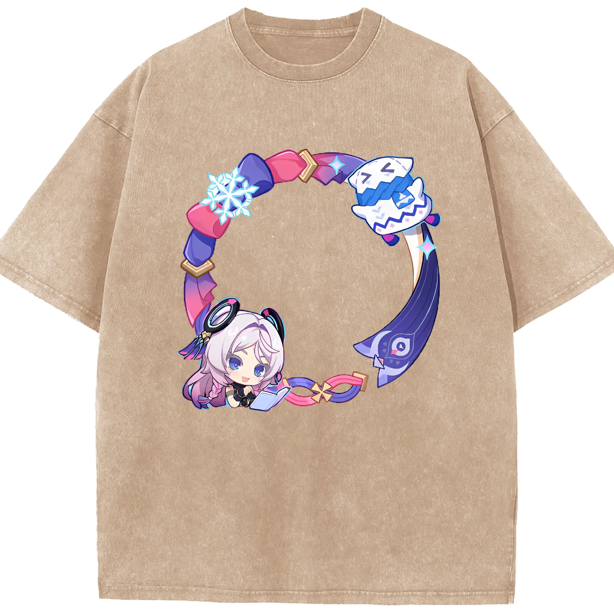 Genshin ナタ - 綿100% ヴィンテージ風 半袖Tシャツ ・ フロントプリント ・ 柔らか肌触り ・ 通気性 快適 ・ スポーツ カジュアル 外出用