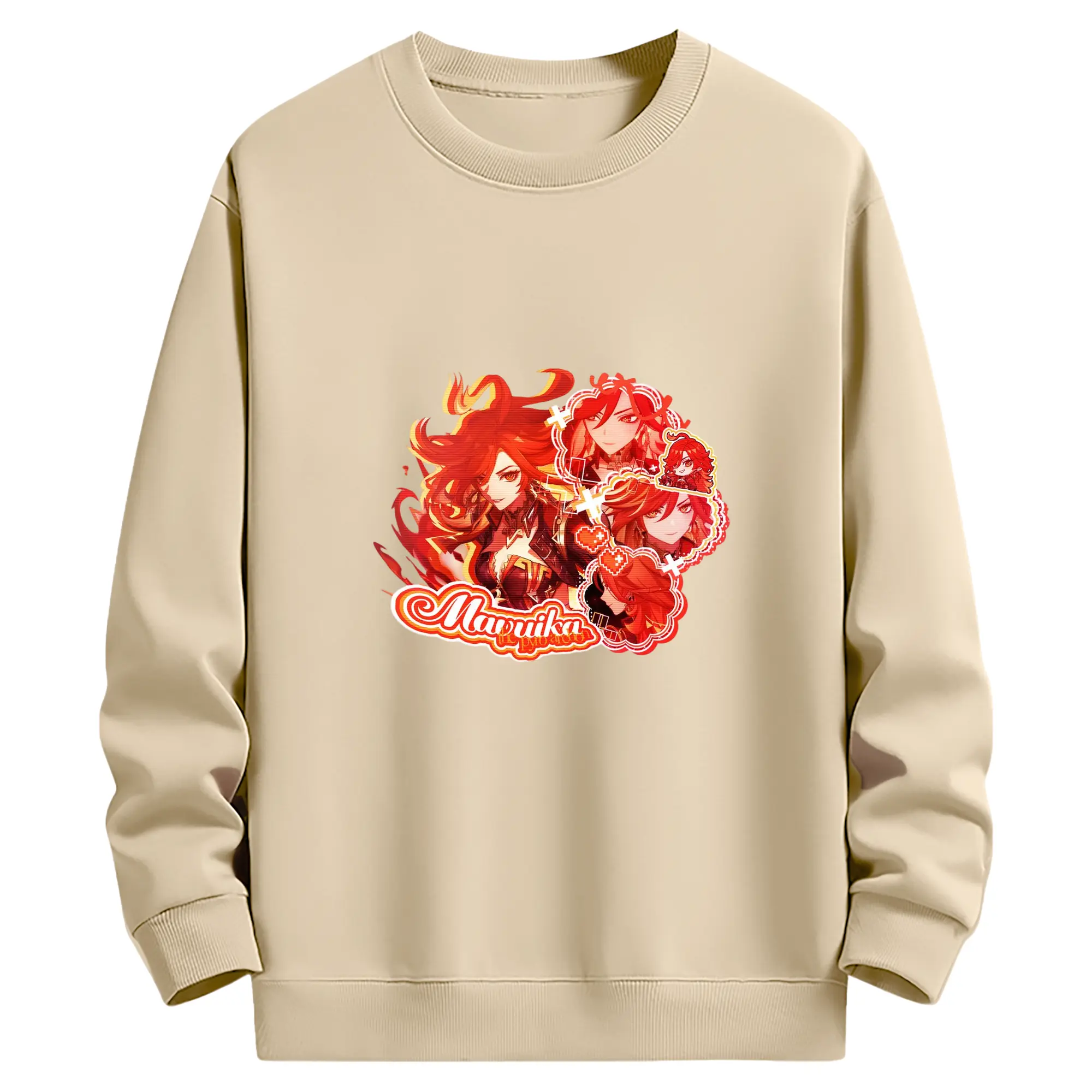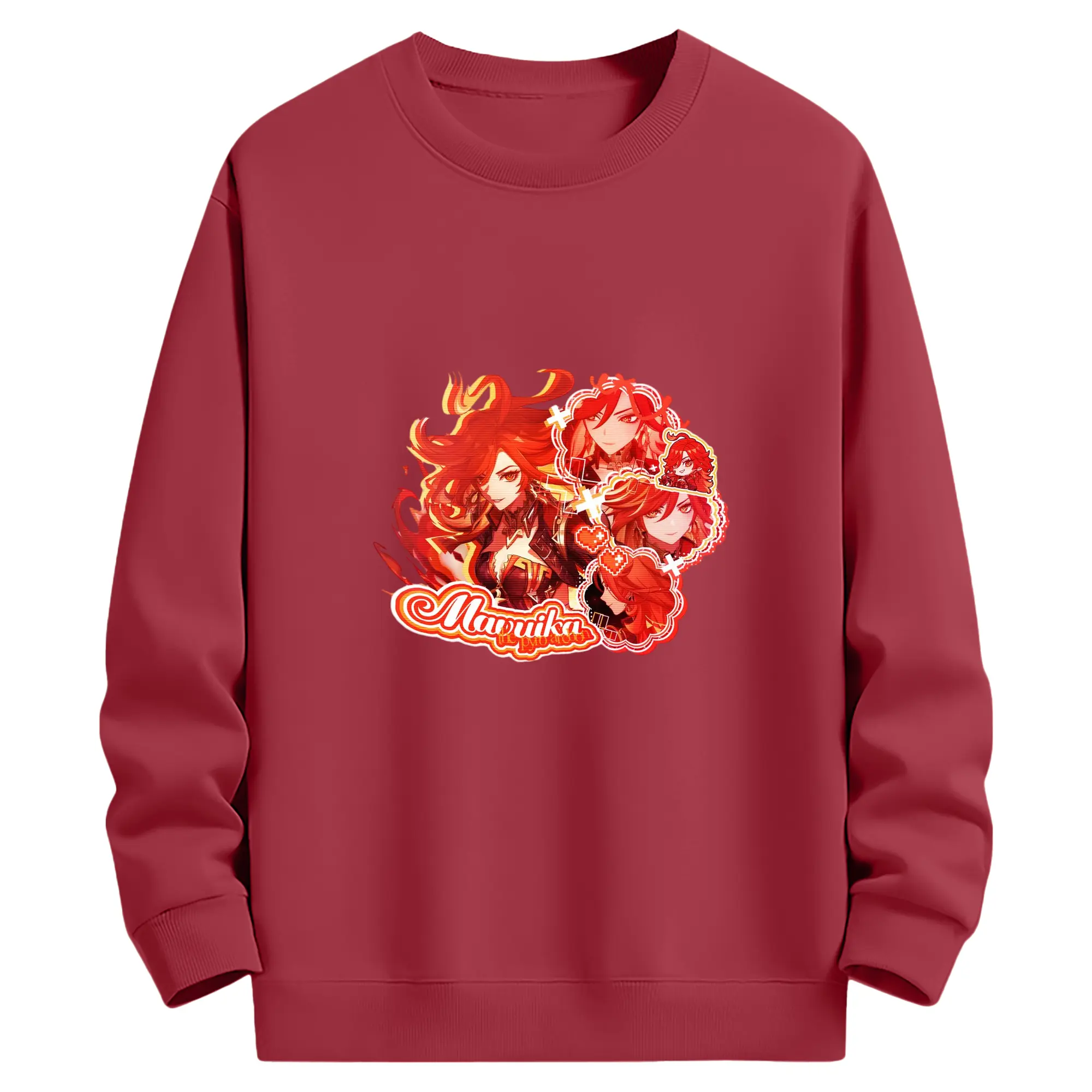 Genshin ナタ炎神えんしん マーヴィカ - 高品質 クルーネック スウェット ・ コットン59% ポリエステル41% ・ ユニセックス 長袖 トレーナー ・ カジュアル デイリー スポーツ 散歩用