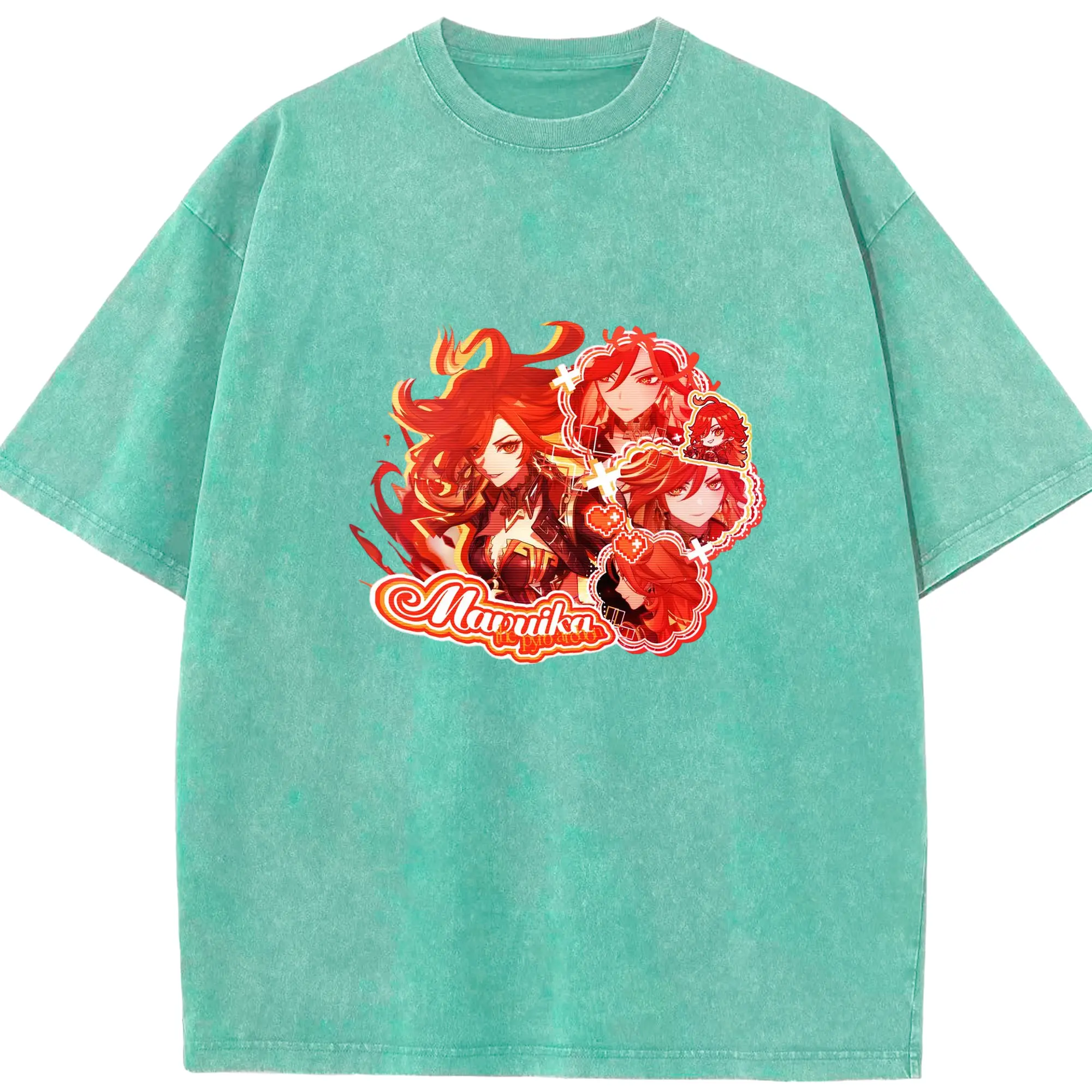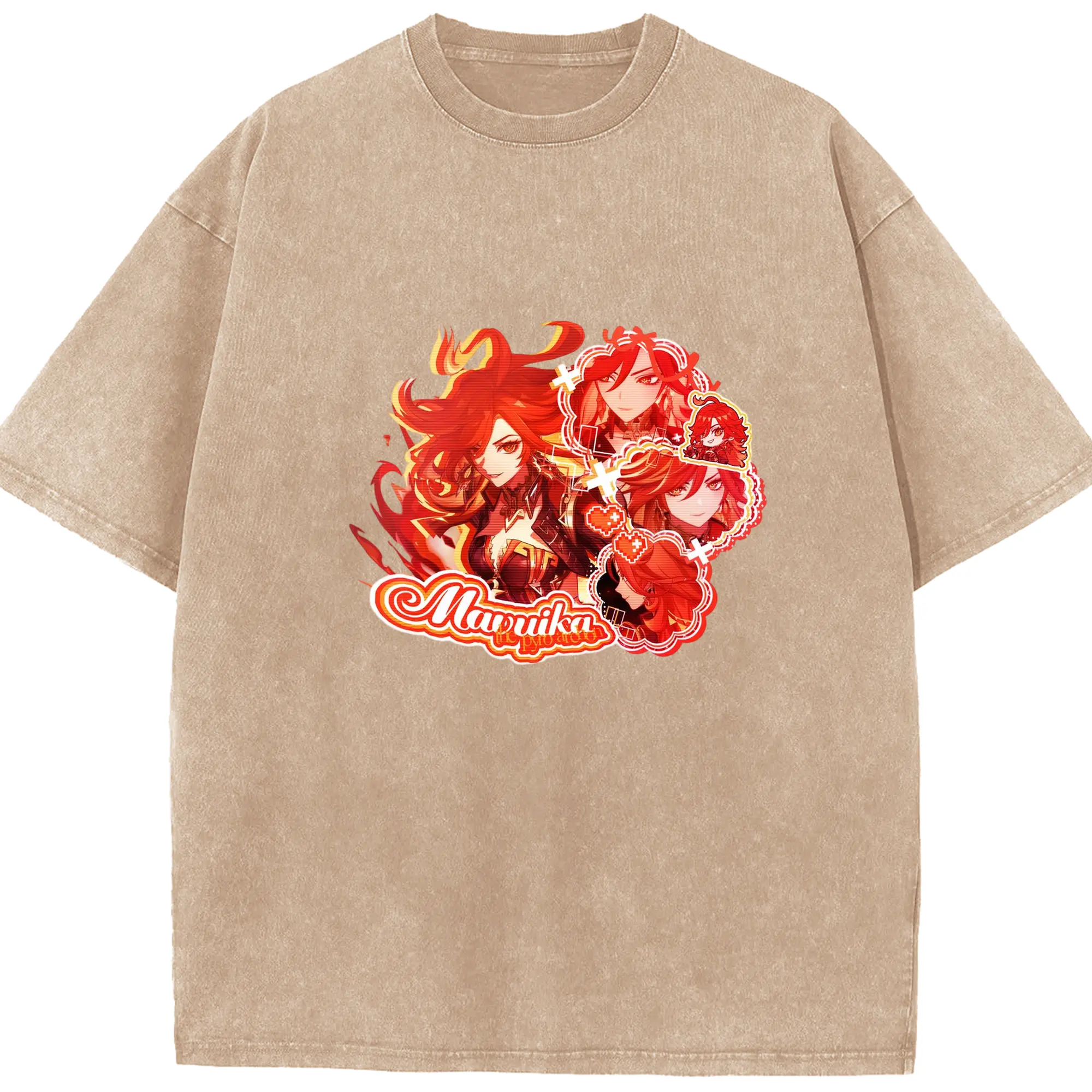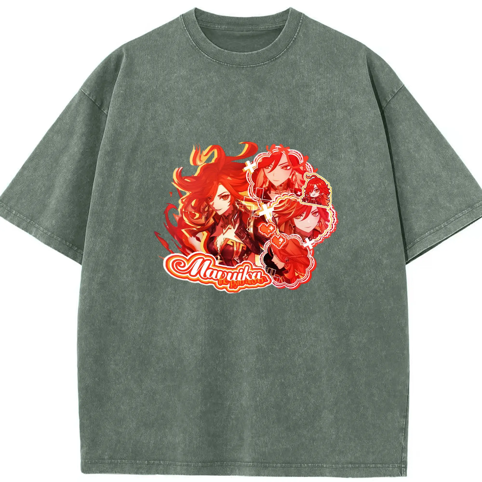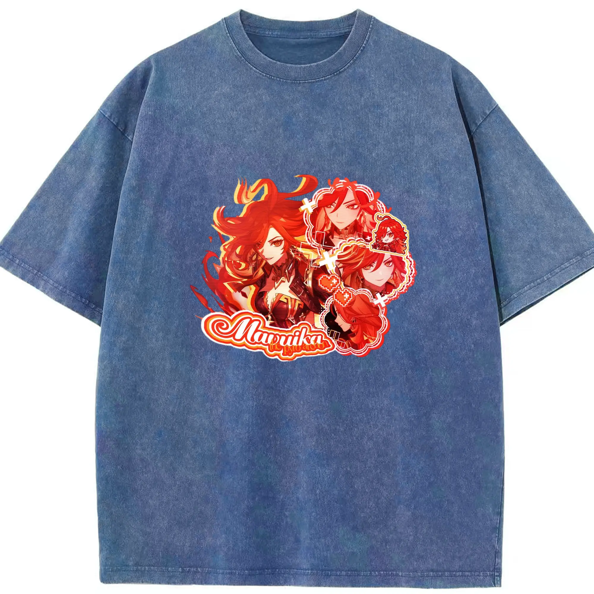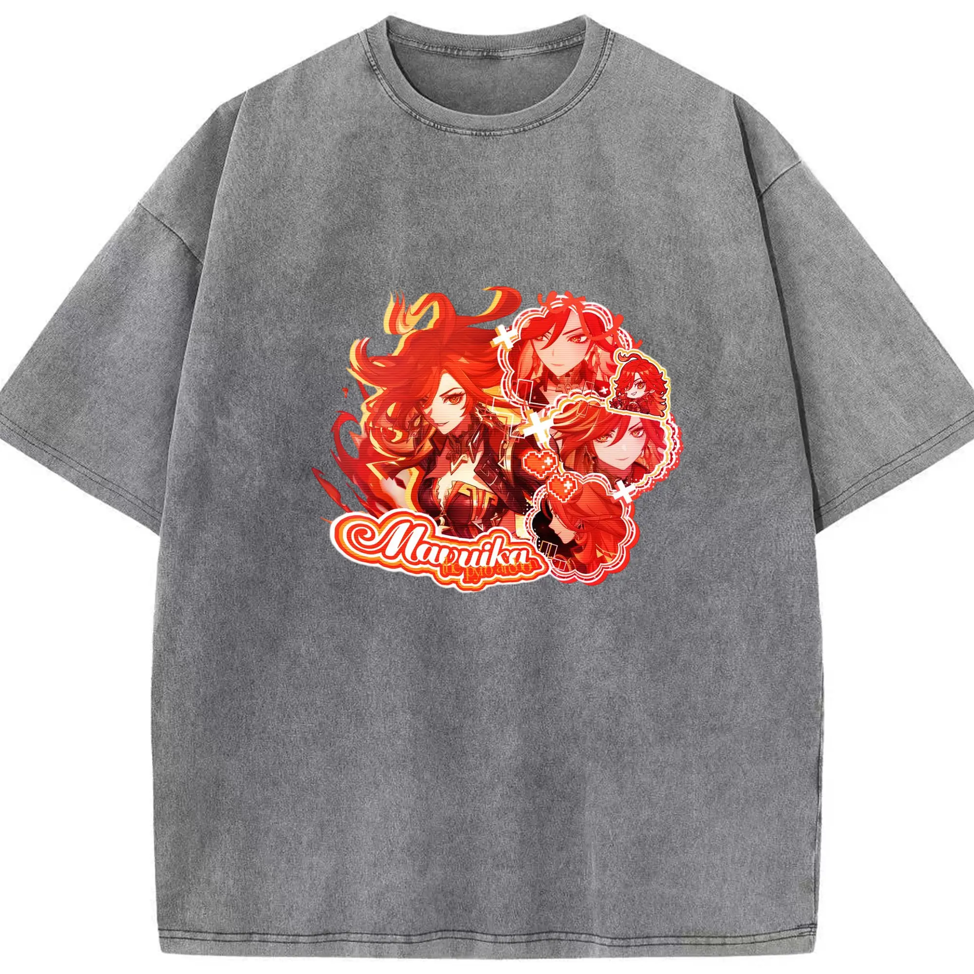 Genshin ナタ炎神えんしん マーヴィカ - 綿100% ヴィンテージ風 半袖Tシャツ ・ フロントプリント ・ 柔らか肌触り ・ 通気性 快適 ・ スポーツ カジュアル 外出用