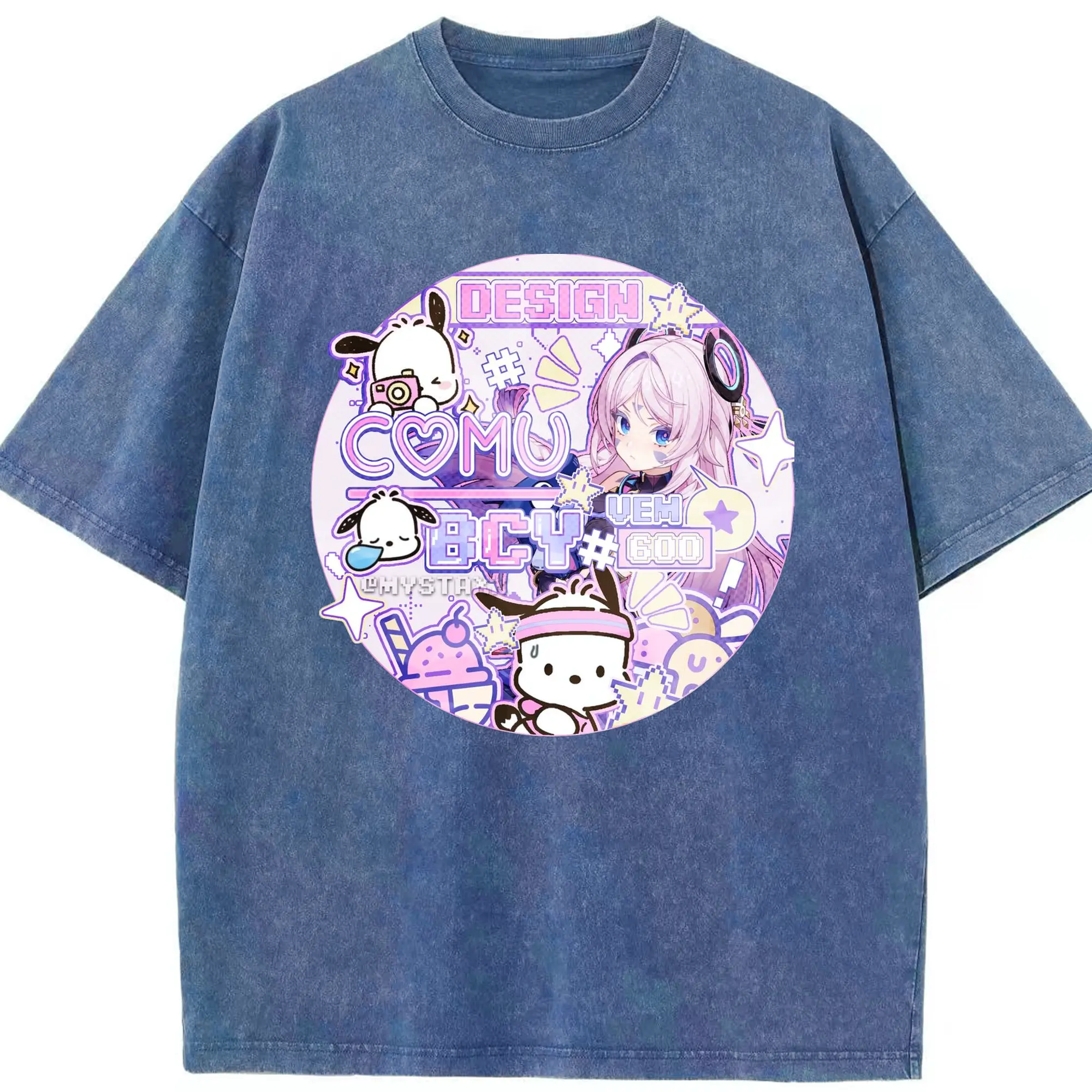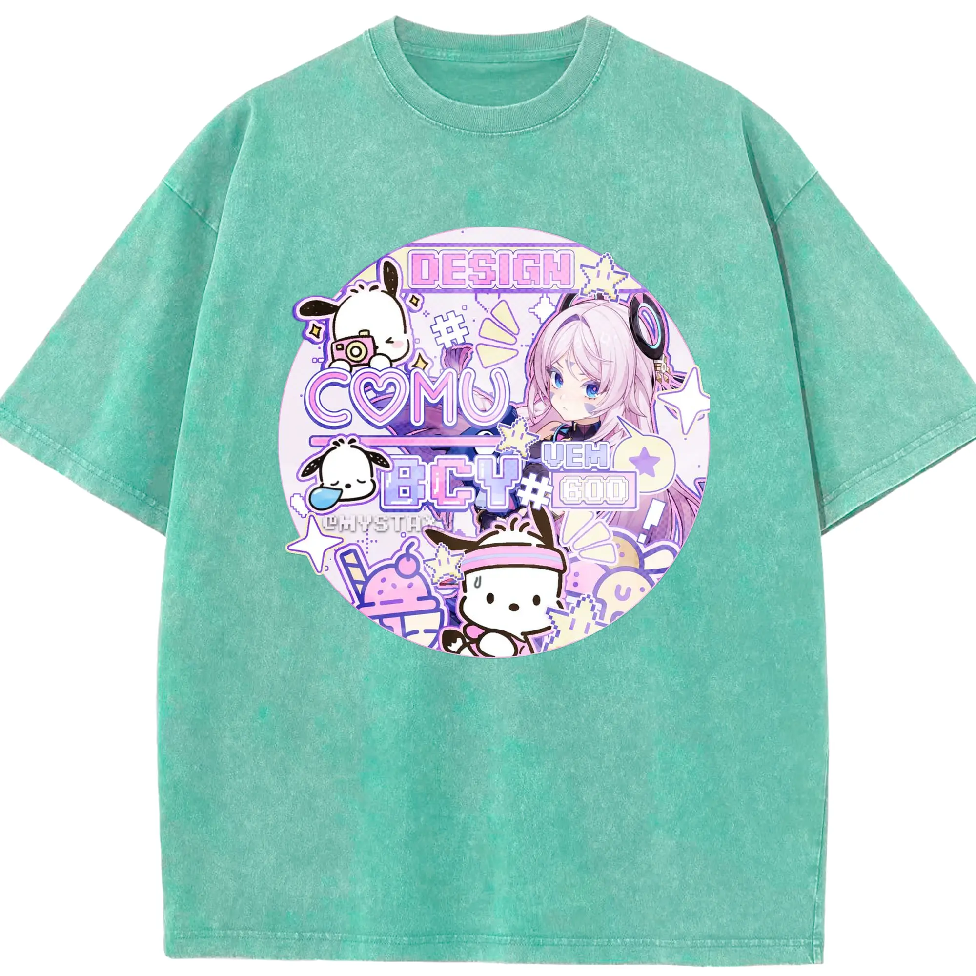 Genshin リーユエ フータオ - 綿100% ヴィンテージ風 半袖Tシャツ ・ フロントプリント ・ 柔らか肌触り ・ 通気性 快適 ・ スポーツ カジュアル 外出用