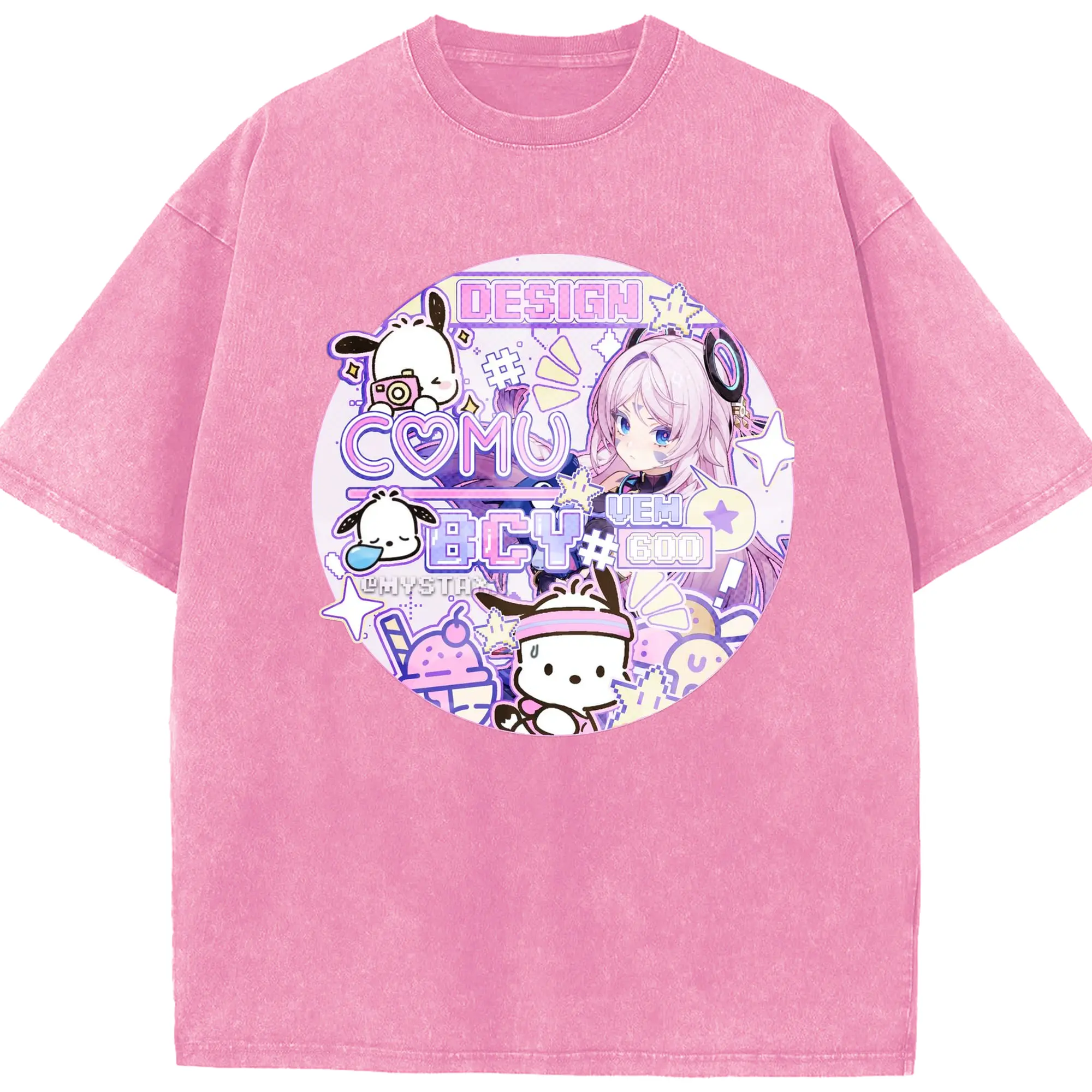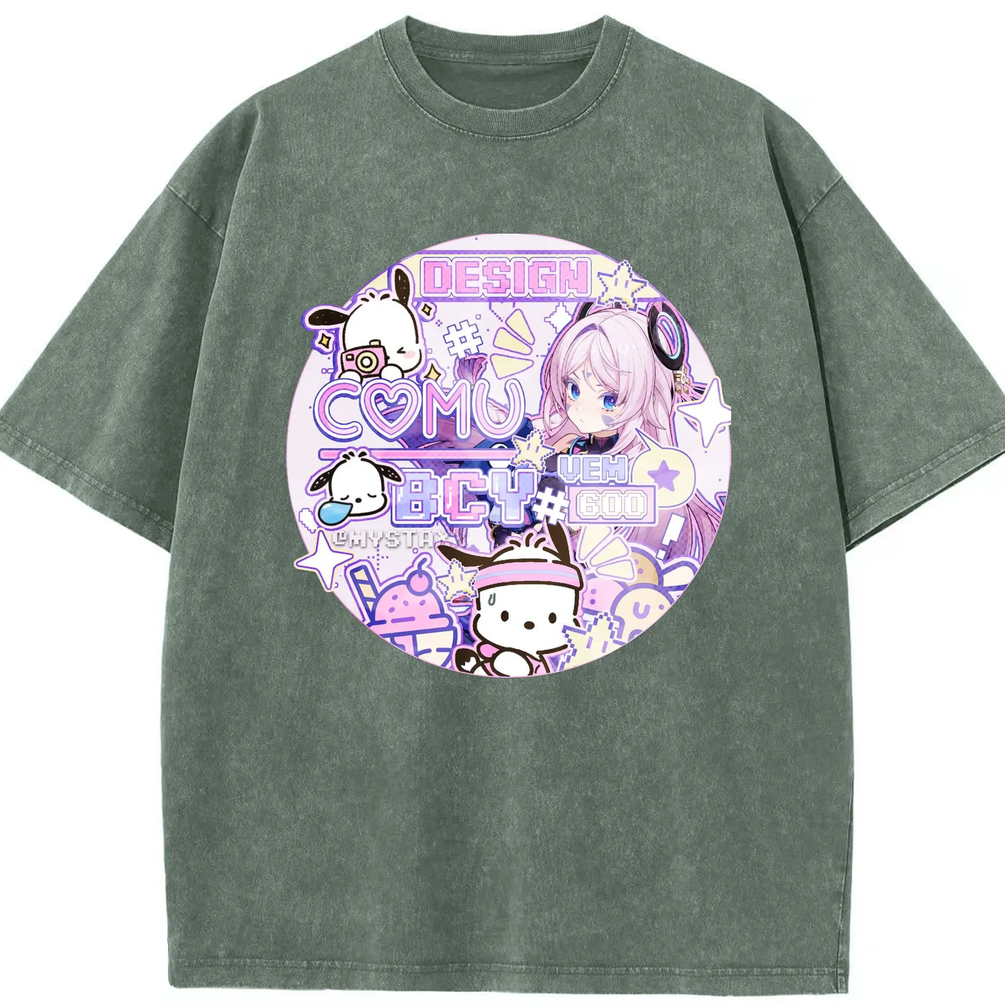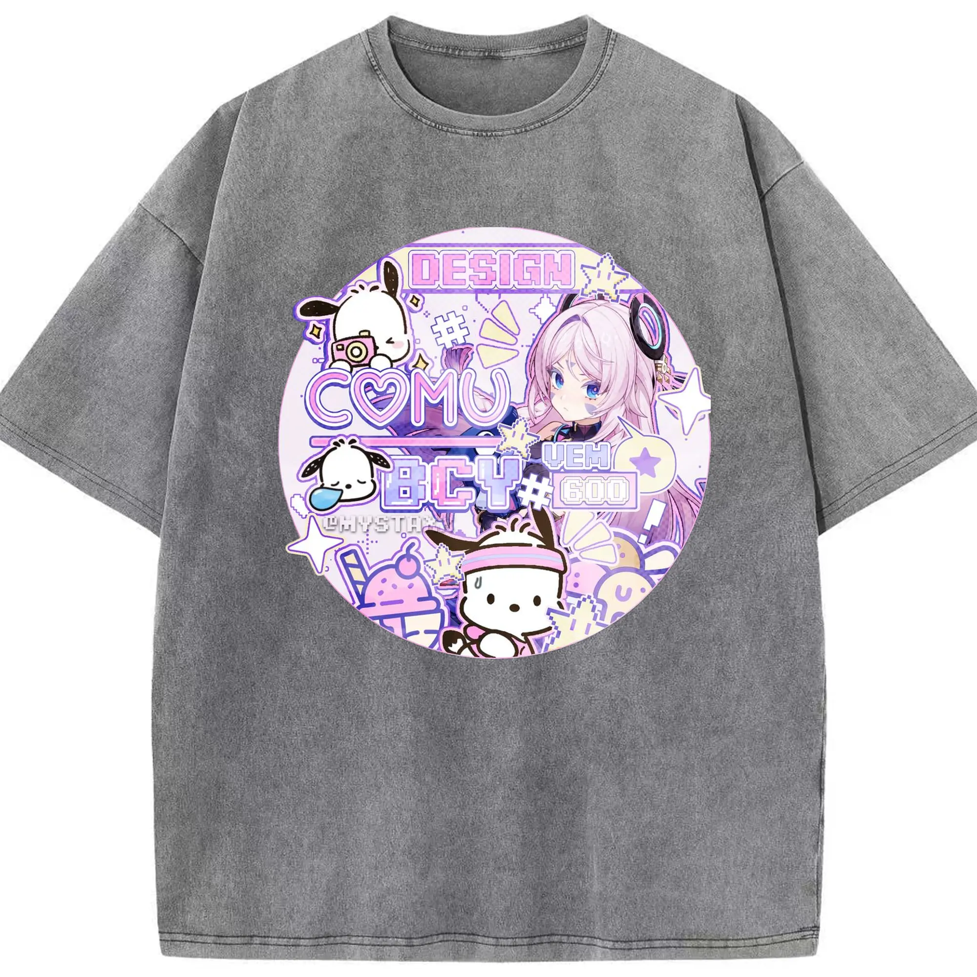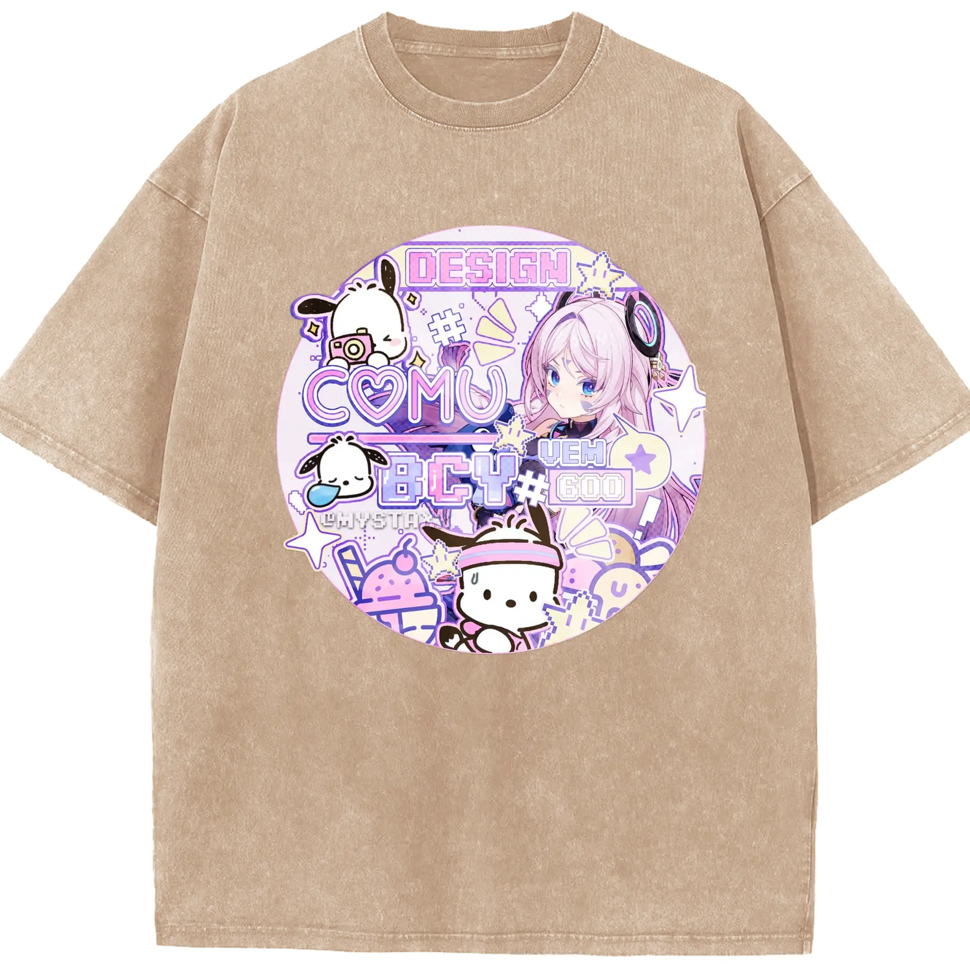 Genshin ナタ シトラリ - 綿100% ヴィンテージ風 半袖Tシャツ ・ フロントプリント ・ 柔らか肌触り ・ 通気性 快適 ・ スポーツ カジュアル 外出用