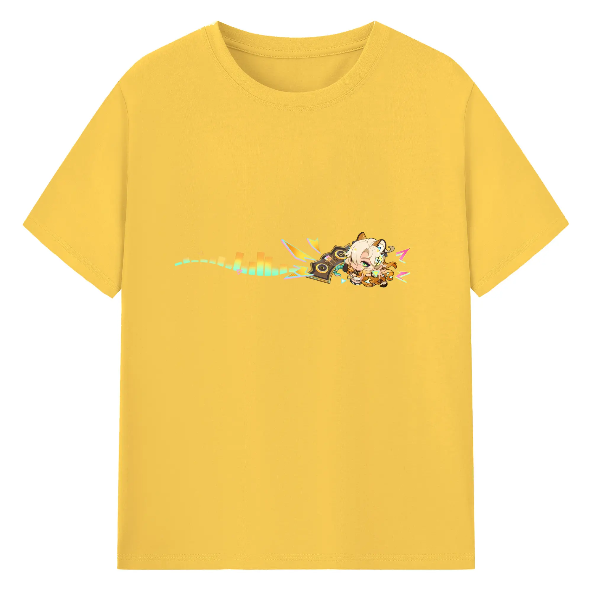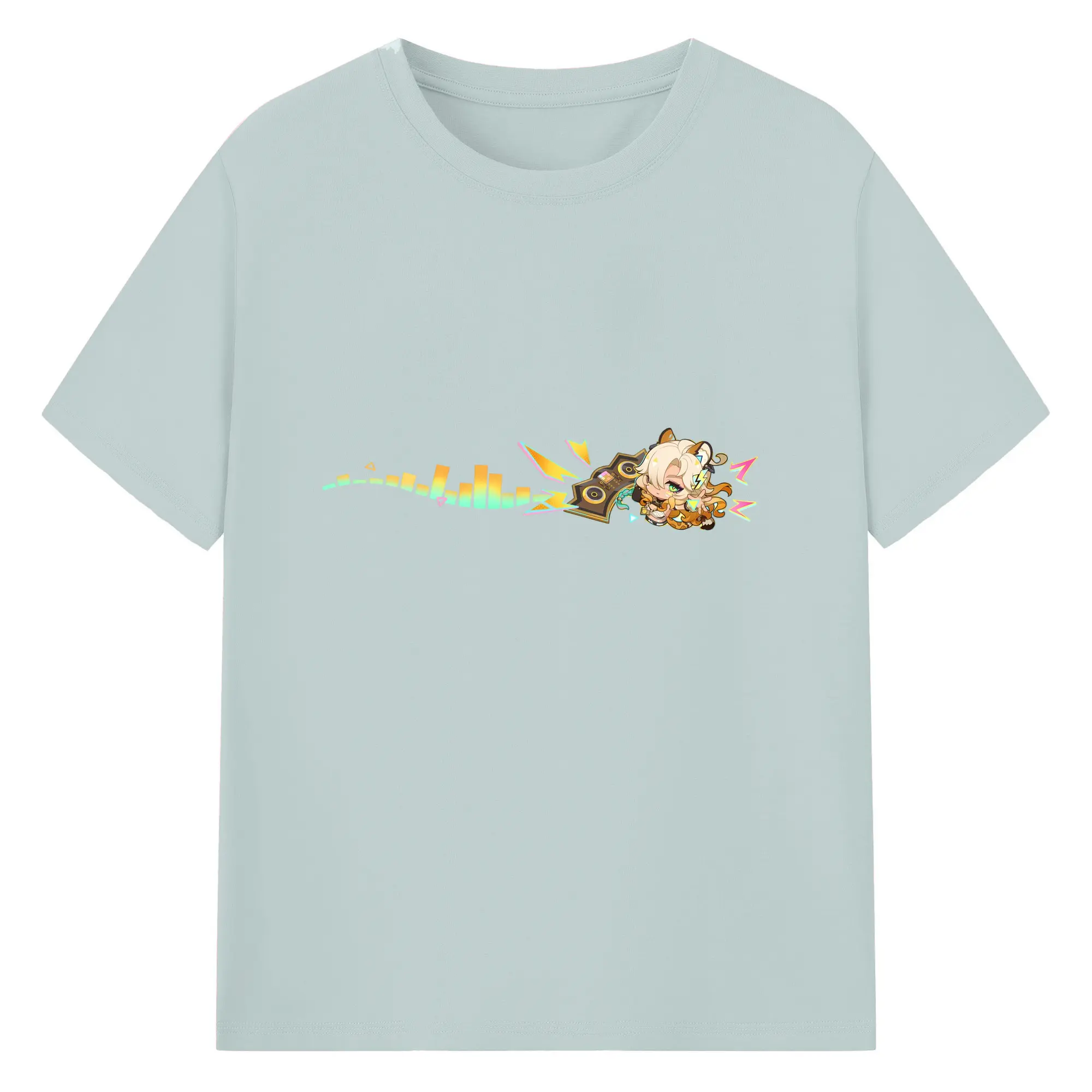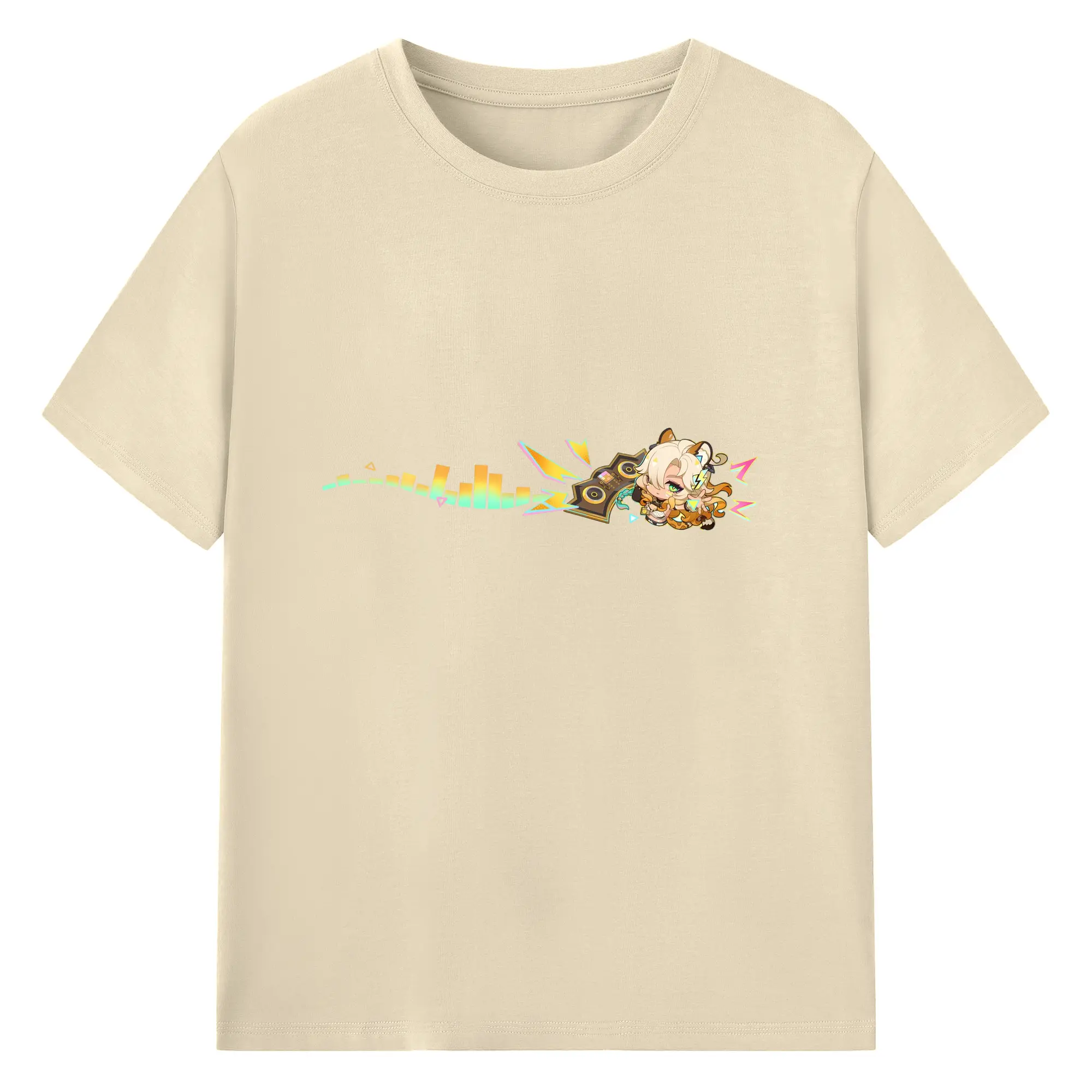 Genshin ナタ シロネン - 綿100% 半袖Tシャツ ・ フロントプリント ・ 快適 通気性 ・ 日常使い 散歩 スポーツ用