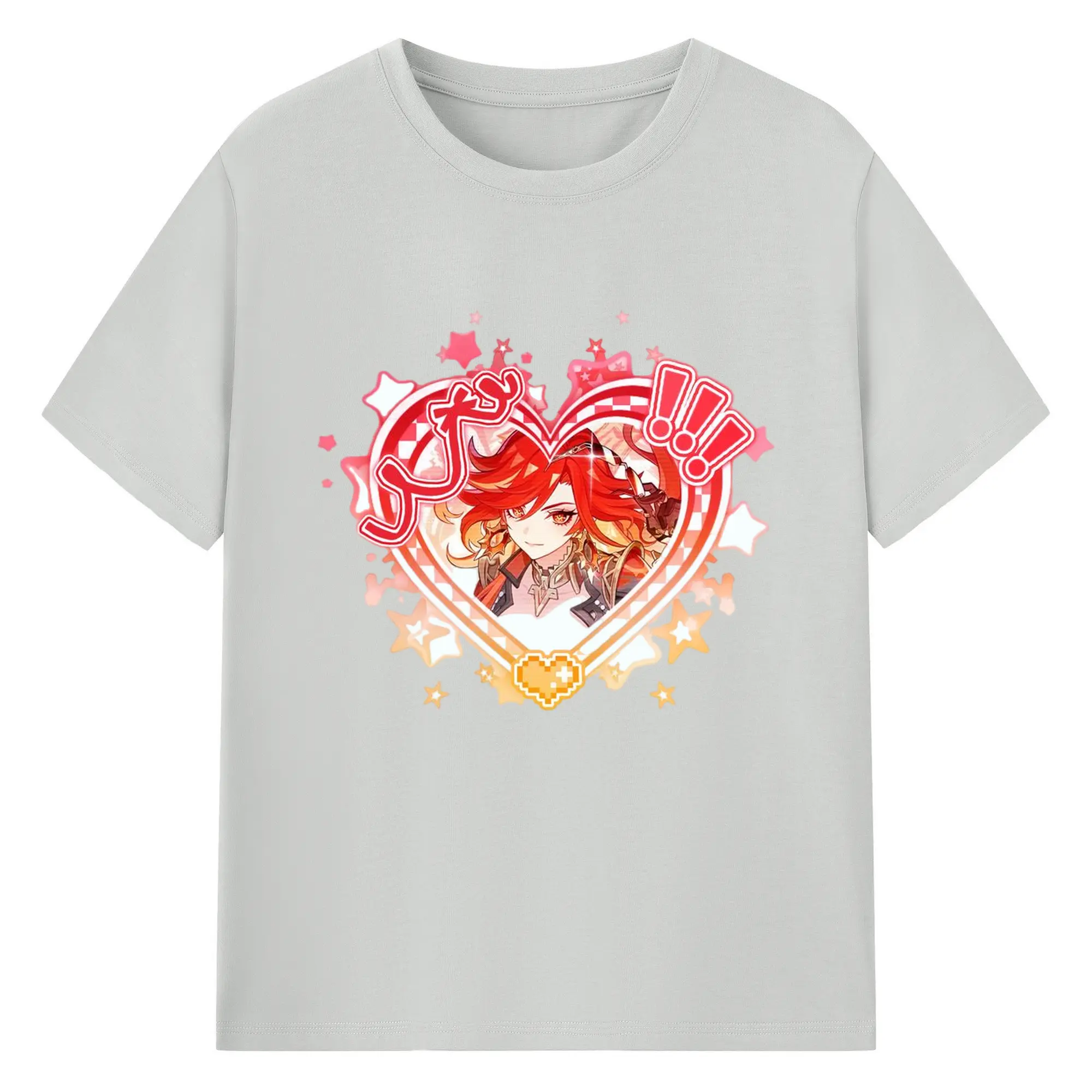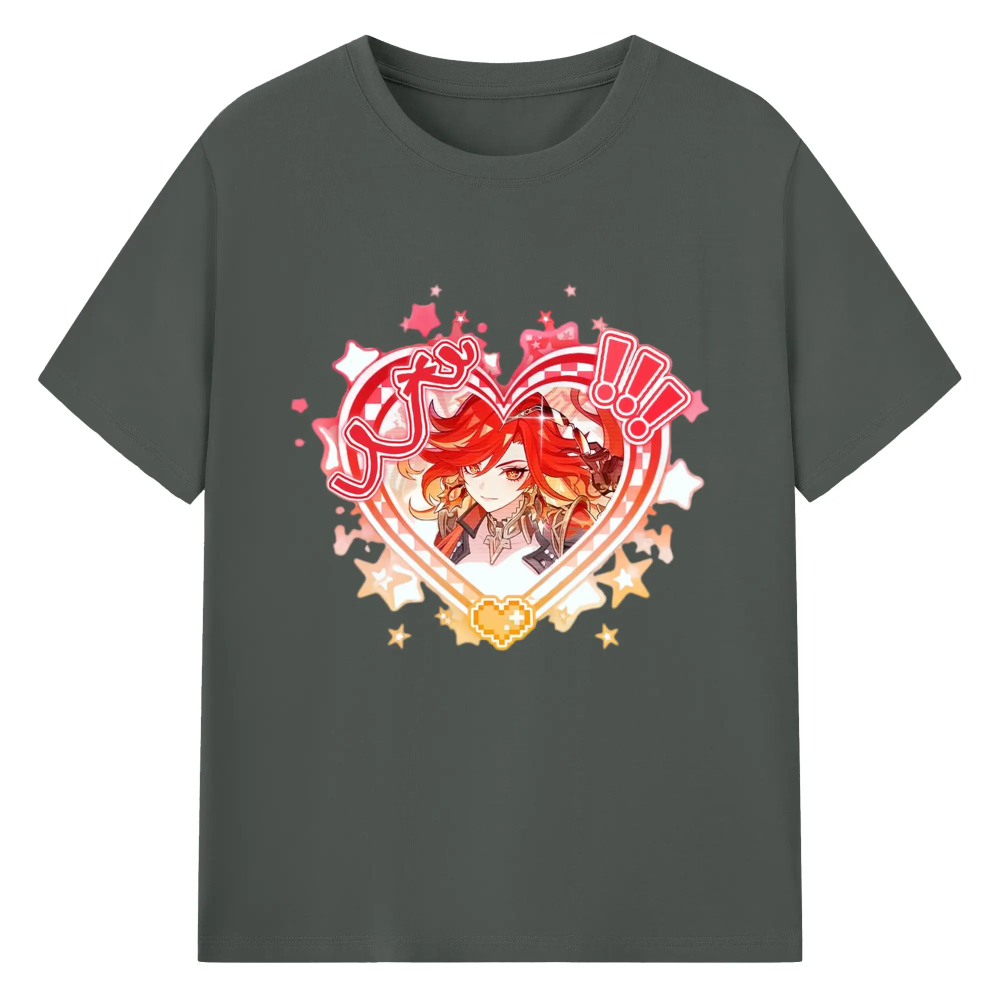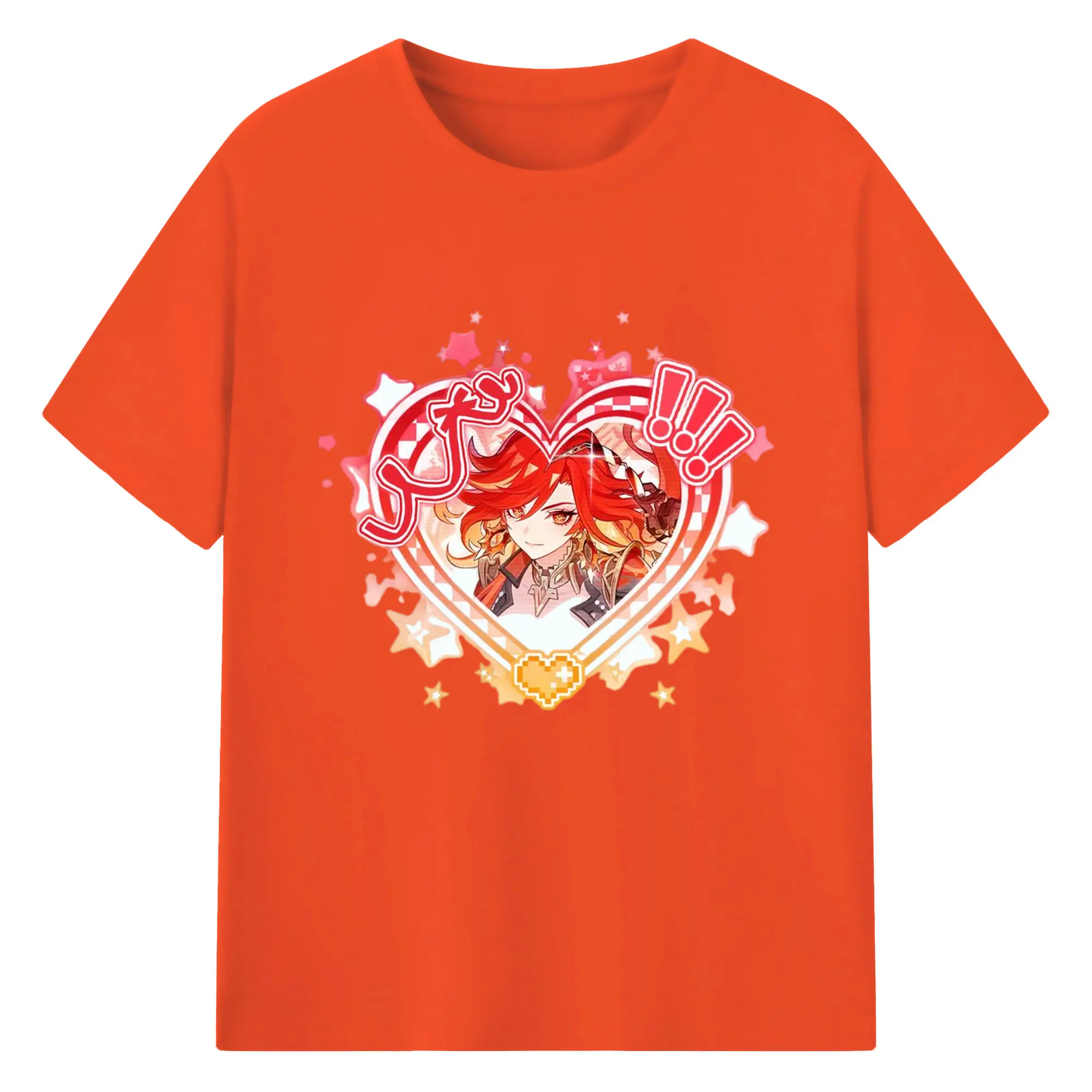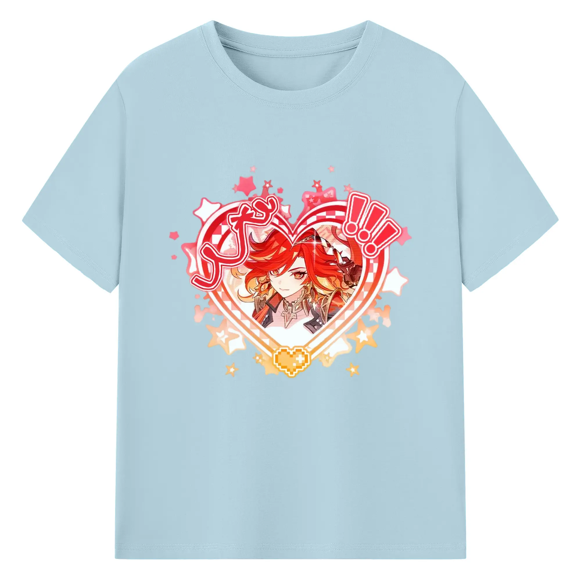 Genshin 紡がれた運命で運気アップ! - 綿100% 半袖Tシャツ ・ フロントプリント ・ 快適 通気性 ・ 日常使い 散歩 スポーツ用
