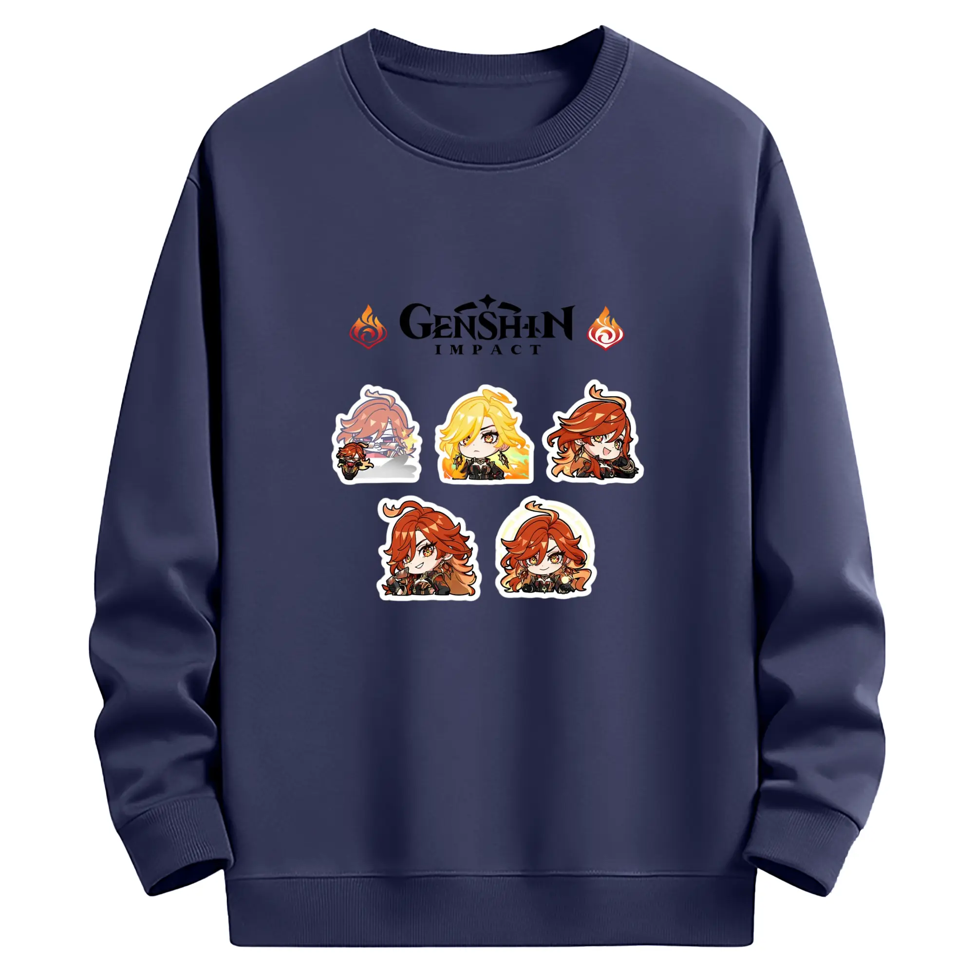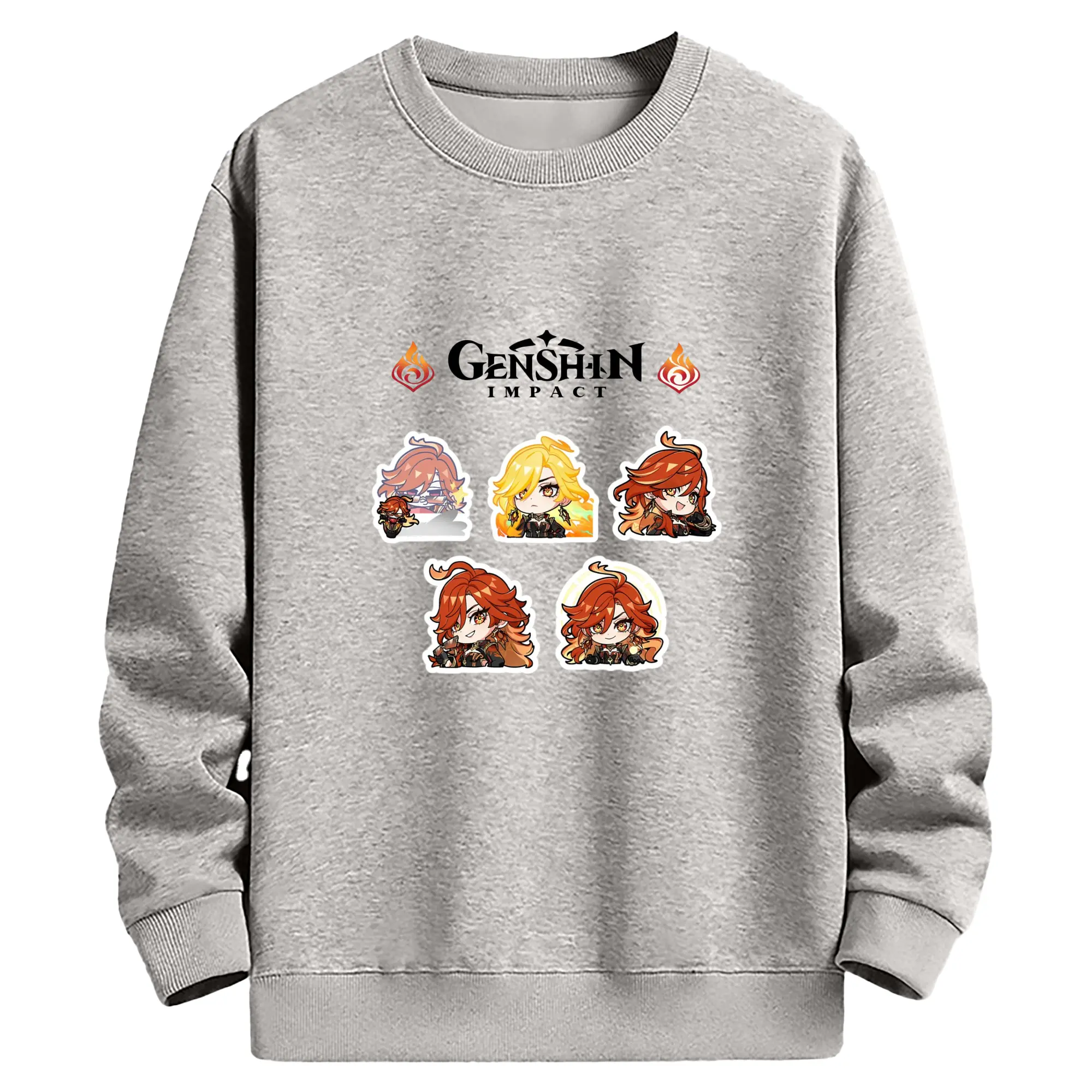 Genshin ナタ 炎神えんしん マーヴィカ - 高品質 クルーネック スウェット ・ コットン59% ポリエステル41% ・ ユニセックス 長袖 トレーナー ・ カジュアル デイリー スポーツ 散歩用