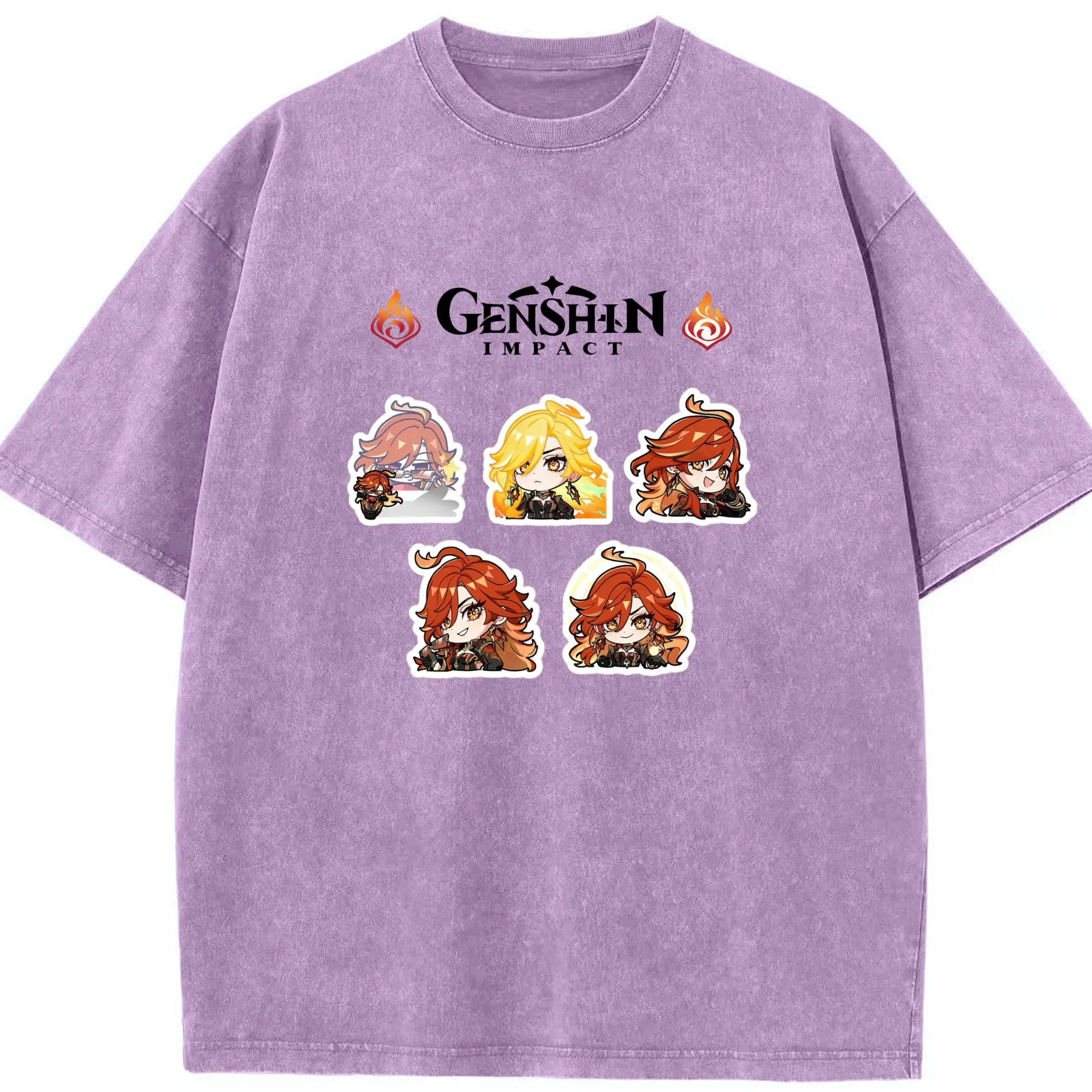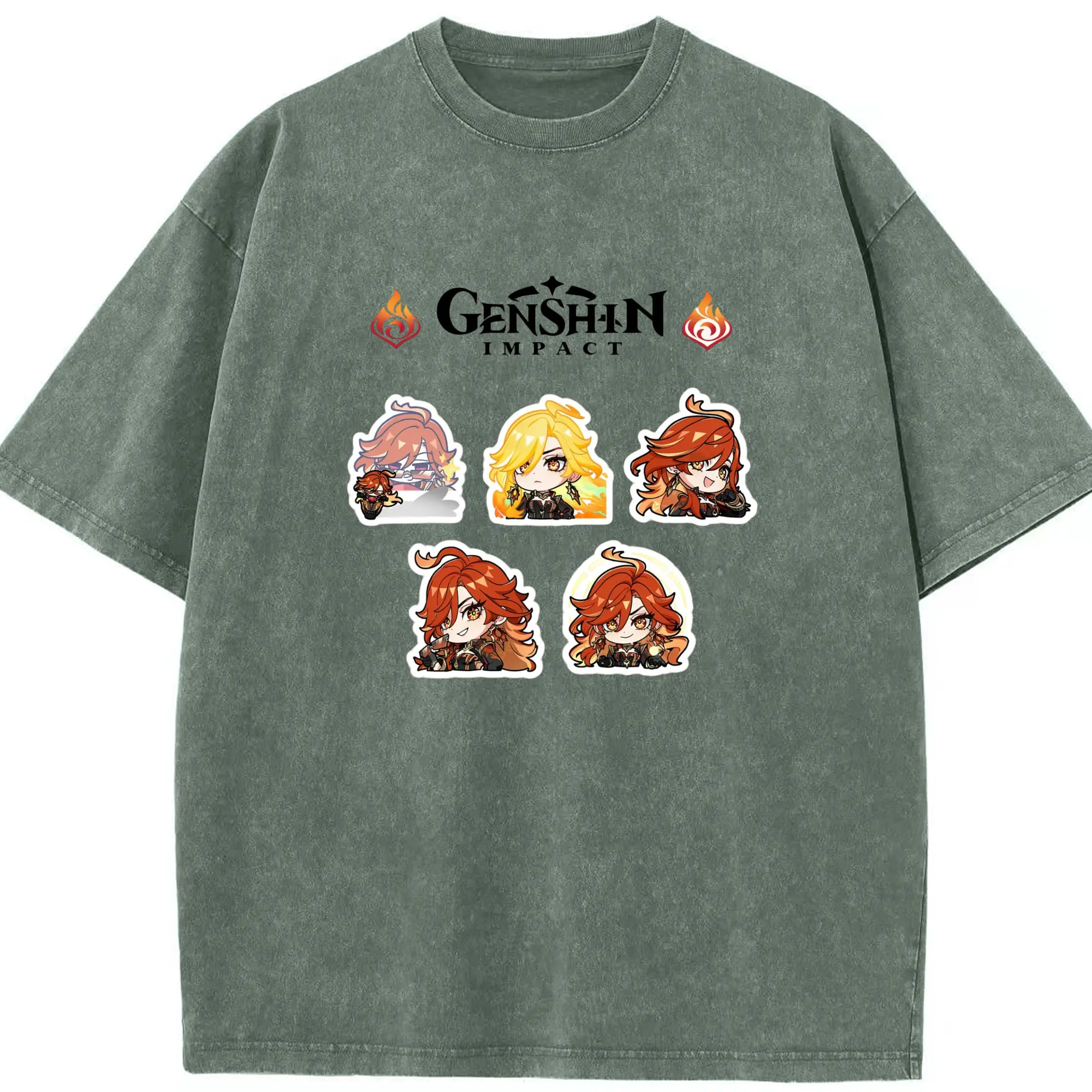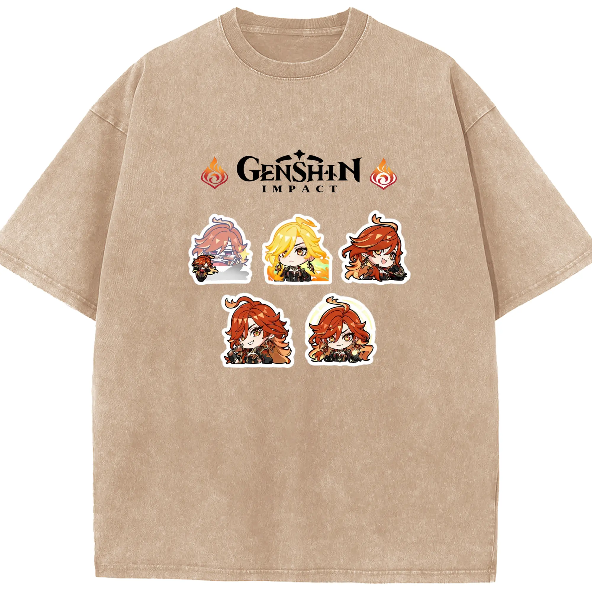 Genshin ナタ 炎神えんしん マーヴィカ - 綿100% ヴィンテージ風 半袖Tシャツ ・ フロントプリント ・ 柔らか肌触り ・ 通気性 快適 ・ スポーツ カジュアル 外出用