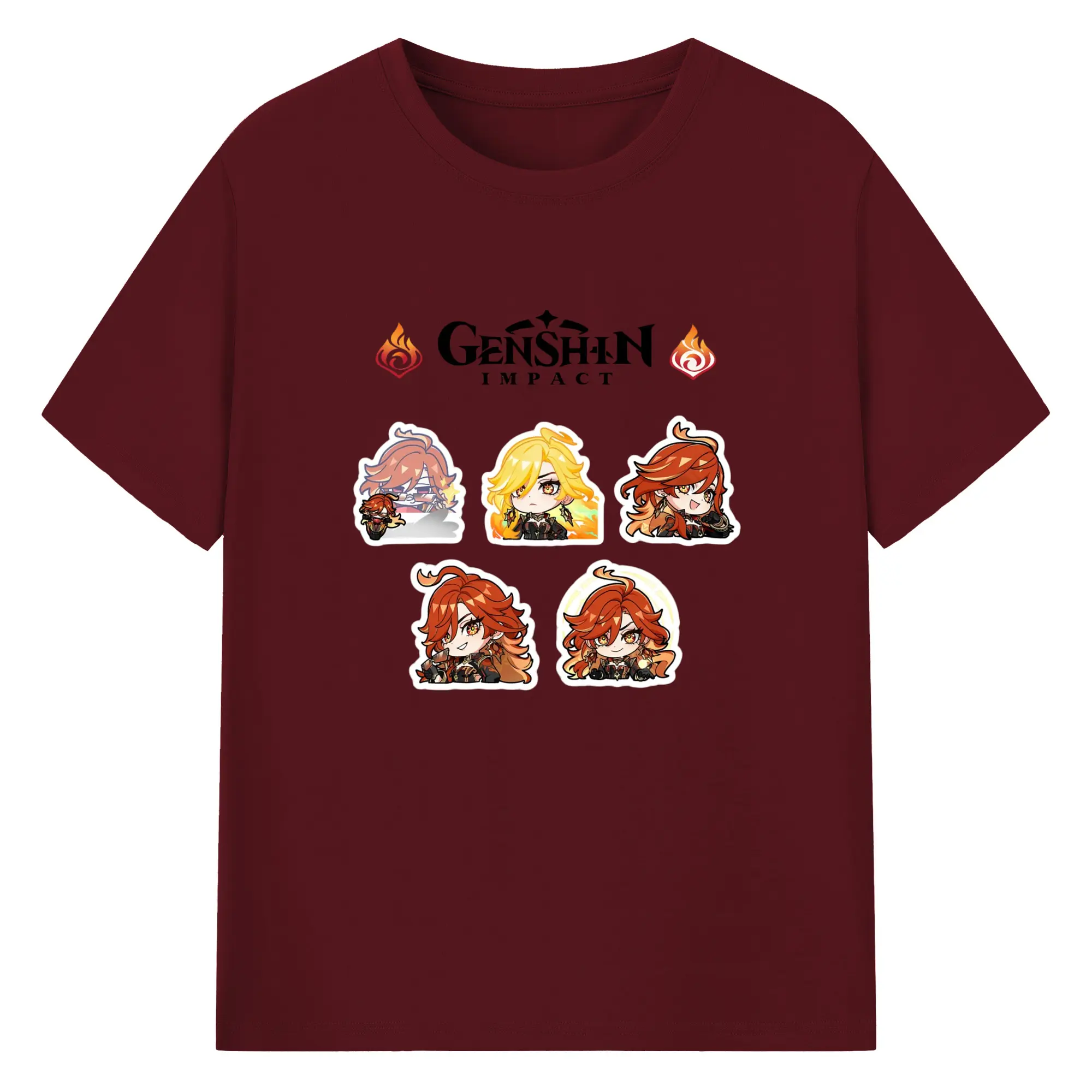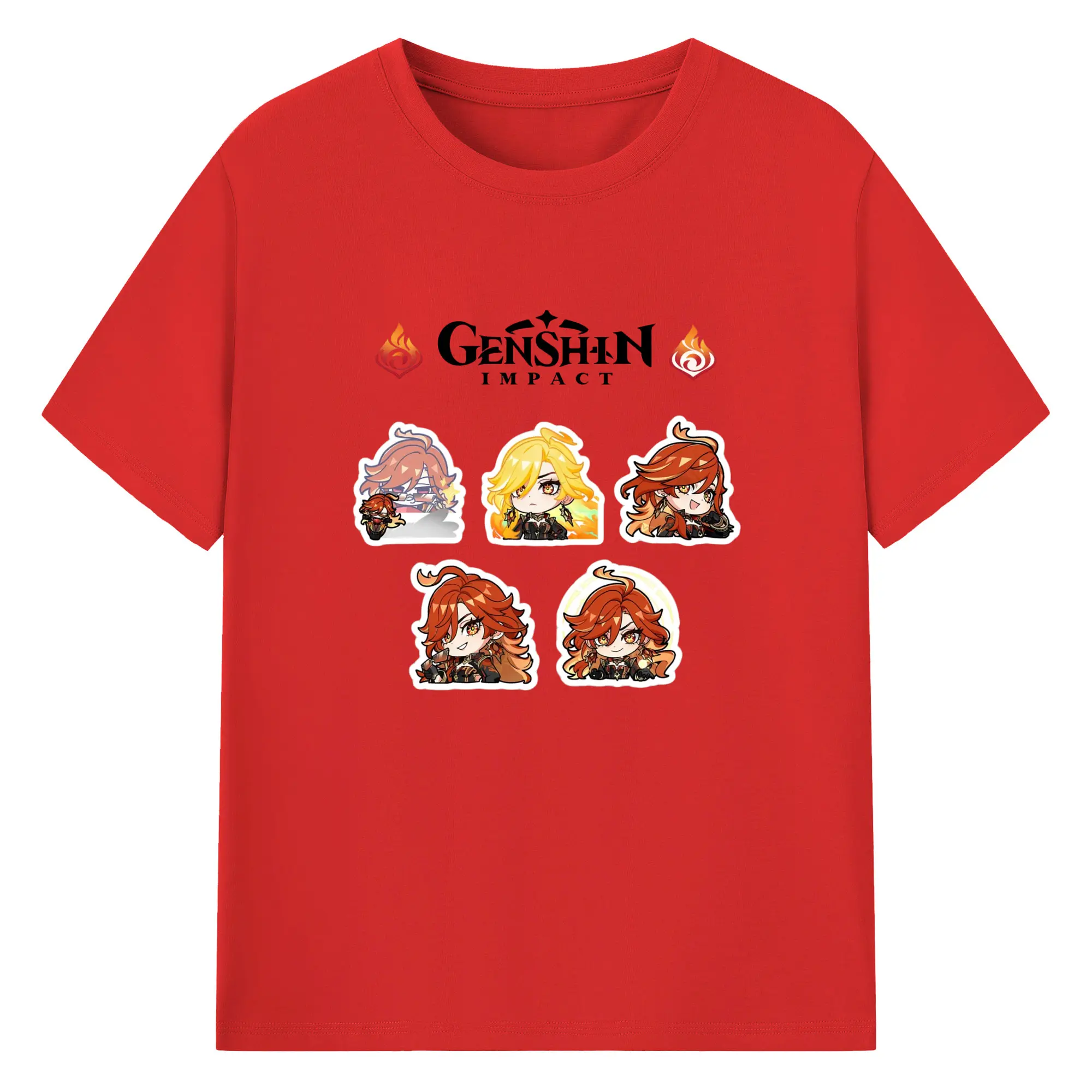 Genshin ナタ 炎神えんしん マーヴィカ - 綿100% 半袖Tシャツ ・ フロントプリント ・ 快適 通気性 ・ 日常使い 散歩 スポーツ用