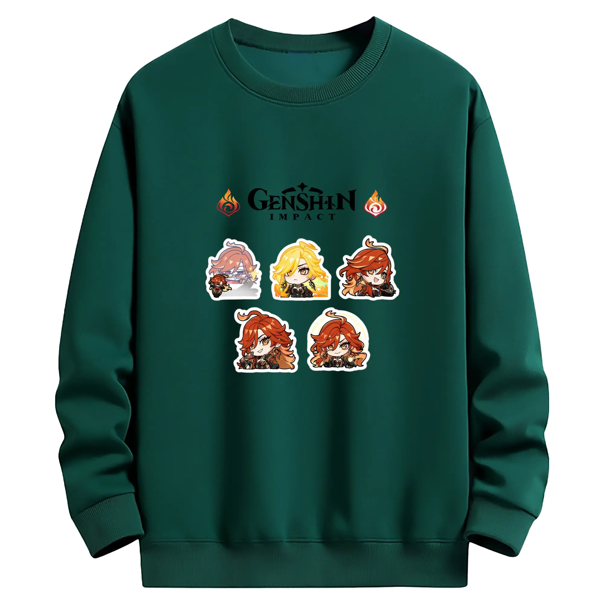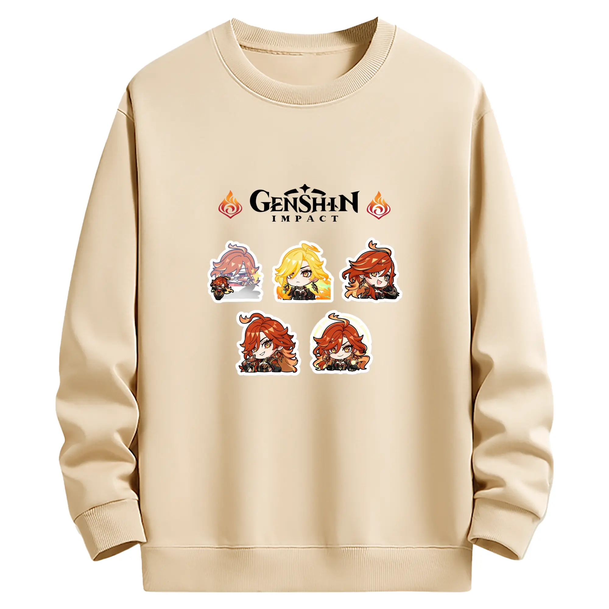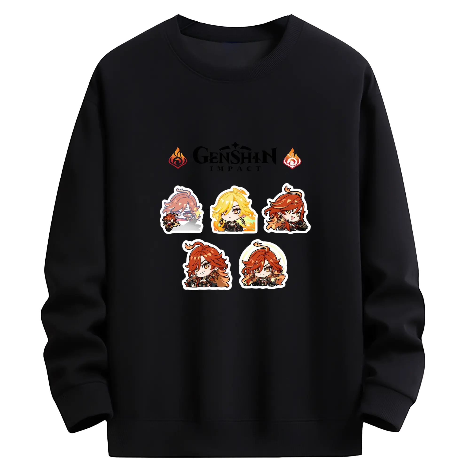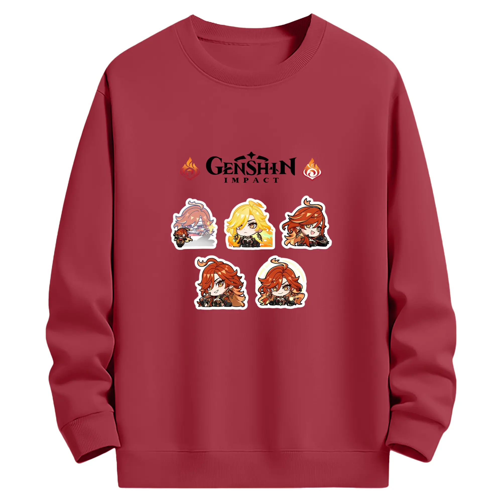Genshin ナタ 炎神えんしん マーヴィカ - 高品質 クルーネック スウェット ・ コットン59% ポリエステル41% ・ ユニセックス 長袖 トレーナー ・ カジュアル デイリー スポーツ 散歩用