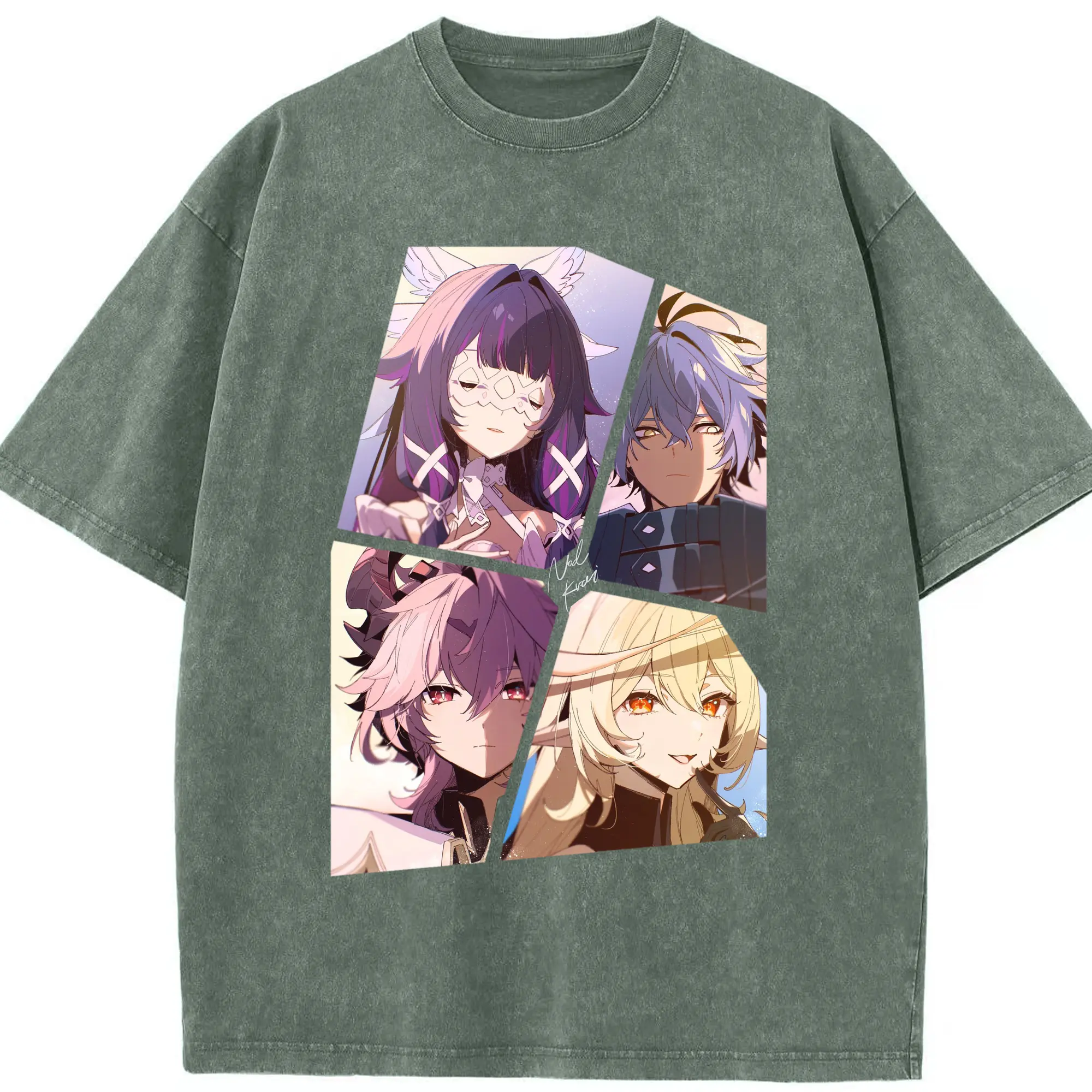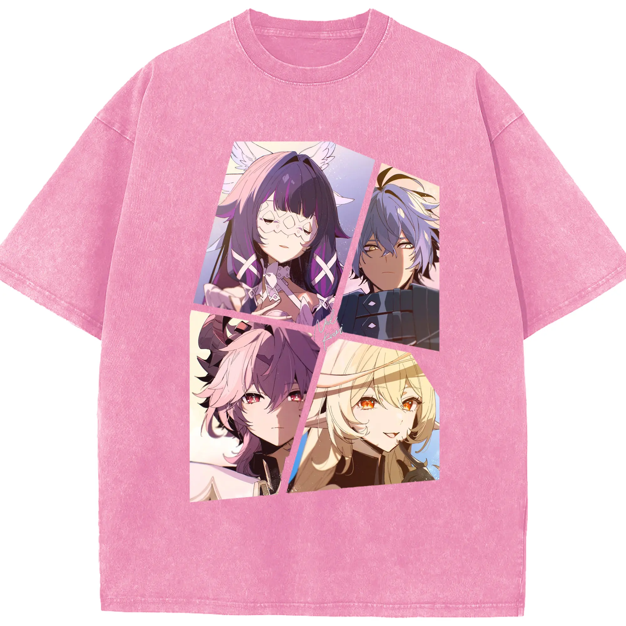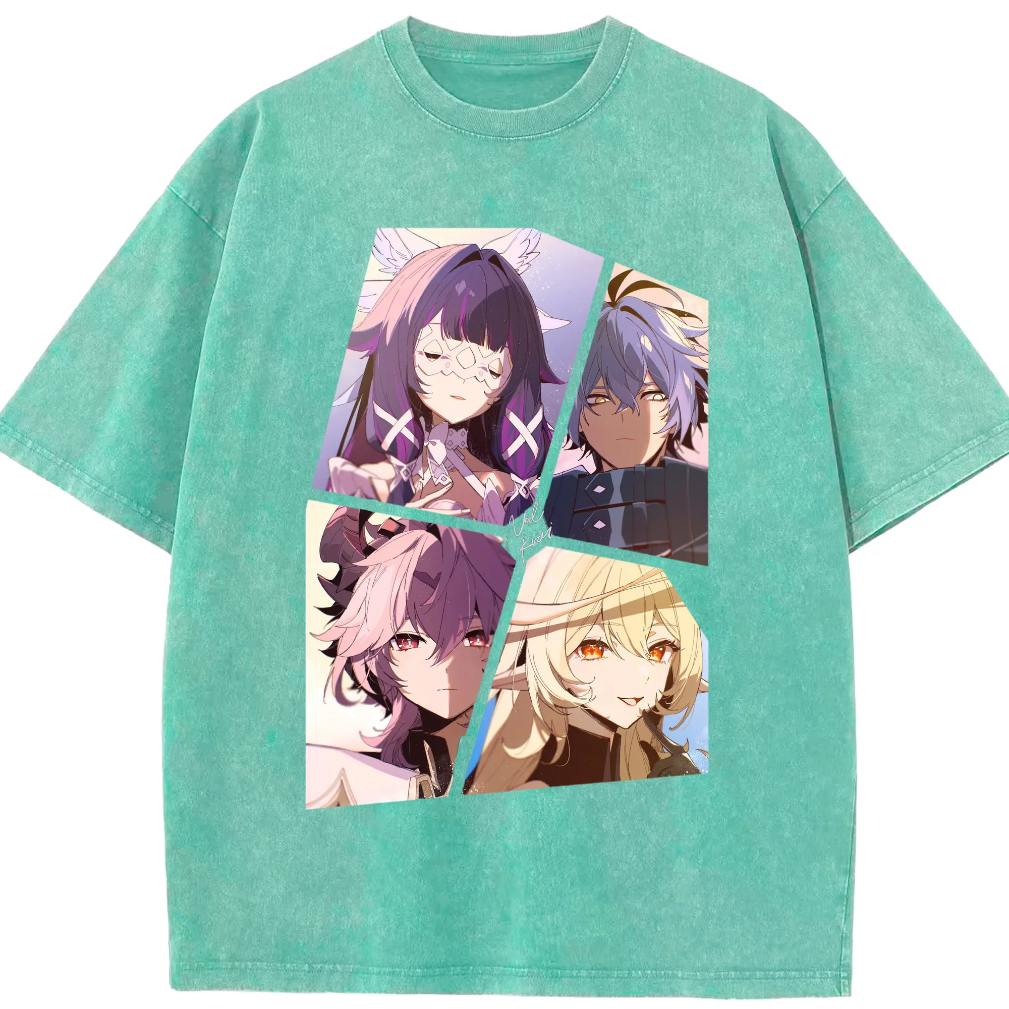 Genshin ナド・クライ人気キャラクター - 綿100% ヴィンテージ風 半袖Tシャツ ・ フロントプリント ・ 柔らか肌触り ・ 通気性 快適 ・ スポーツ カジュアル 外出用