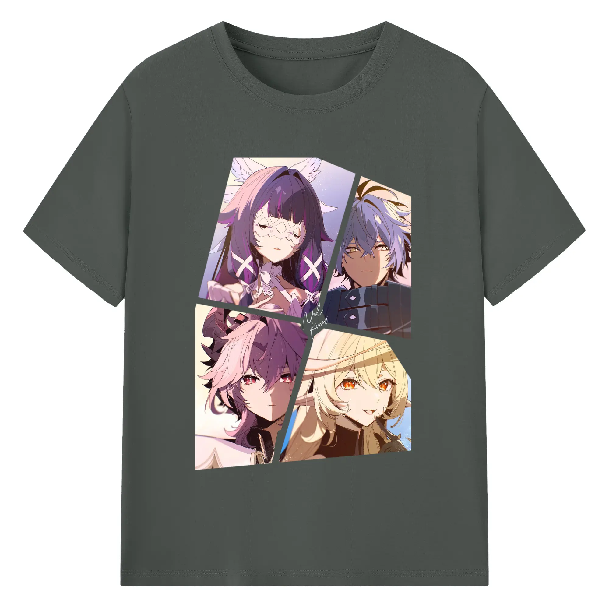 Genshin ナド・クライ人気キャラクター - 綿100% ヴィンテージ風 半袖Tシャツ ・ フロントプリント ・ 柔らか肌触り ・ 通気性 快適 ・ スポーツ カジュアル 外出用