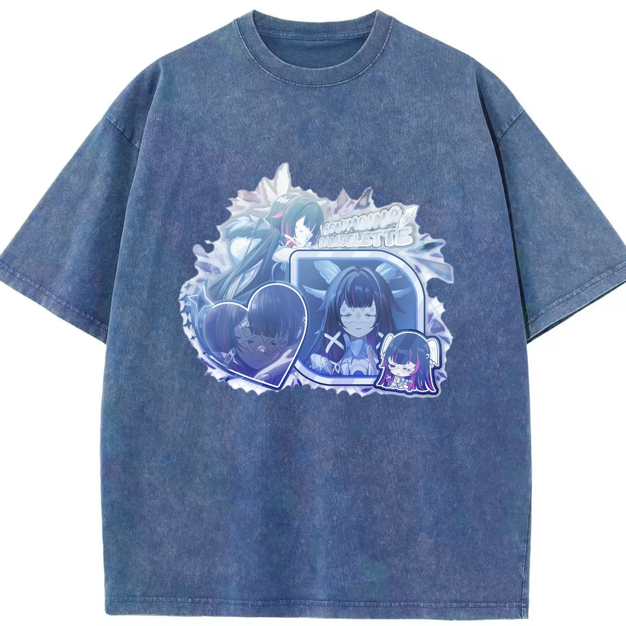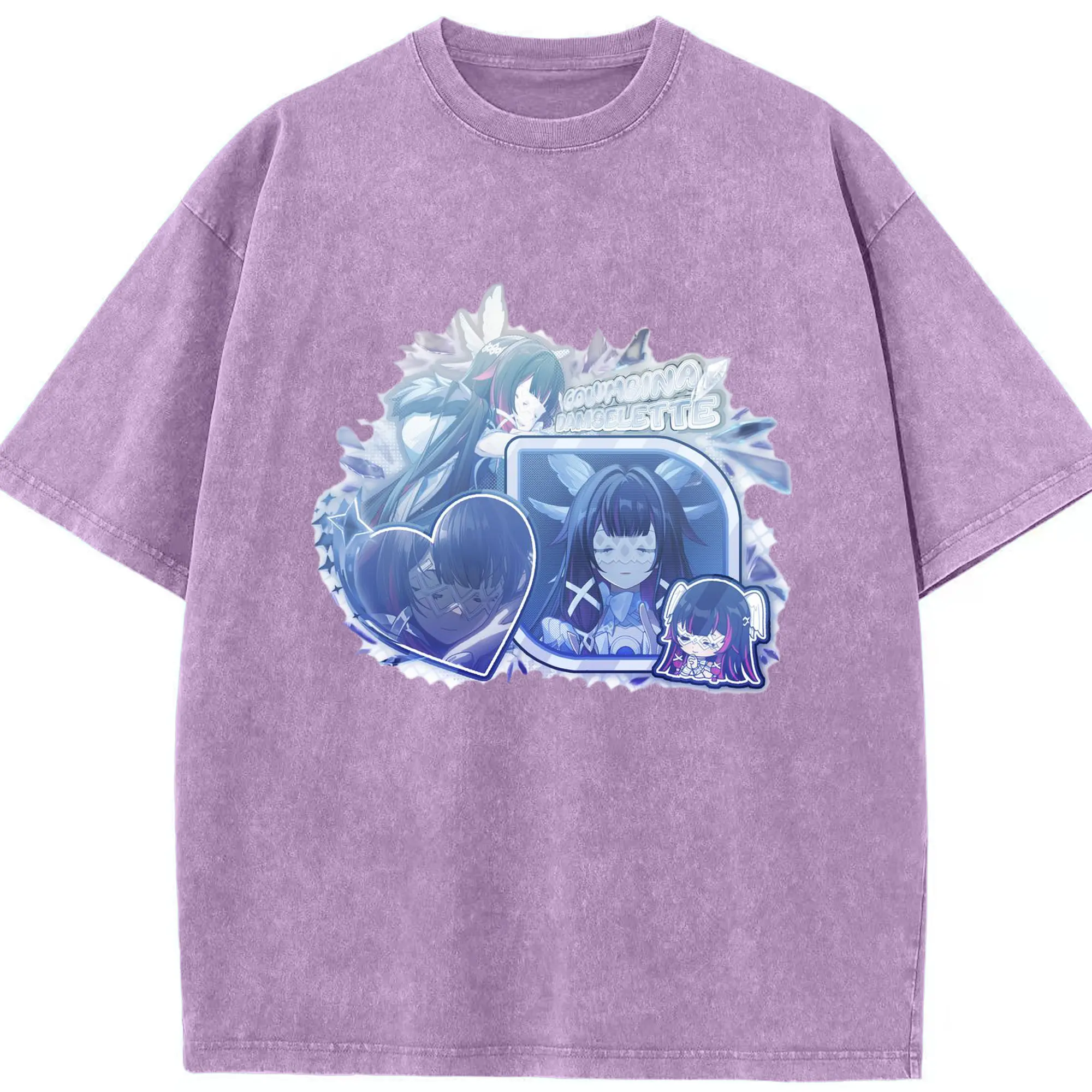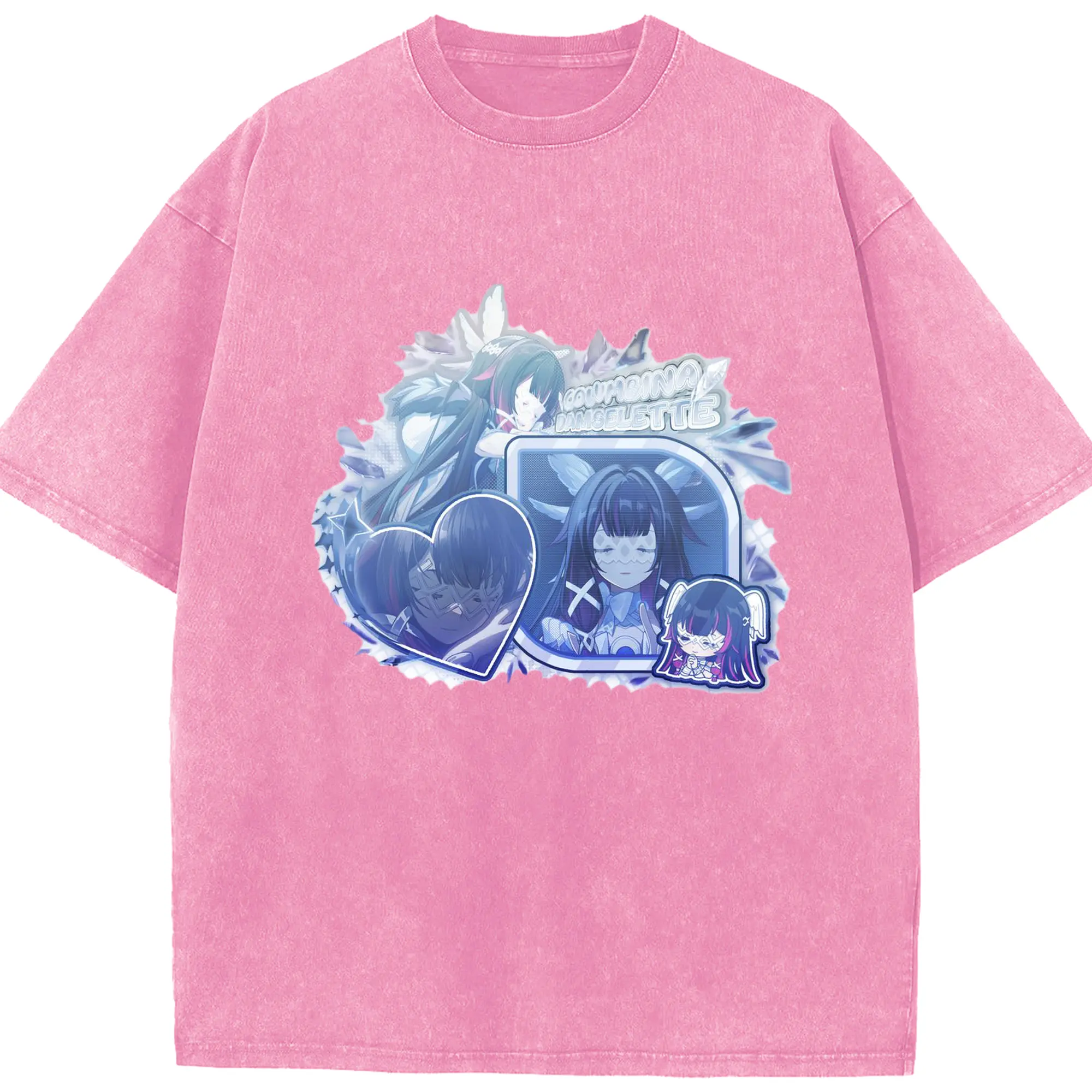 Genshin フォンテーヌ 水神すいじんフォカロルス フリーナ - 綿100% ヴィンテージ風 半袖Tシャツ ・ フロントプリント ・ 柔らか肌触り ・ 通気性 快適 ・ スポーツ カジュアル 外出用
