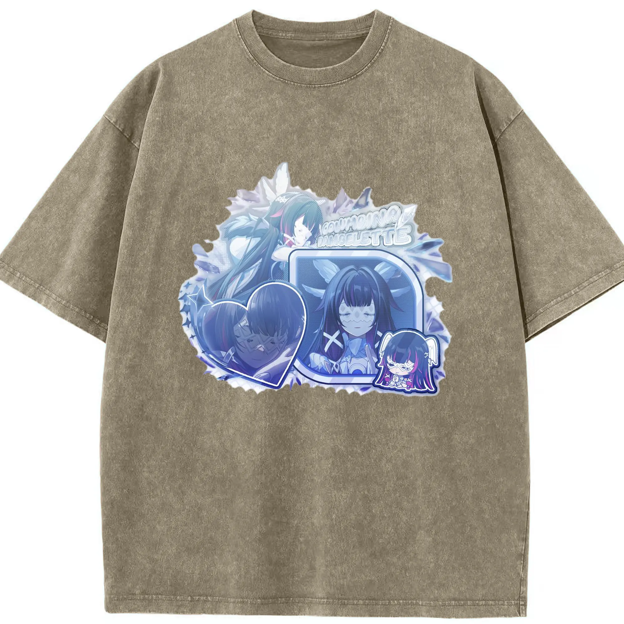Genshin ナド・クライ月神 げっしん コロンビーナ - 綿100% ヴィンテージ風 半袖Tシャツ ・ フロントプリント ・ 柔らか肌触り ・ 通気性 快適 ・ スポーツ カジュアル 外出用