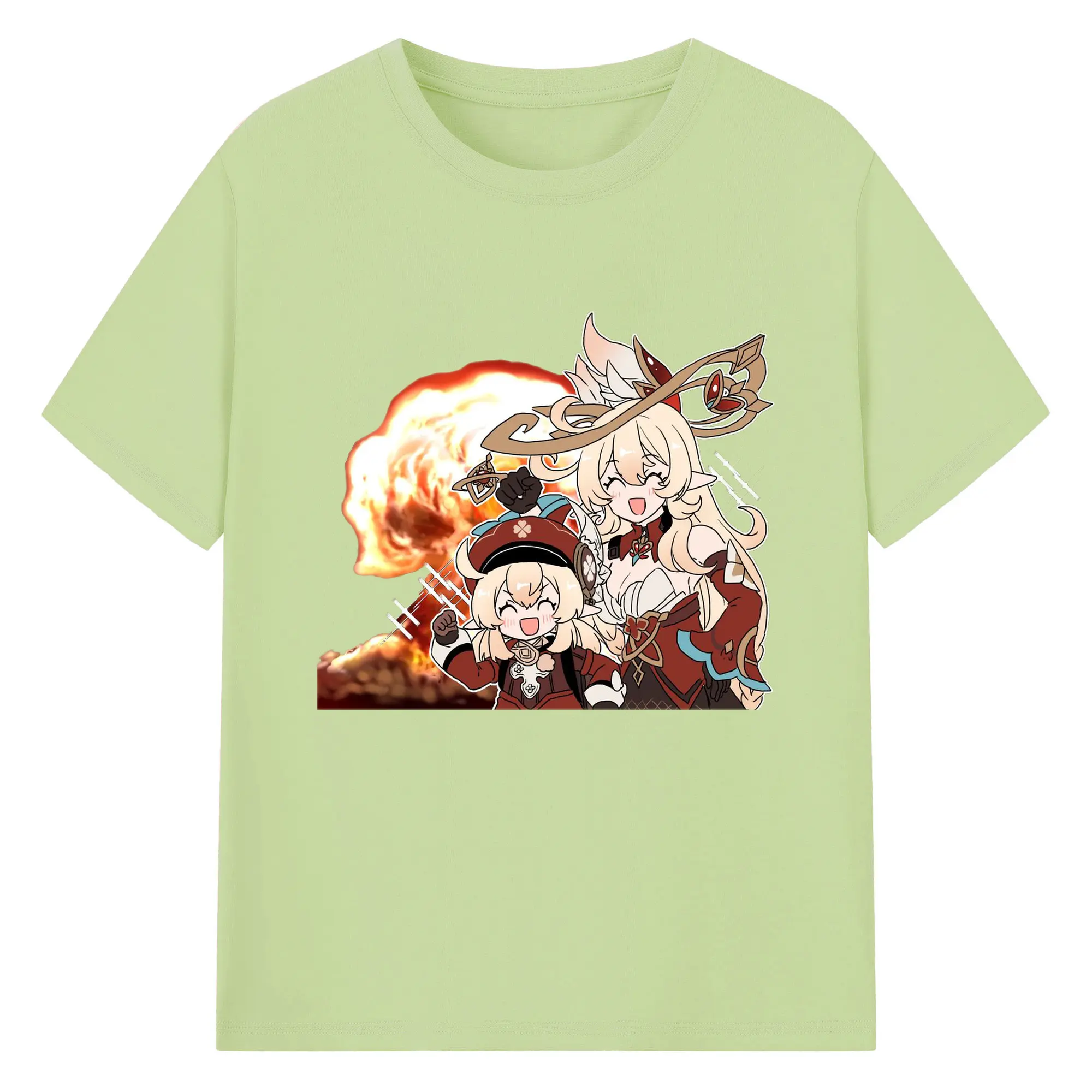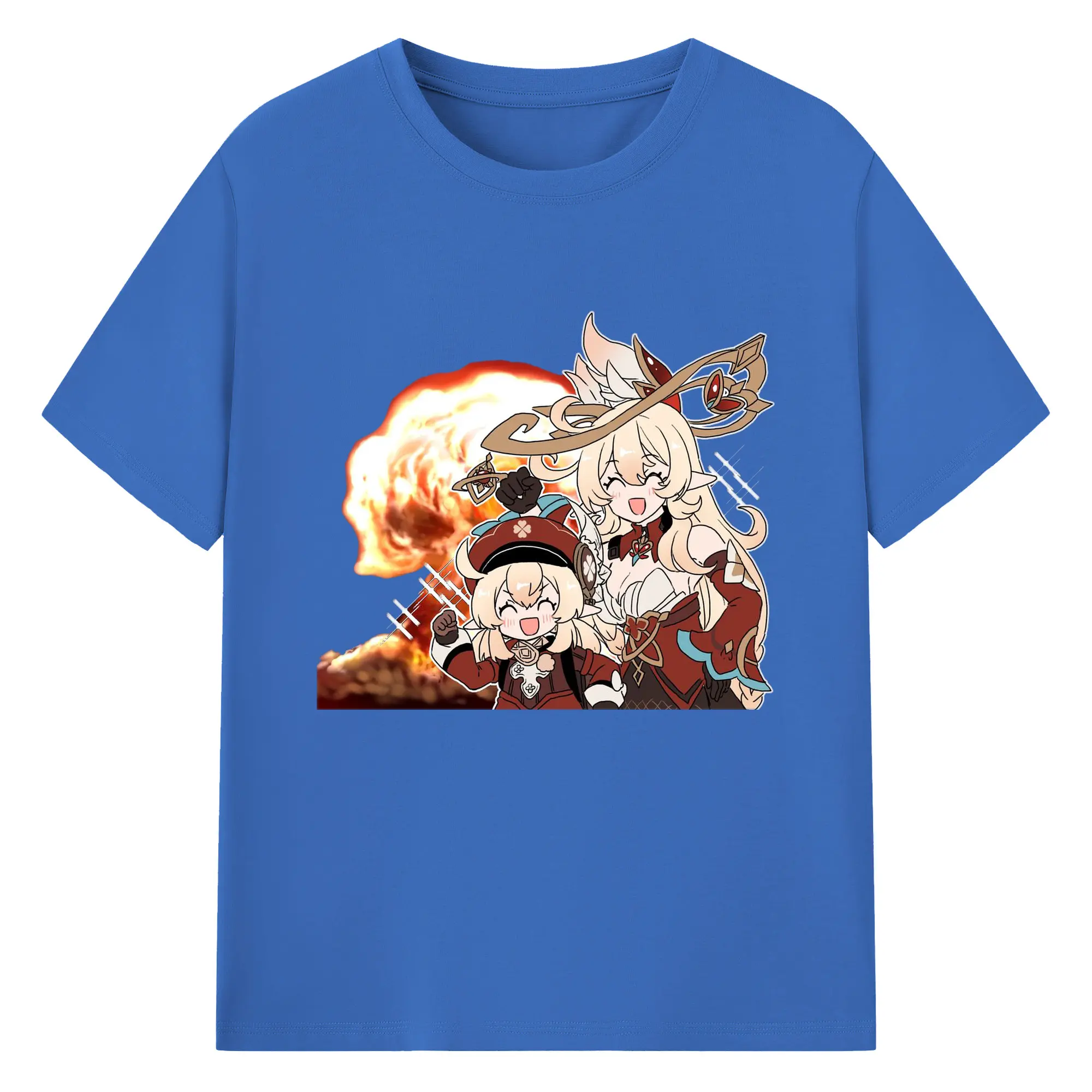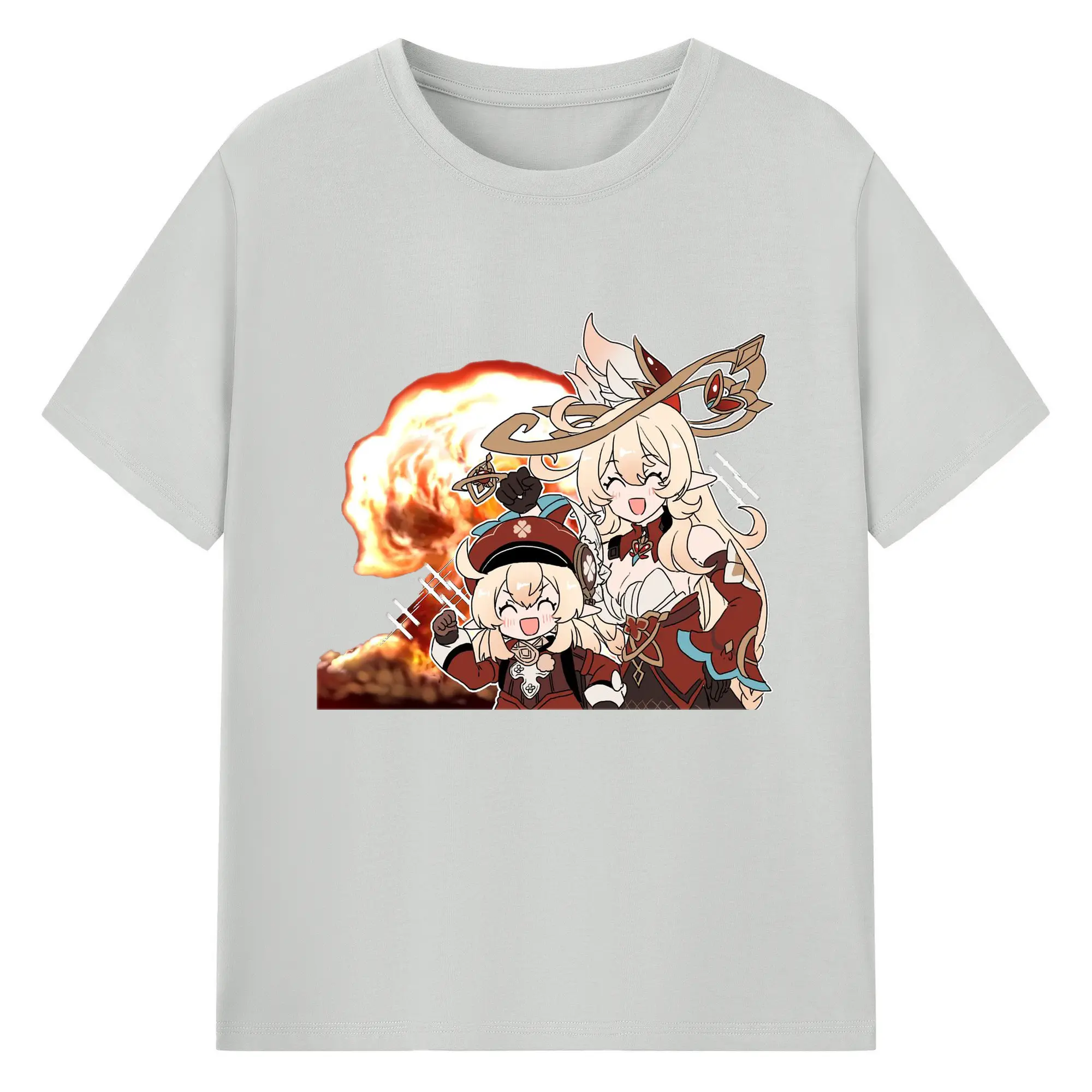 Genshin ナド・クライ クレーちゃん - 綿100% 半袖Tシャツ ・ フロントプリント ・ 快適 通気性 ・ 日常使い 散歩 スポーツ用