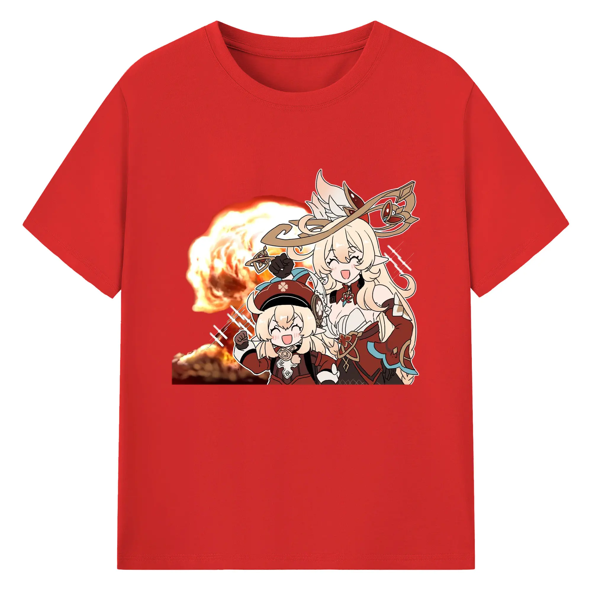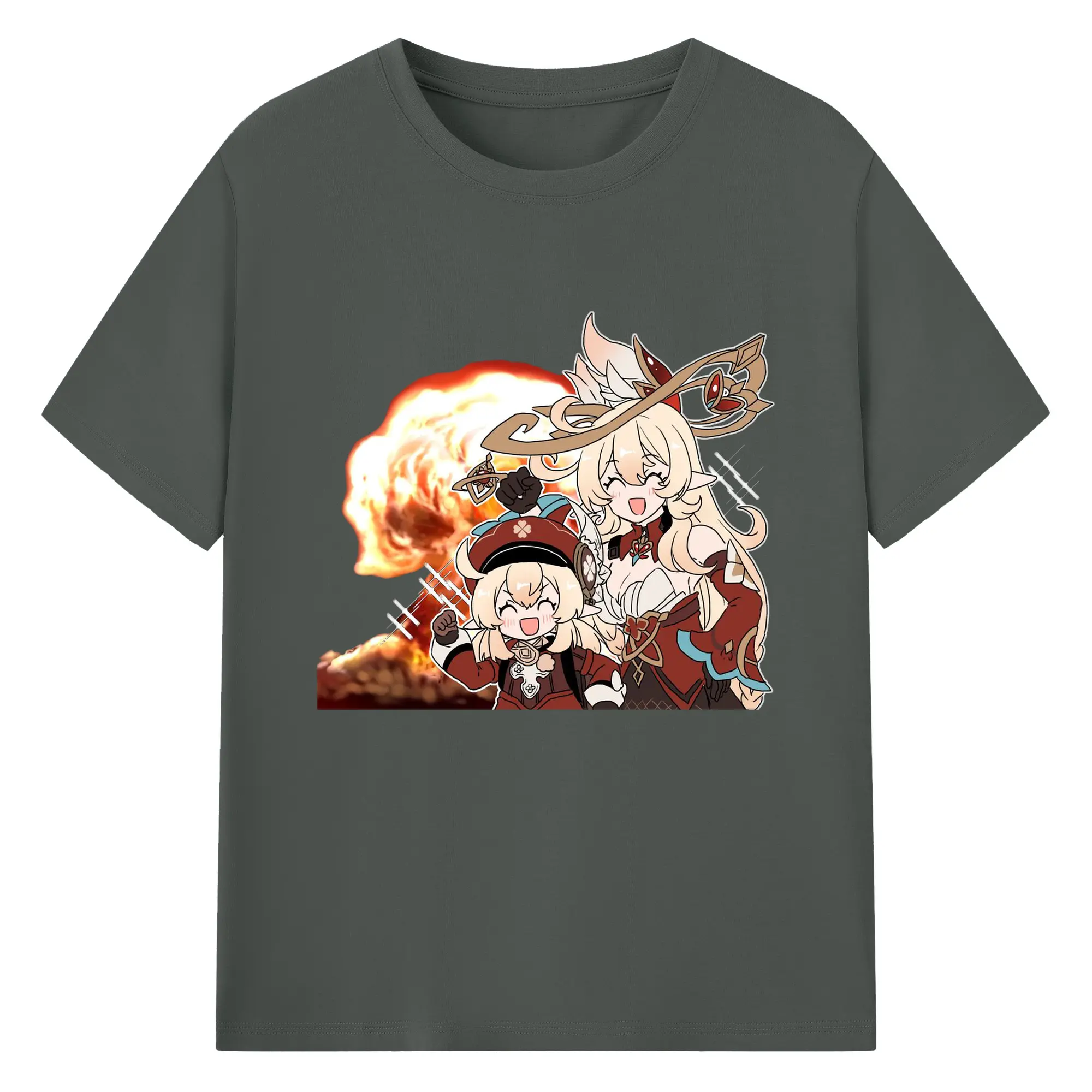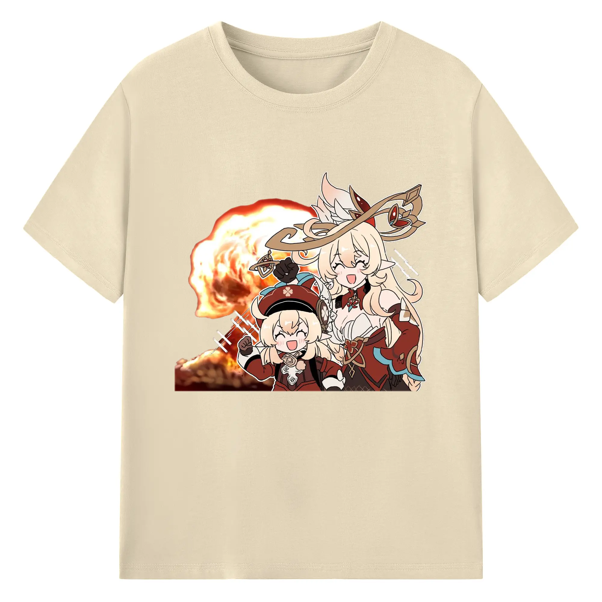 Genshin ナド・クライ クレーちゃん - 綿100% 半袖Tシャツ ・ フロントプリント ・ 快適 通気性 ・ 日常使い 散歩 スポーツ用